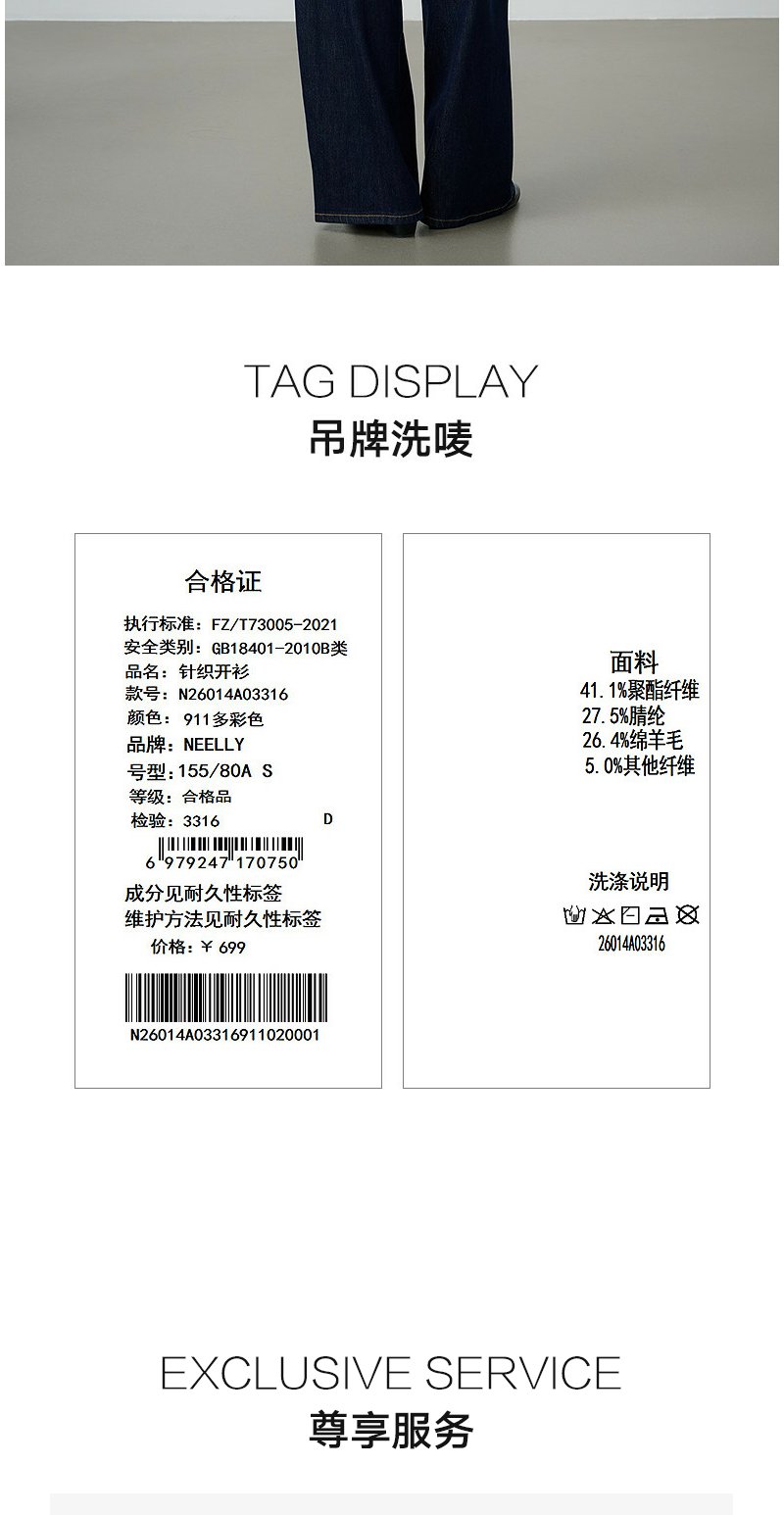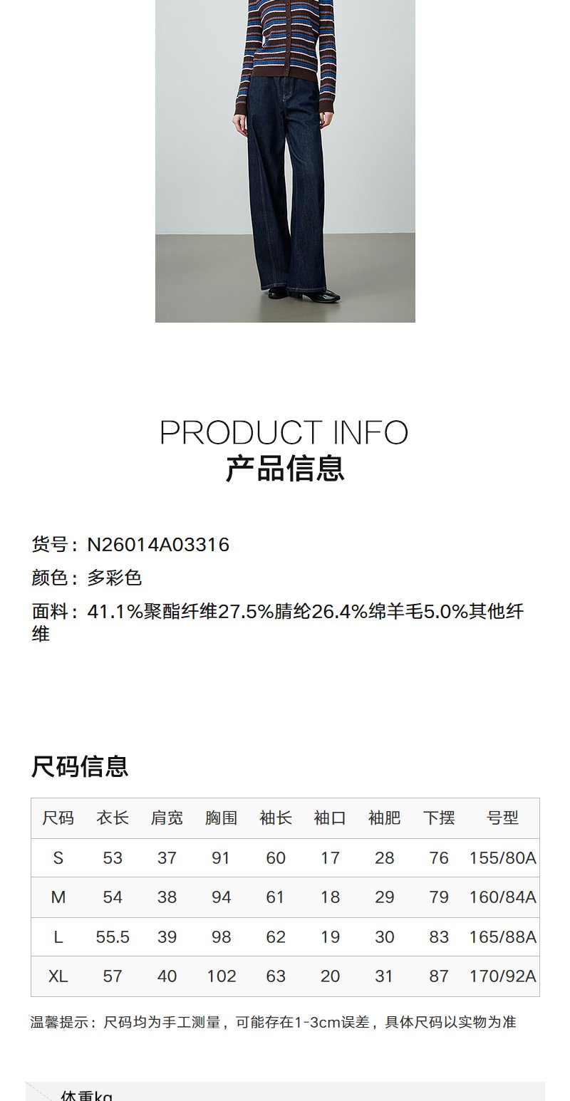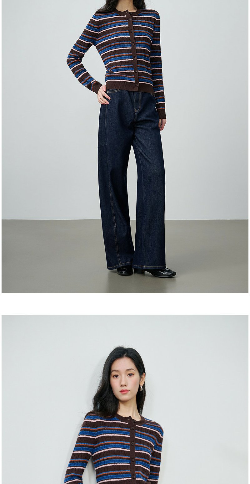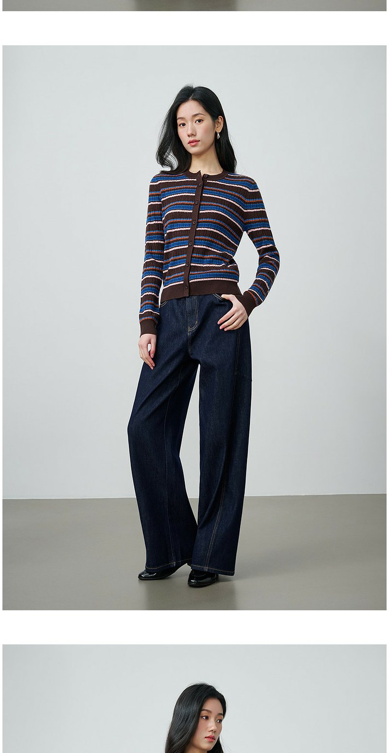 NEELLY纳俪商场同款春季新款复古撞色坑条针织开衫女圆领修身上衣N26014A03316