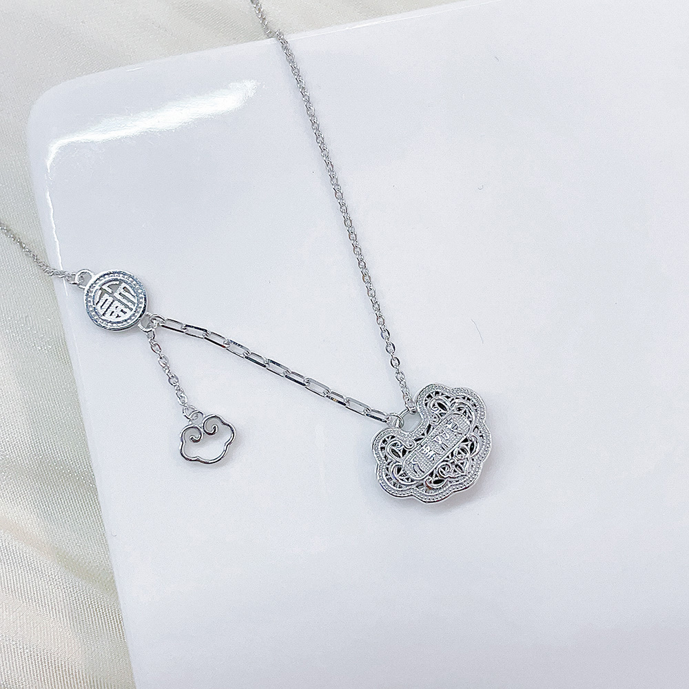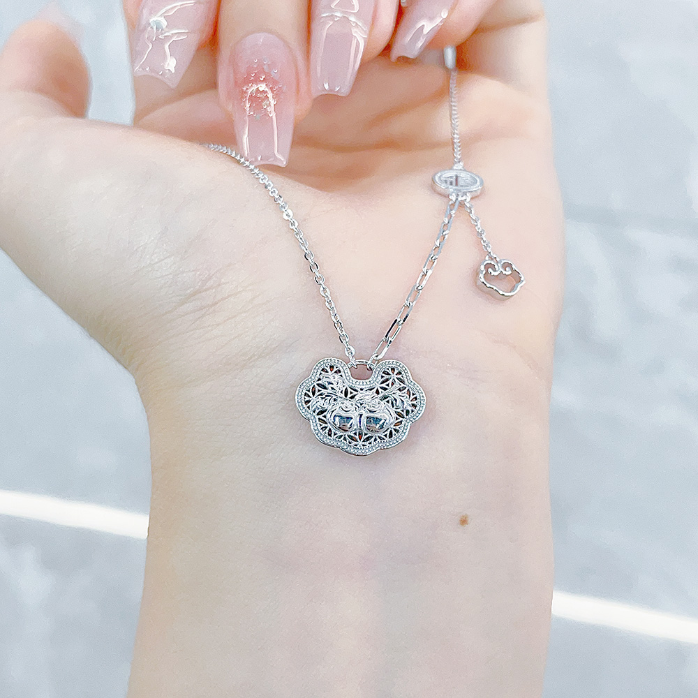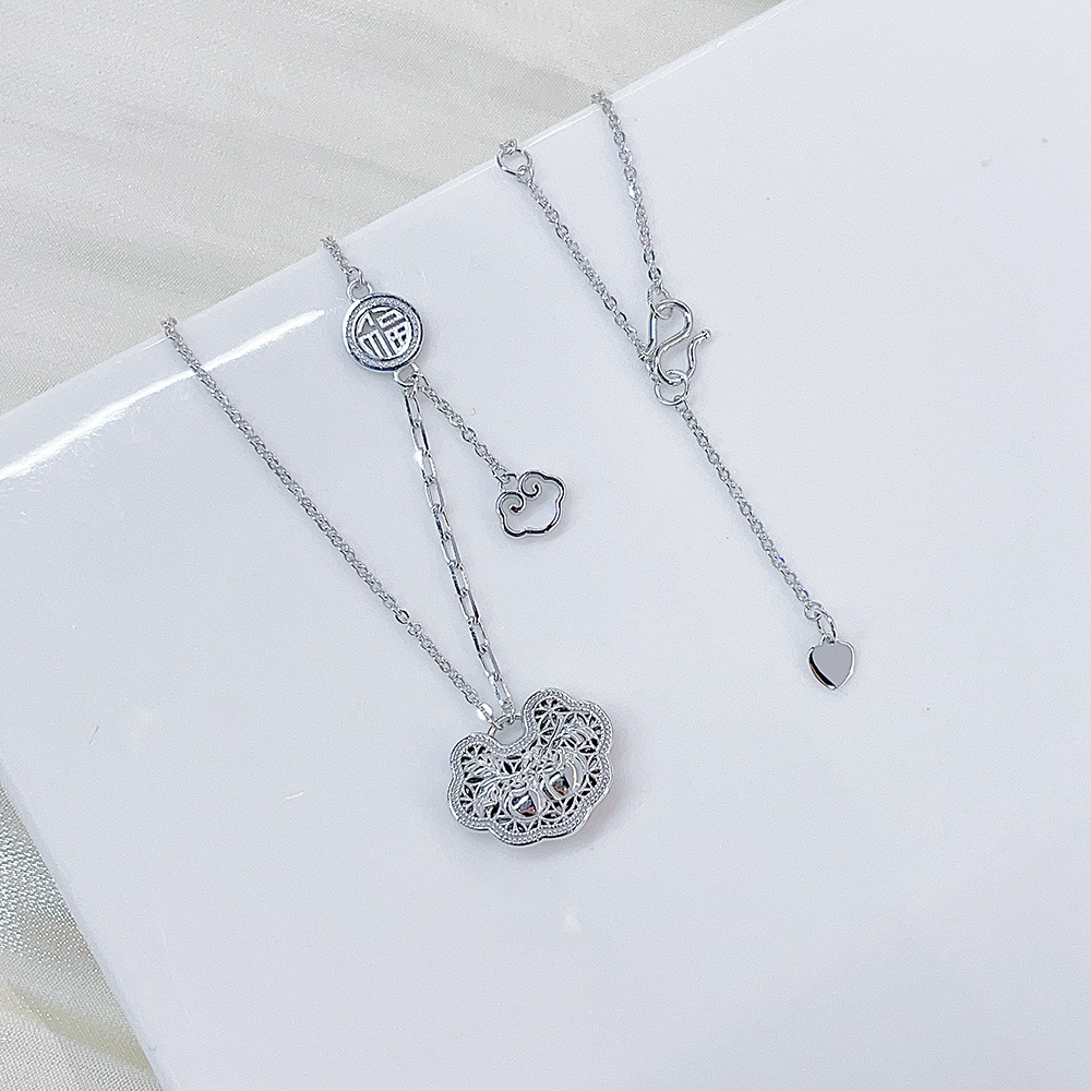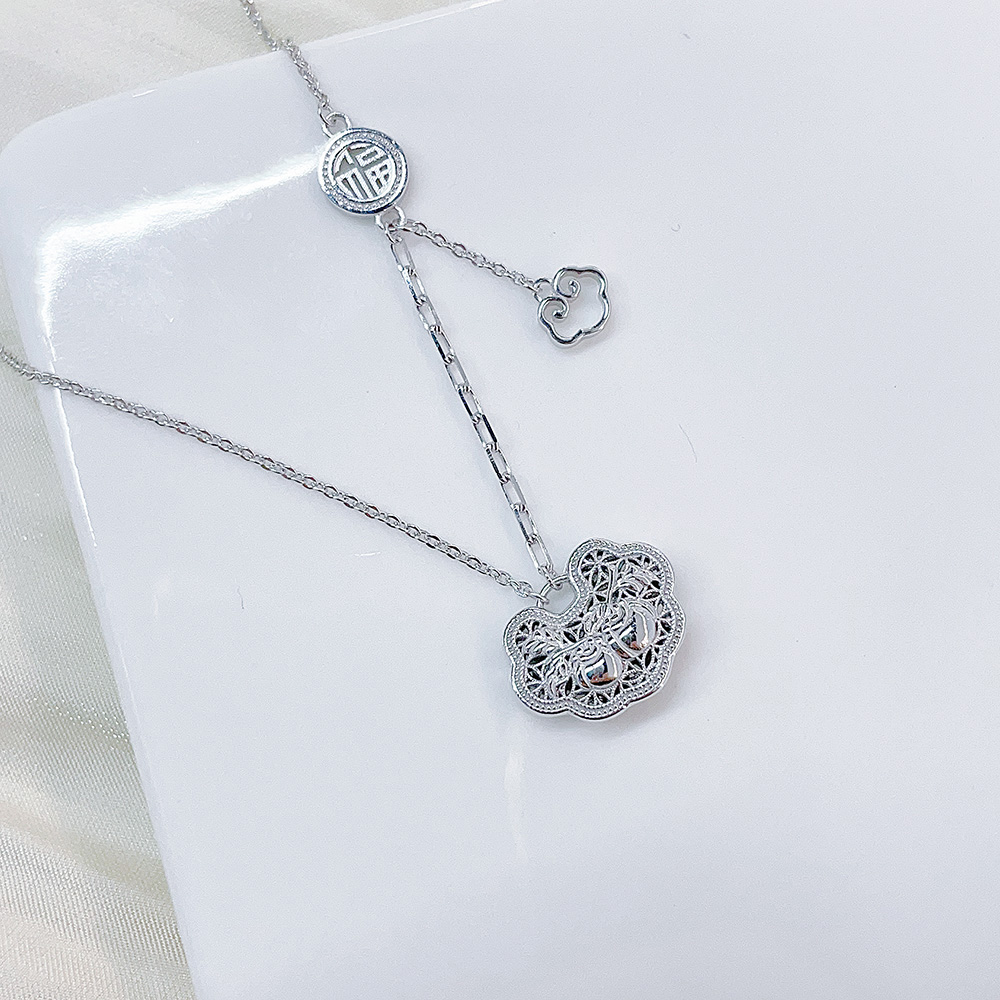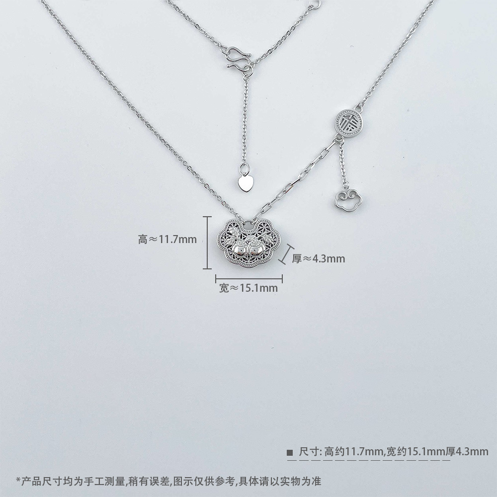 【线上铂金馆】PT950 #复古风 铂金空心AB调节如意福牌项链万事如意柿子如意锁包套链(PTTL00078)预售产品下单后不退款不退货不换货不补差价)