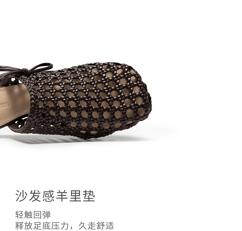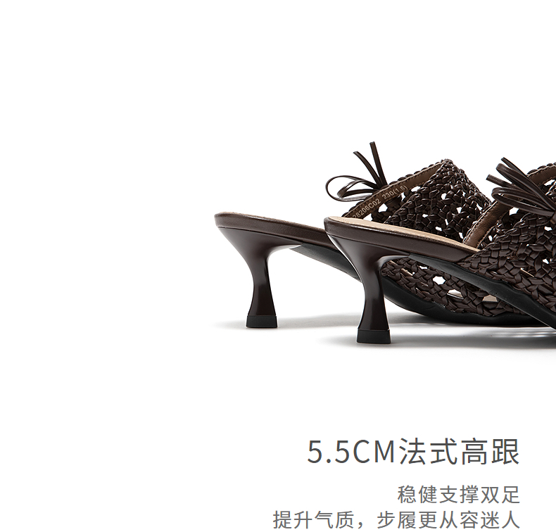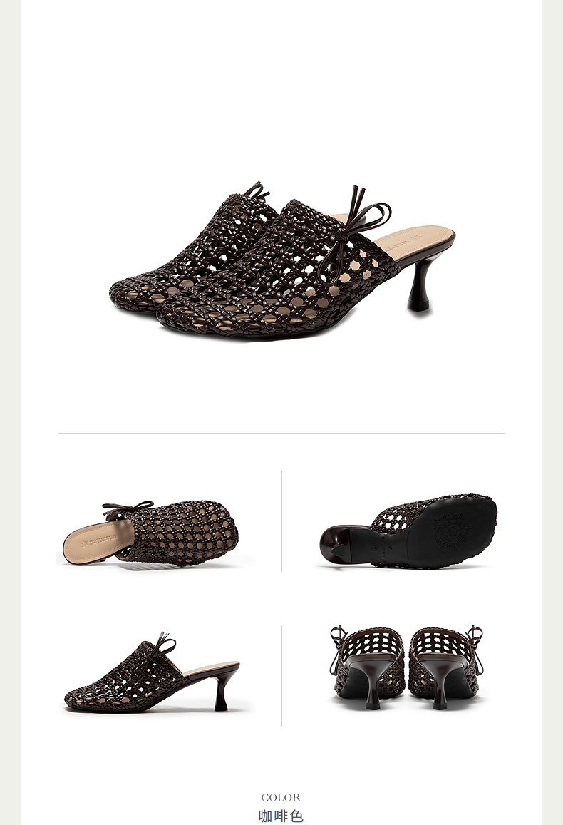 【上新】natursun手工感编织包头拖夏季2026新款女细跟优雅一脚蹬镂空拖鞋N26228206
