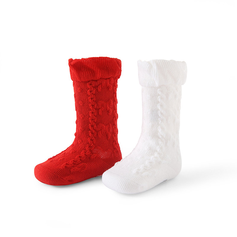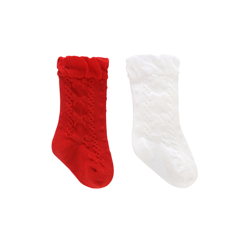 英氏22春季新品婴儿膝盖下长袜宝宝2双装花边松口袜子YIWHJ02047A