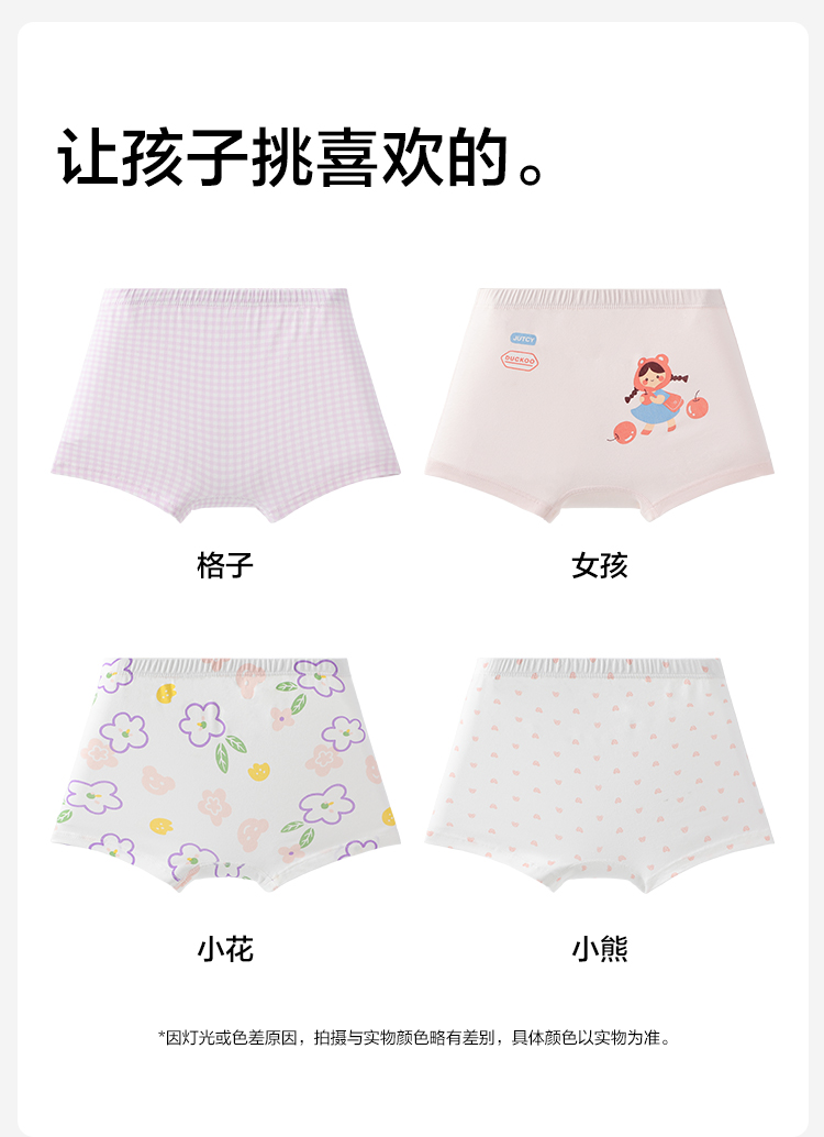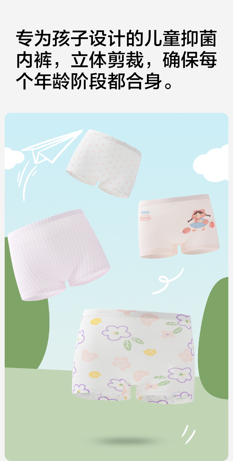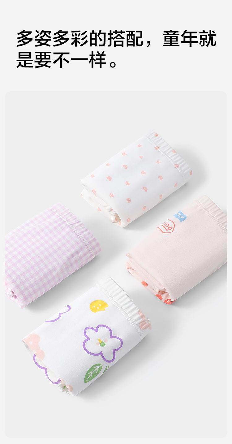 【4条装】【有棵树】【110-160】女童内裤透气儿童平角裤
