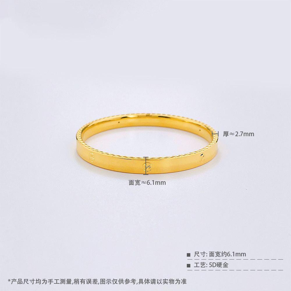 【限时克减150元】足金 【精品】无氰5D硬金空心固口螺丝纹手镯米字纹手镯(面宽约5.9-6.3mm,厚约2.7mm)(AR5DSZ00009)(预售产品下单后不退款不退货不换货不补差价)