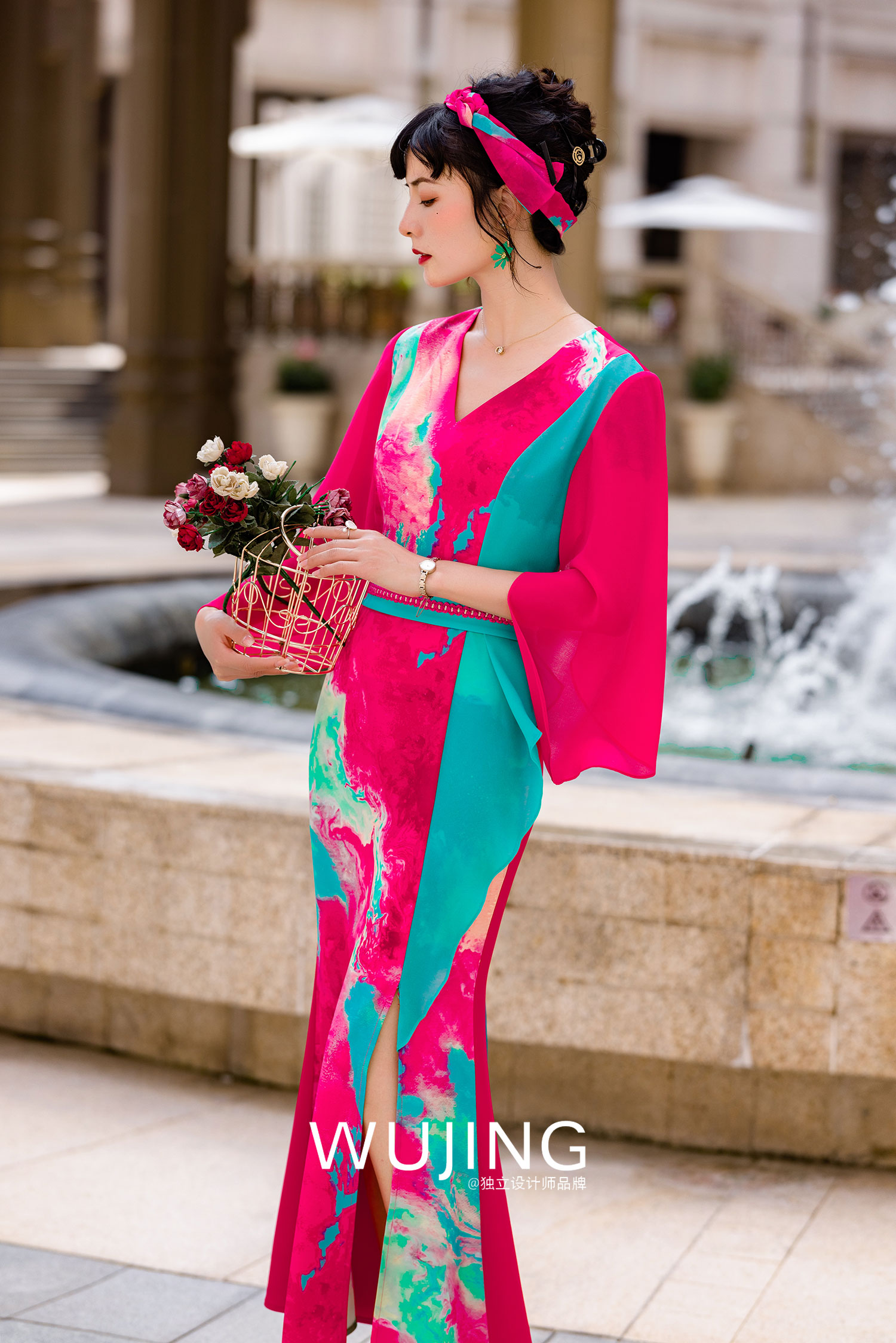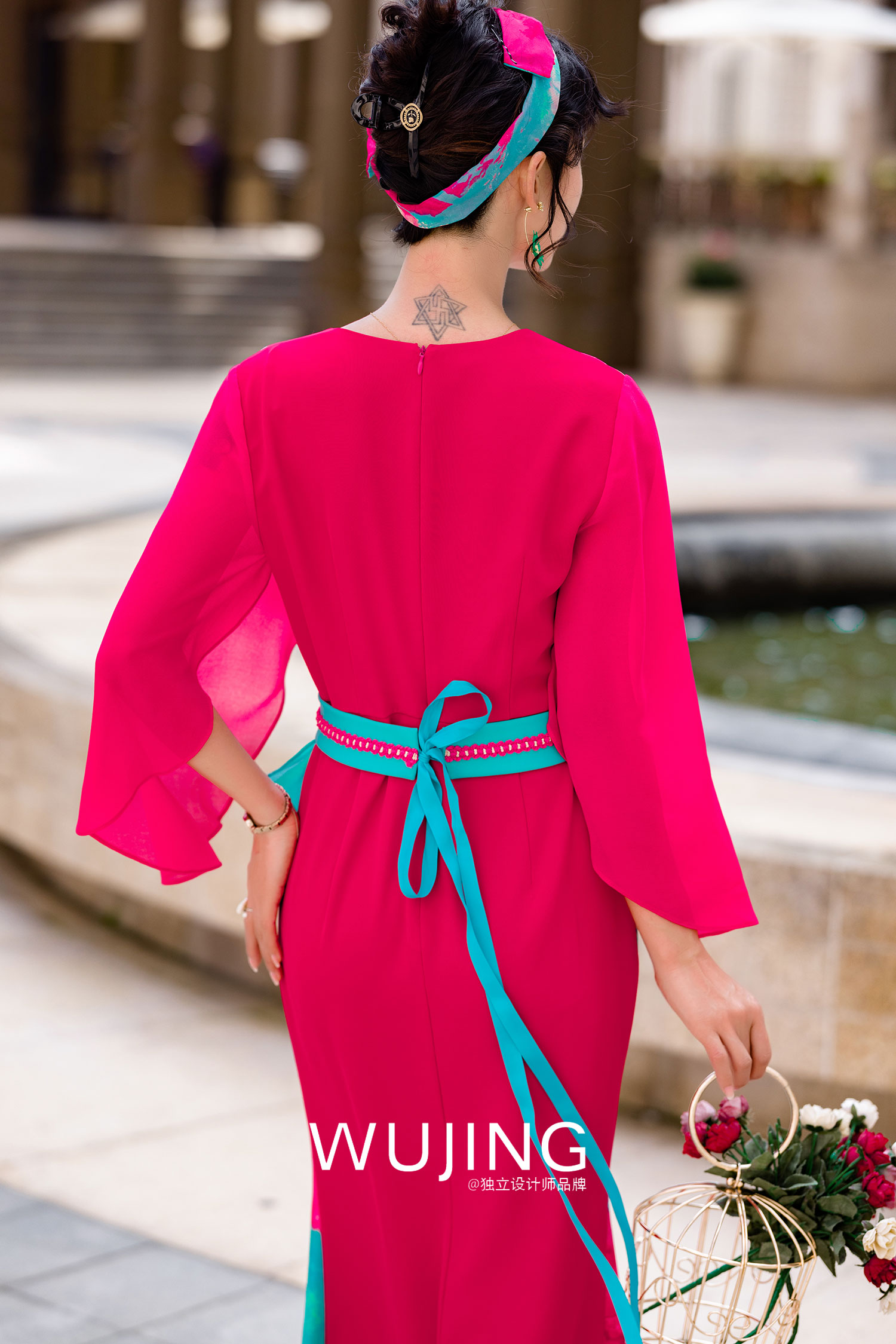 3022094 海棠醉日 树莓红连衣裙 雾境
