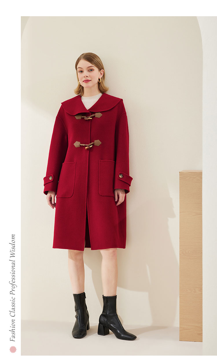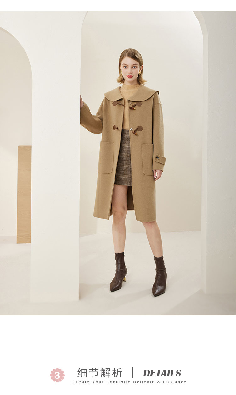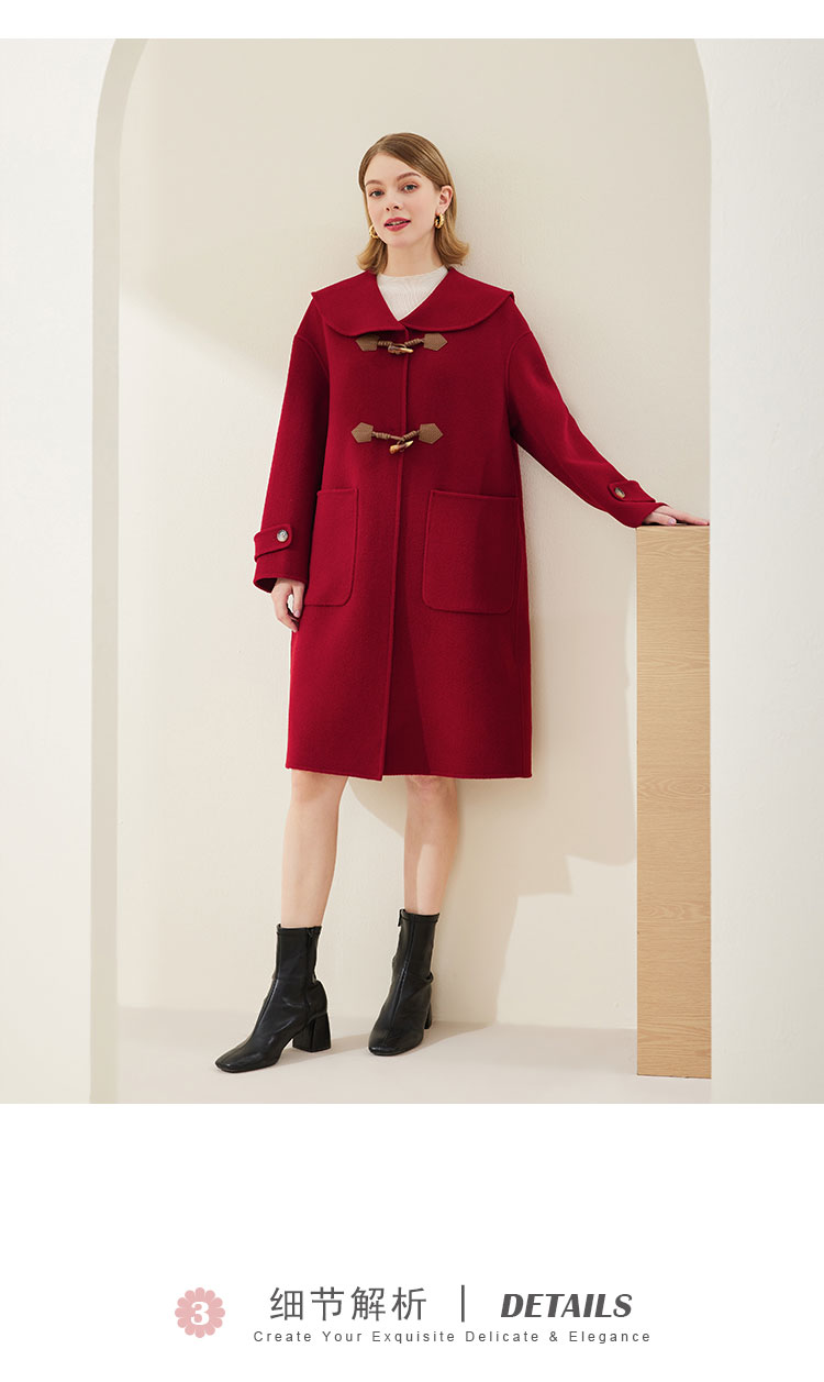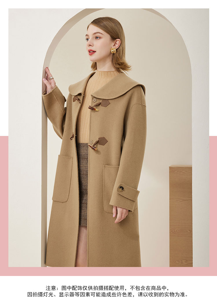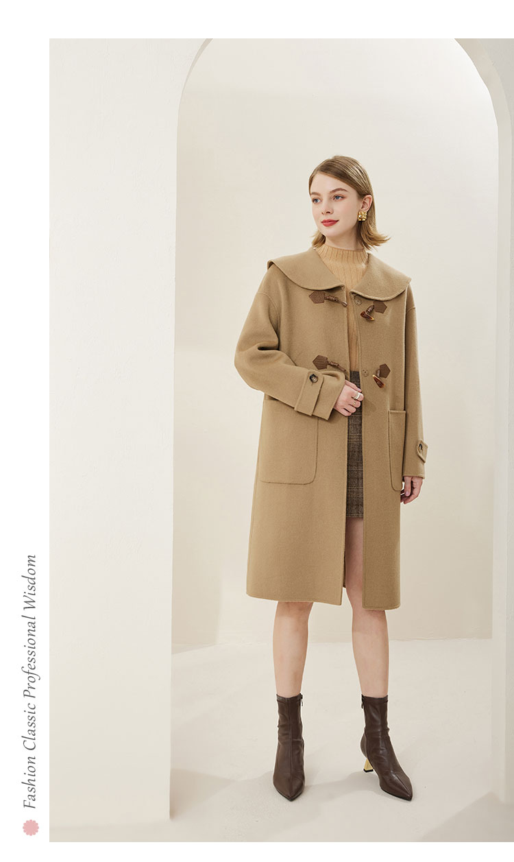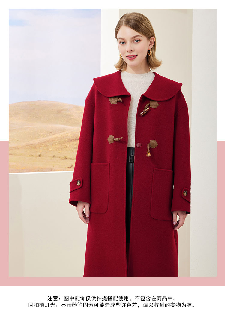 MH9B2斯尔丽瑟俪2022年冬上新商场同款复古海军领牛角扣减龄长款大衣