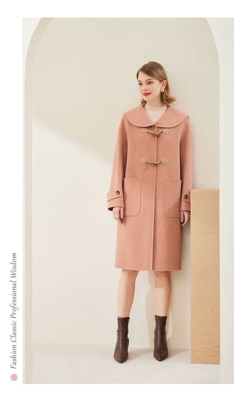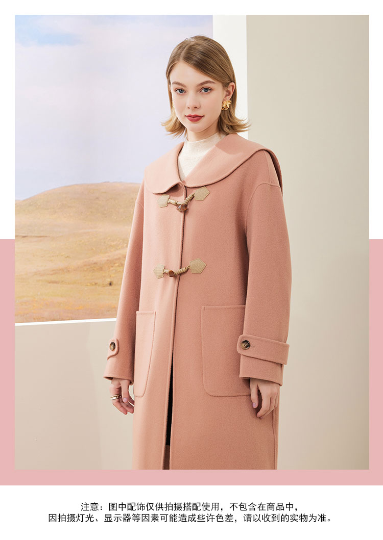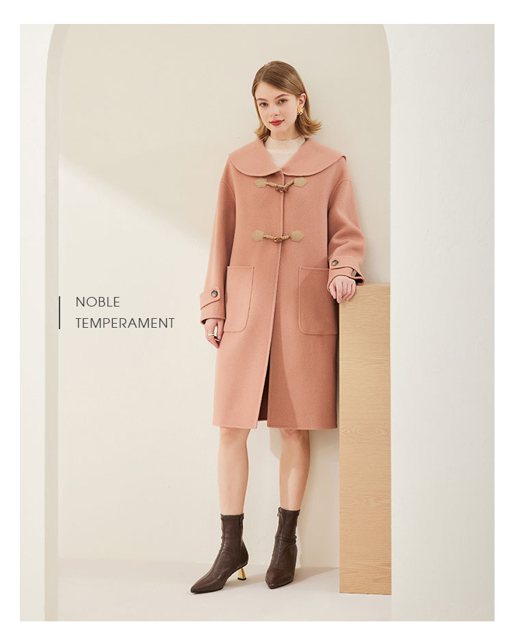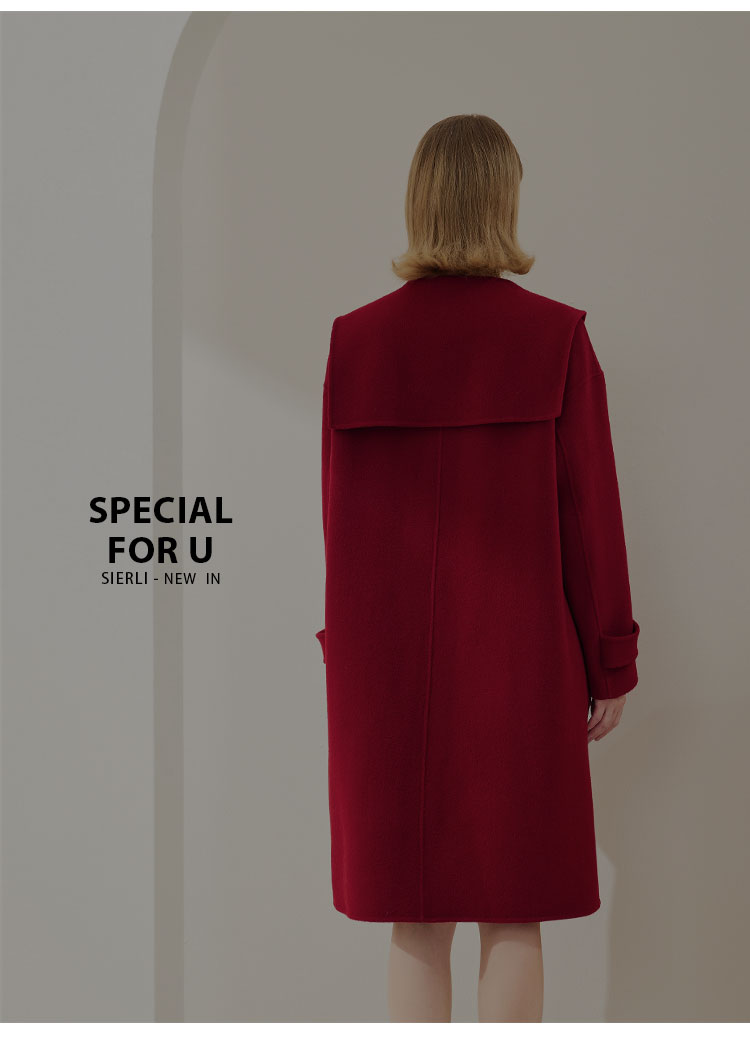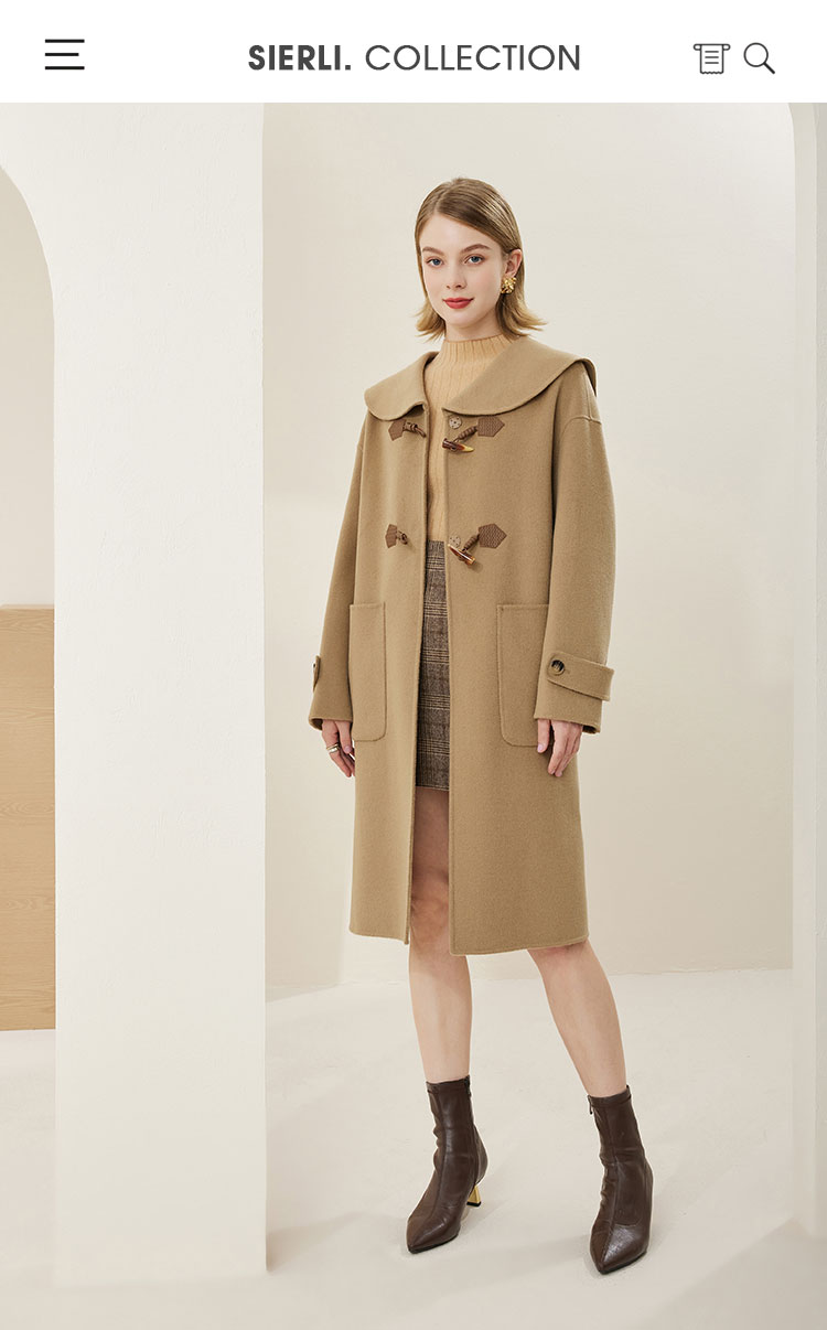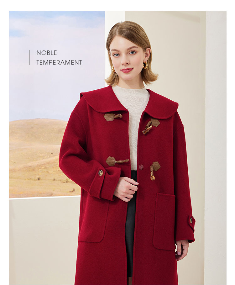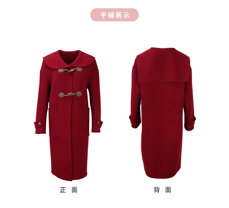 MH9B2斯尔丽瑟俪2022年冬上新商场同款复古海军领牛角扣减龄长款大衣