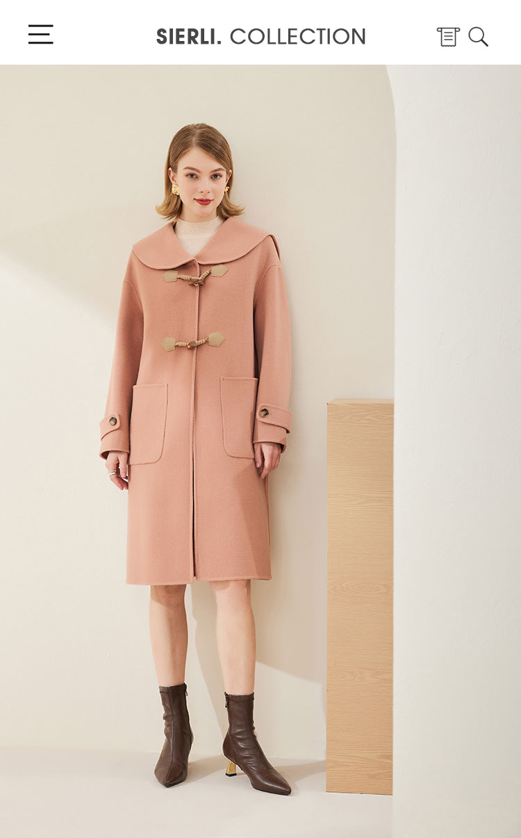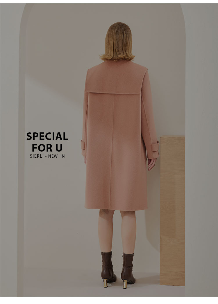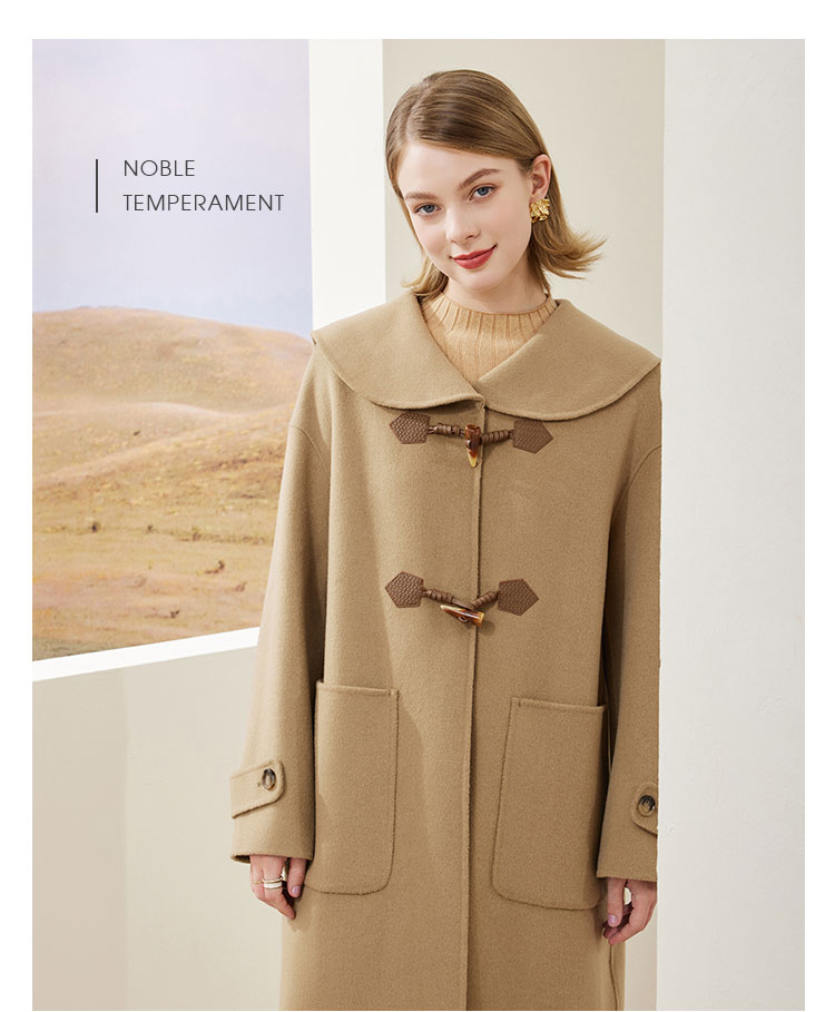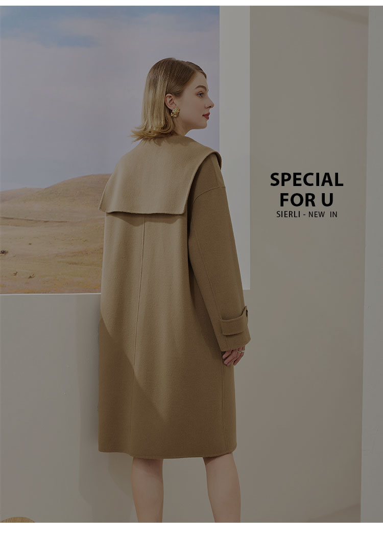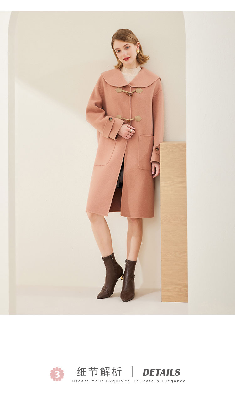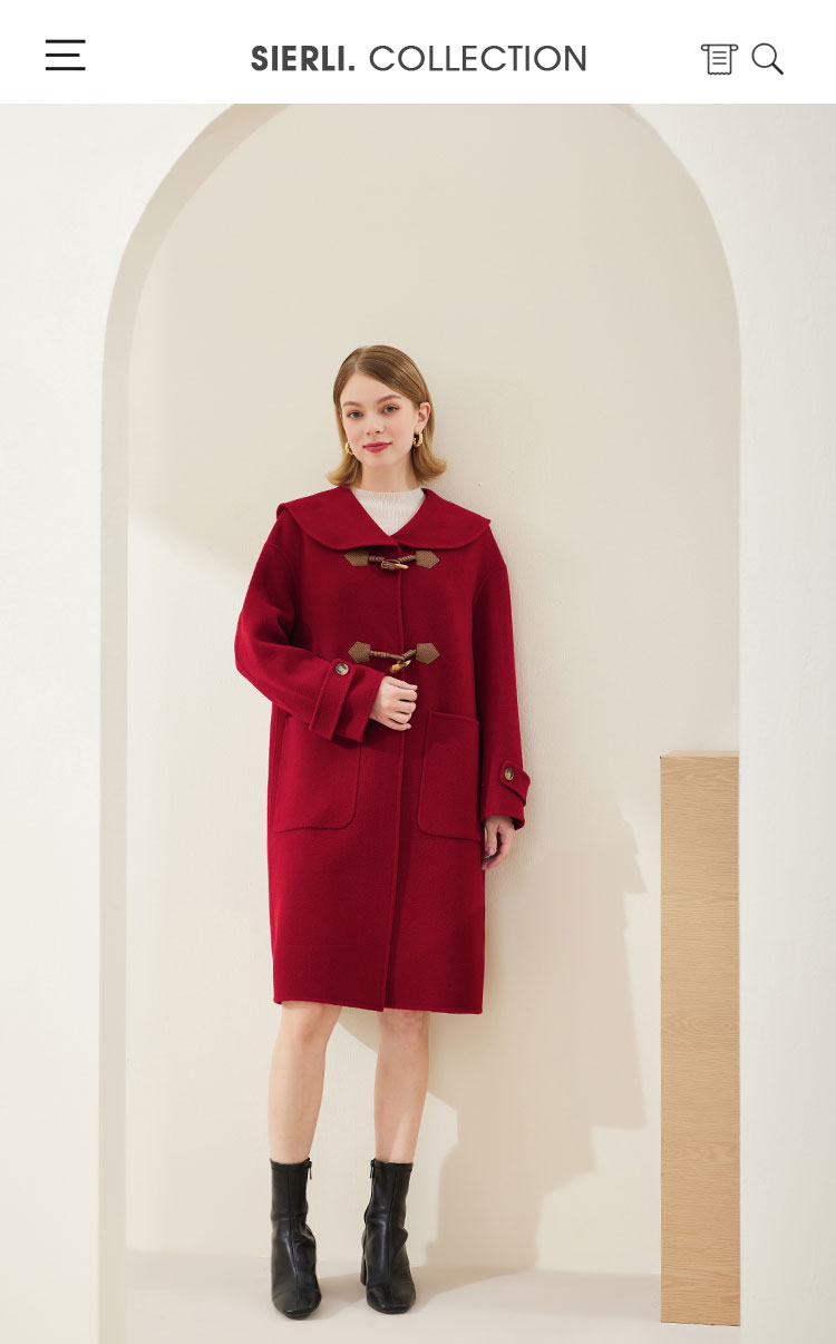MH9B2斯尔丽瑟俪2022年冬上新商场同款复古海军领牛角扣减龄长款大衣