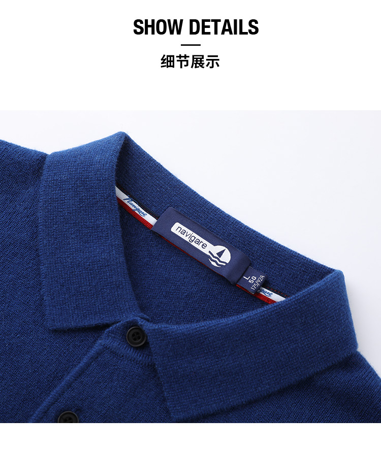 纳维凯尔Navigare意大利小帆船春季新款羊绒衫男翻领毛衣打底衫长袖针织衫 1137020011