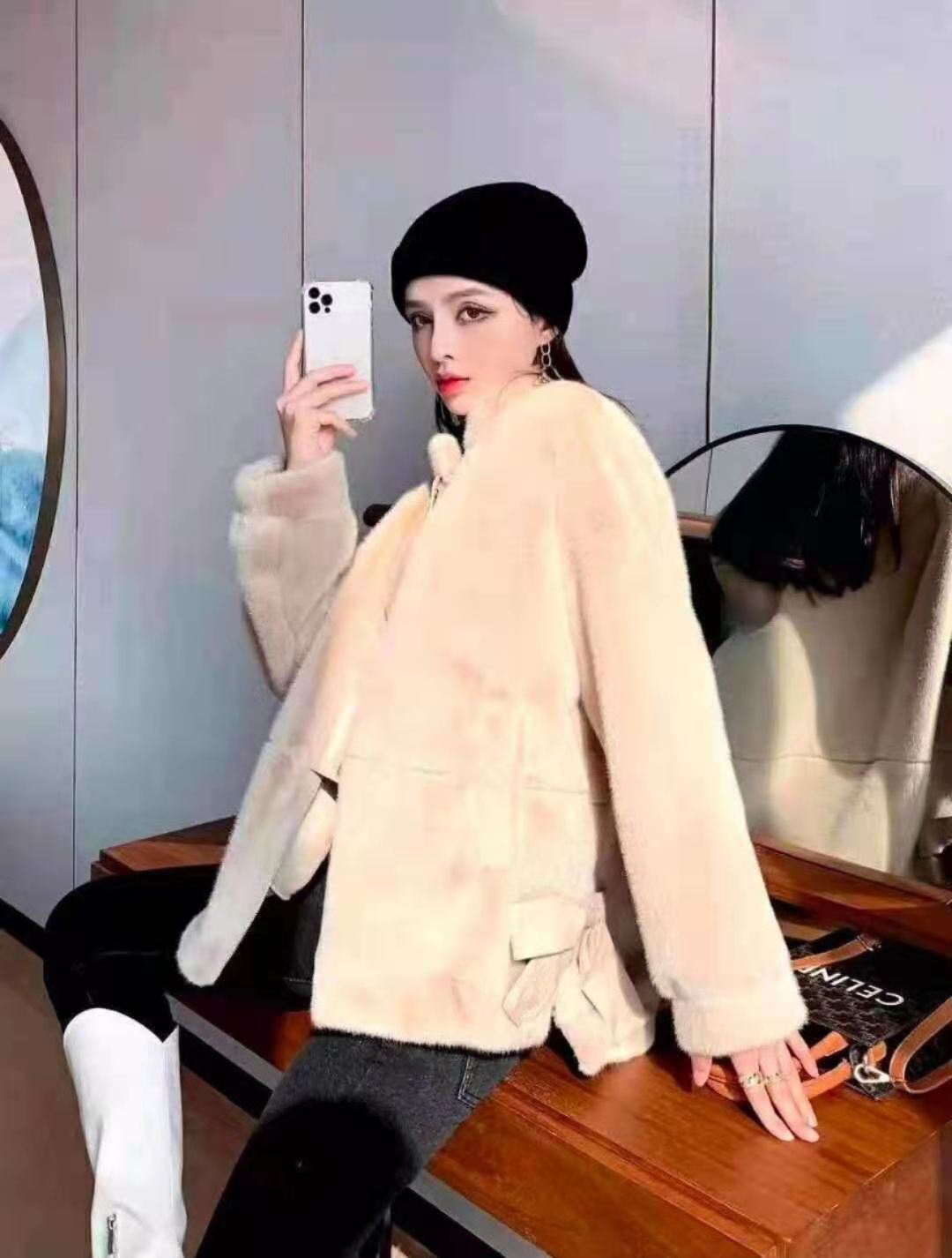 爱尚丽媛12-8时尚黄,金欧貂,卡色,米白,两个颜色,时尚短款均码,90斤-150斤穿着。时尚韩范,穿着舒适,手感柔软,保暖性好,可搭配牛仔裤。短裤短裙。适合18-48岁时尚女士穿着。