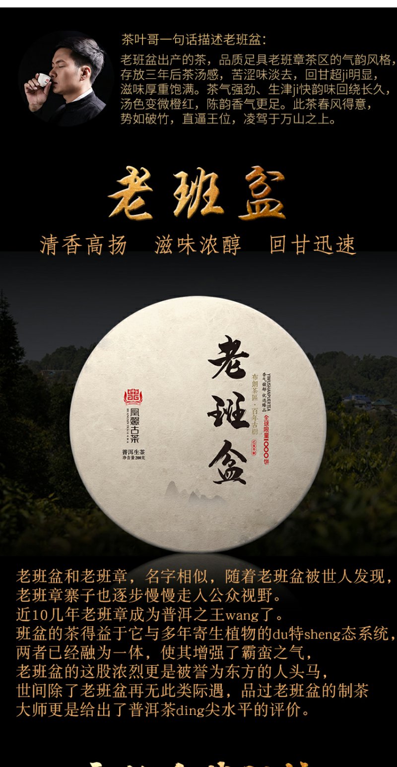 凰馨古茶【老班盆】普洱茶生茶云南700年古树纯料17年春茶