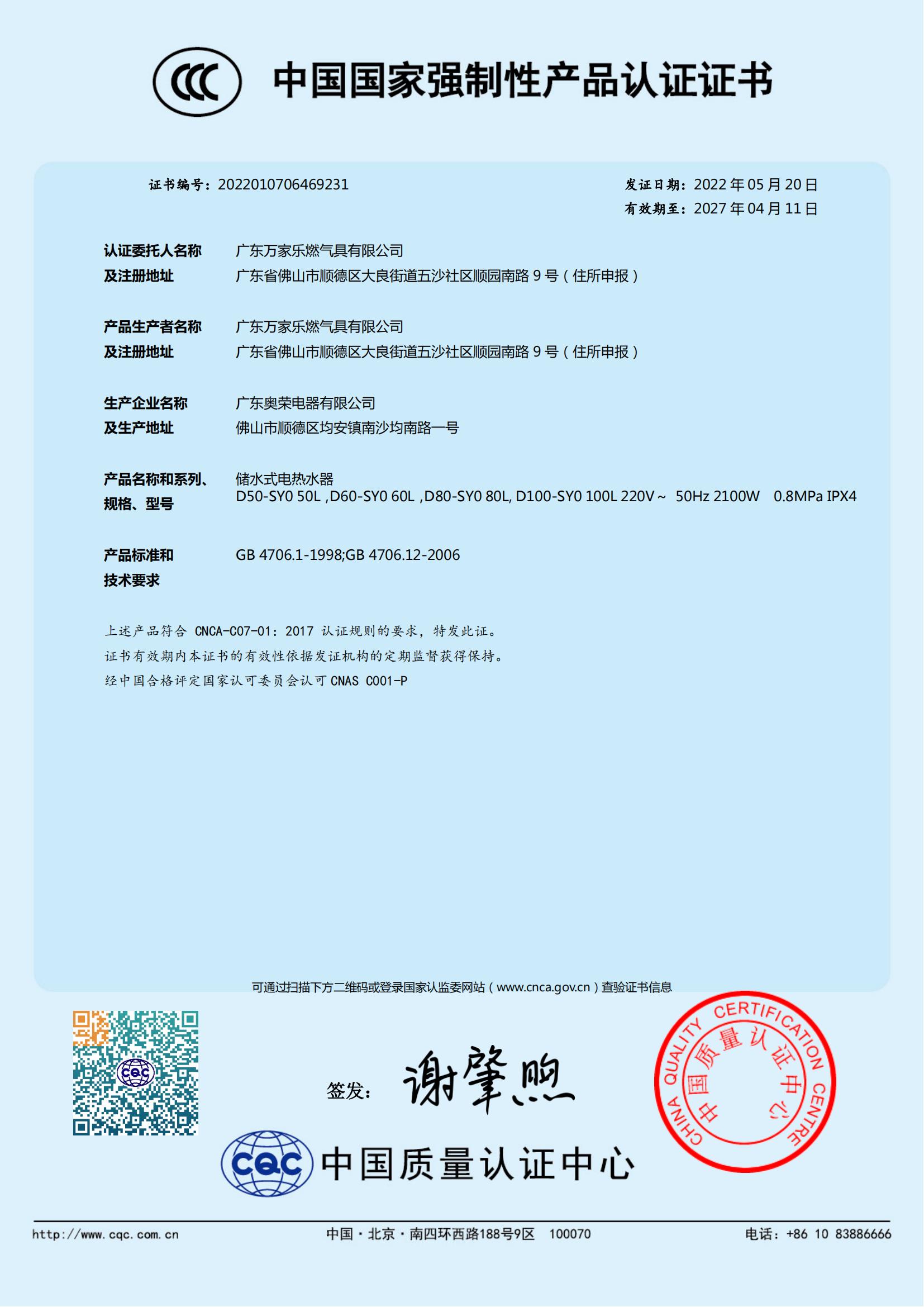 万家乐-SY0 50L 电热水器 储水式ECO节能速热 2100W触控大屏 预约加热 高温灭菌
