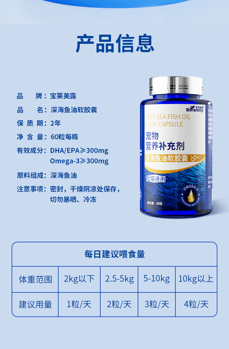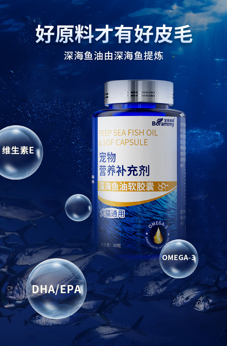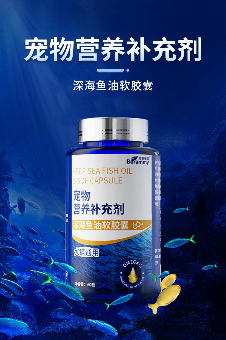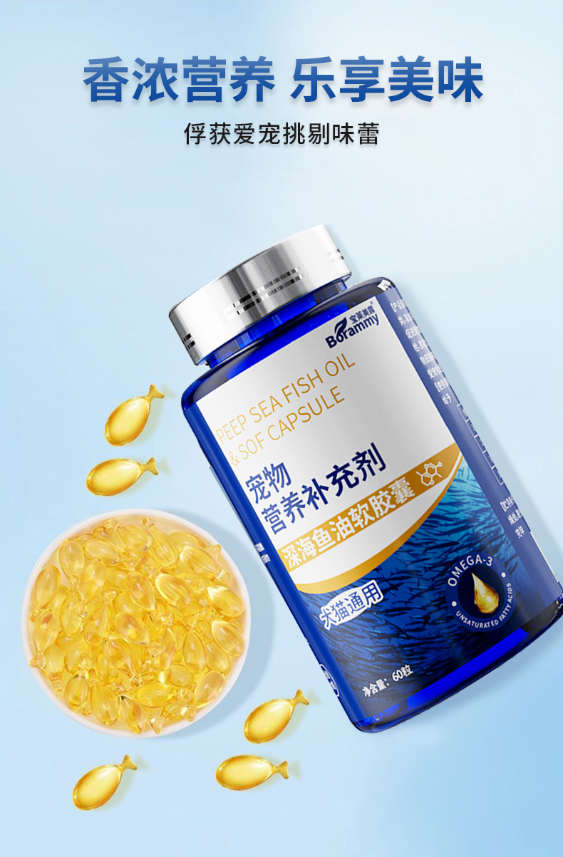 宝莱美露鱼油胶囊60粒 卵磷脂美毛护毛 犬猫通用