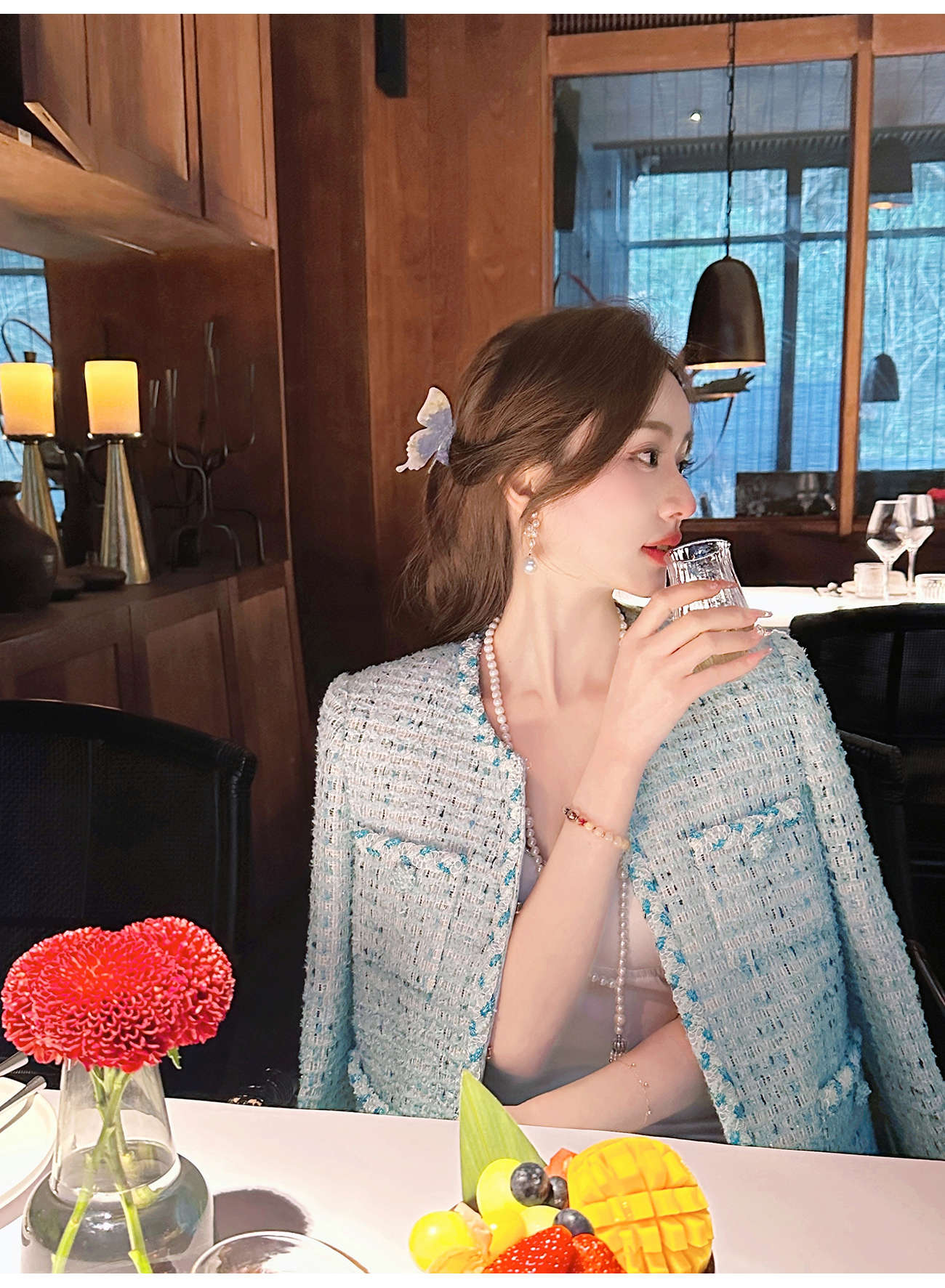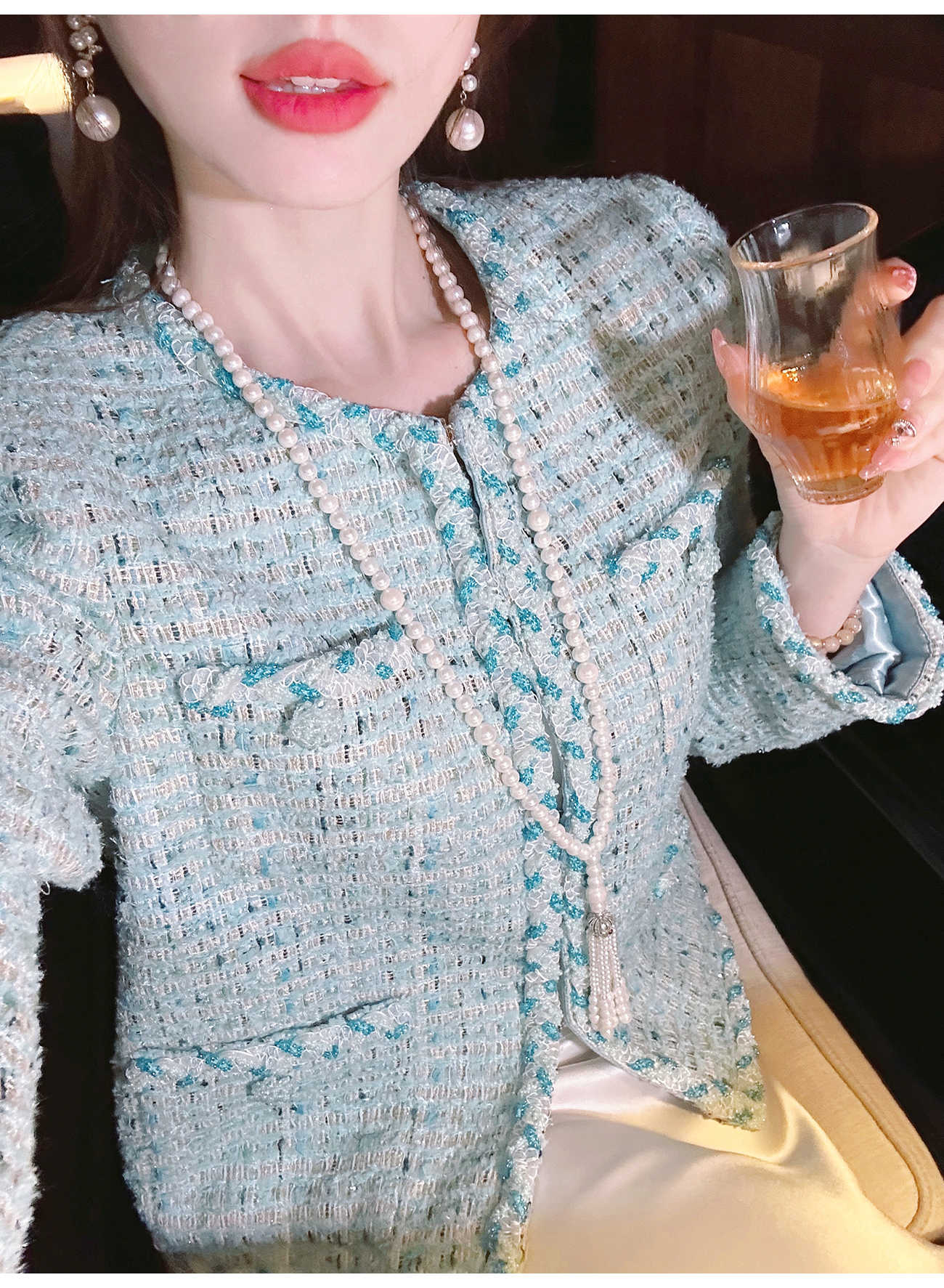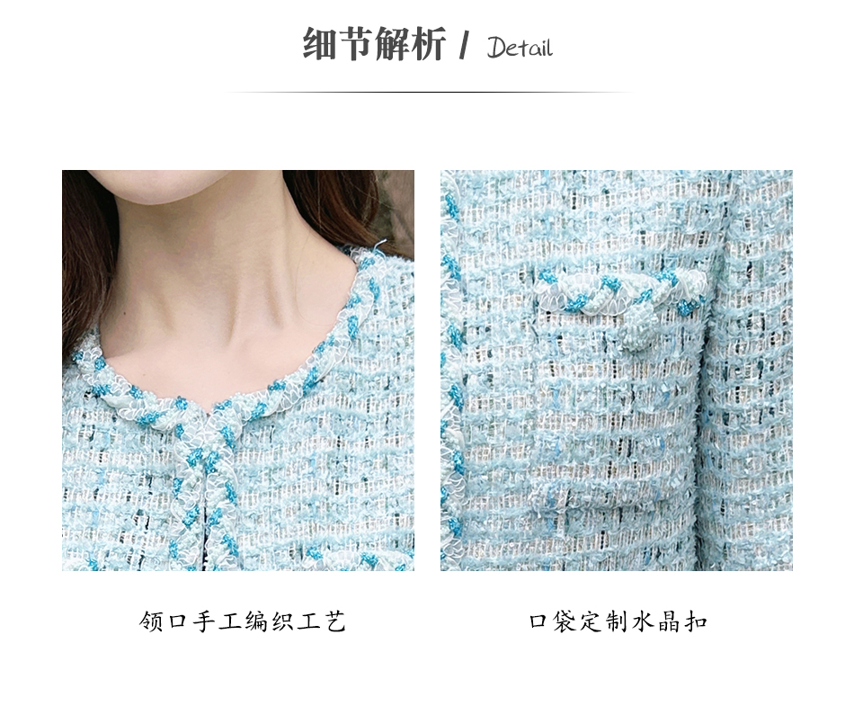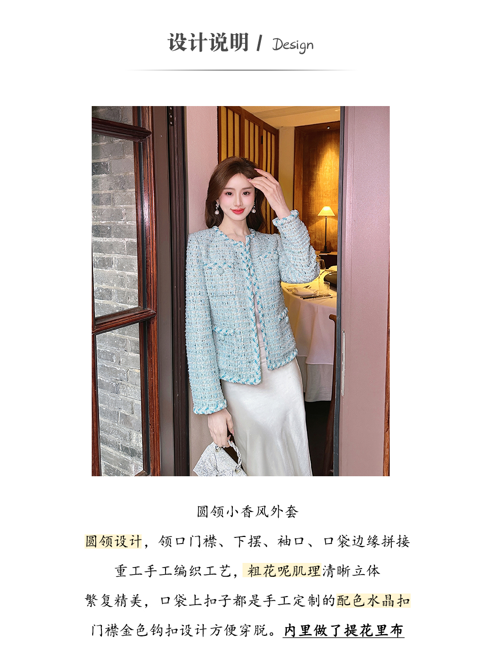 BeQueenStory【清河白兰地】时尚编织提花内里圆领小香风上衣女外套