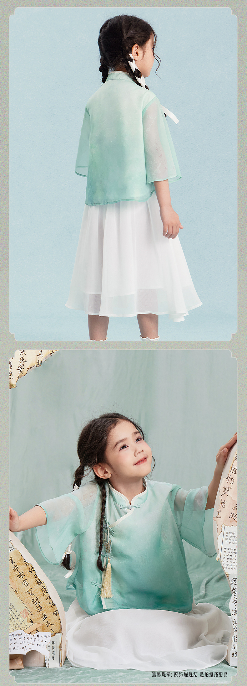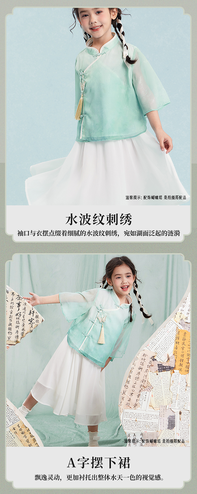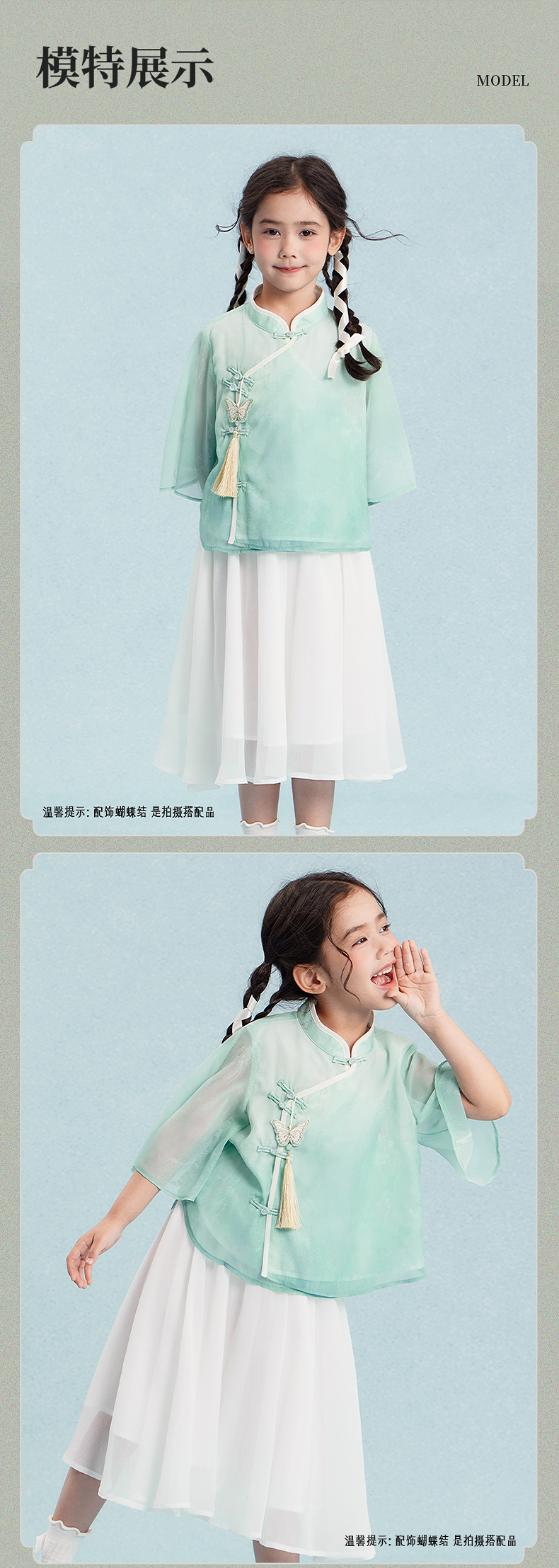笛莎Deesha观山见女童套装2025夏季女童国风汉服套装