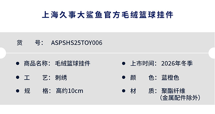 【官方正版】上海久事大鲨鱼俱乐部 | 毛绒篮球挂件可爱玩偶钥匙扣球迷周边
