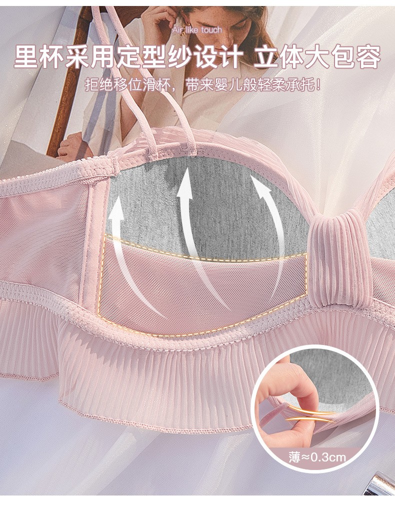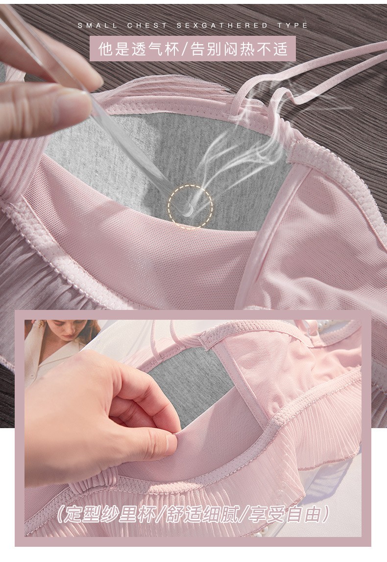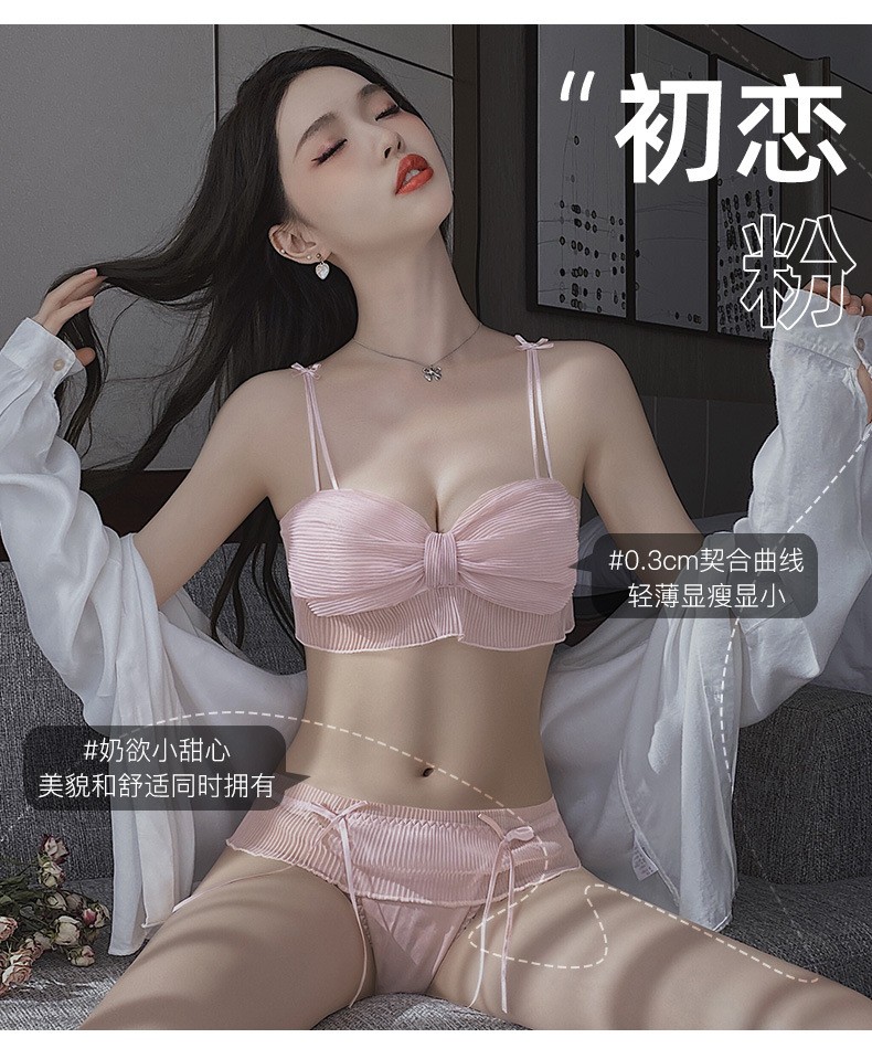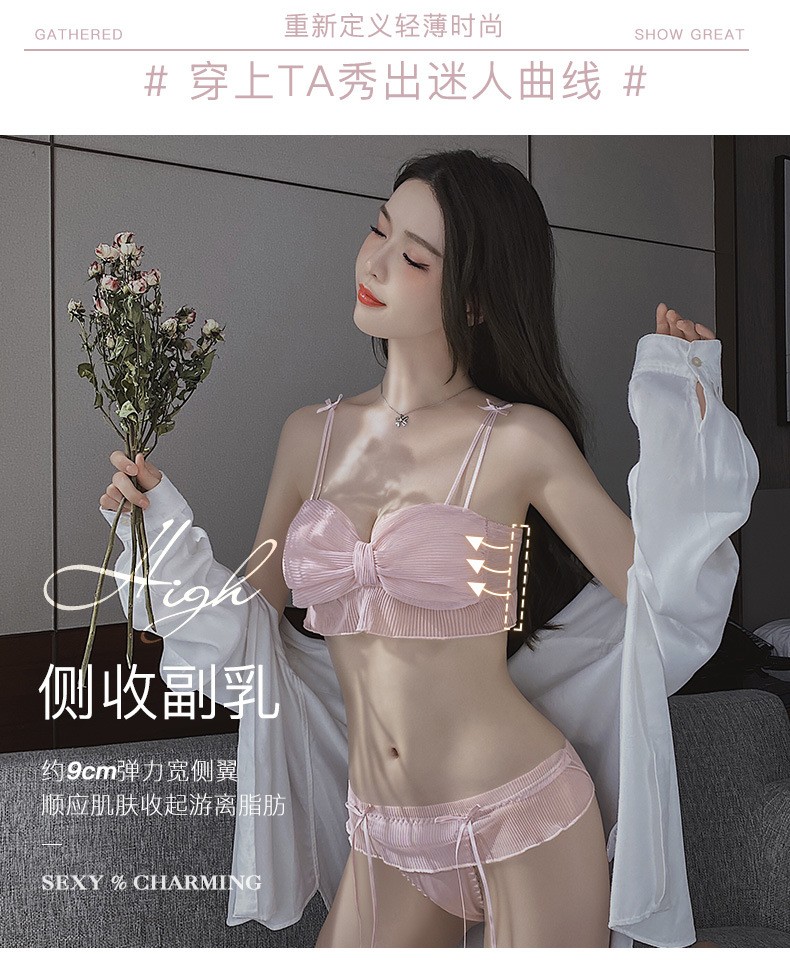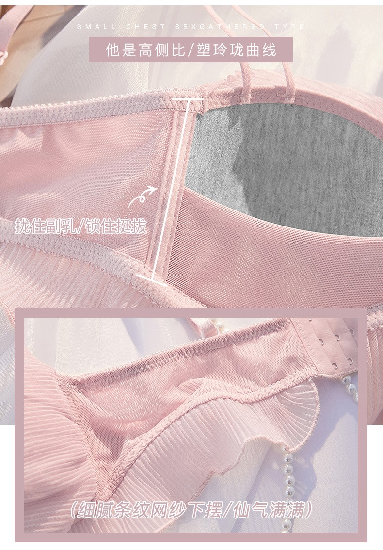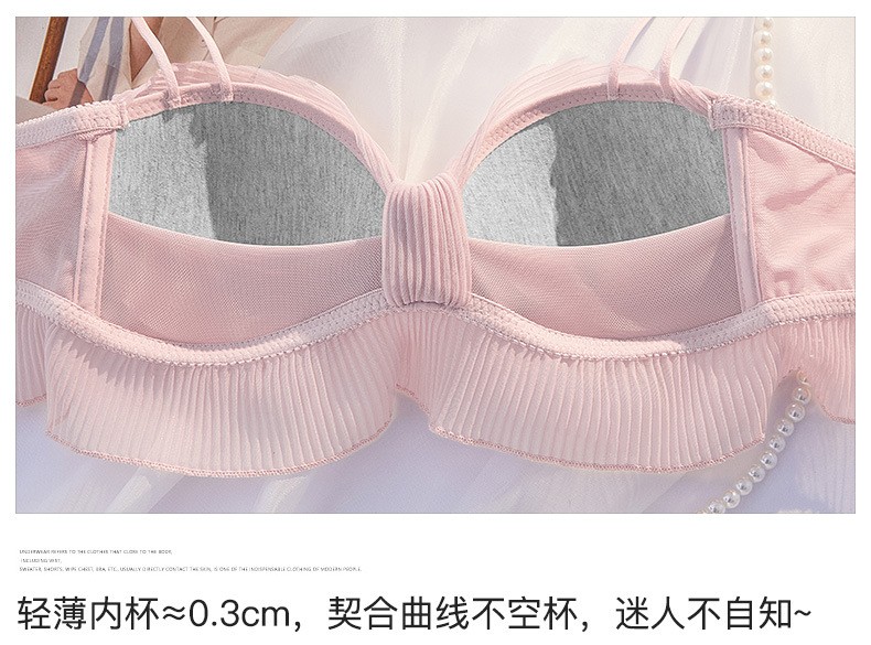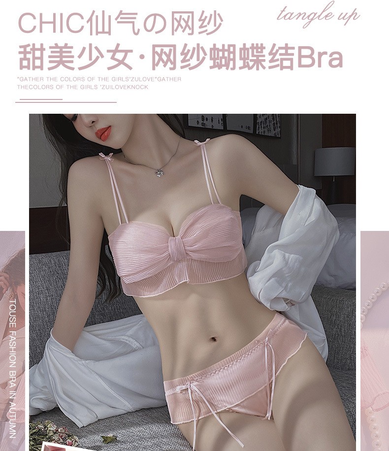 【甜美少女网纱蝴蝶结Bra】无钢圈小胸聚拢调整型内衣收副乳上托性感文胸套装