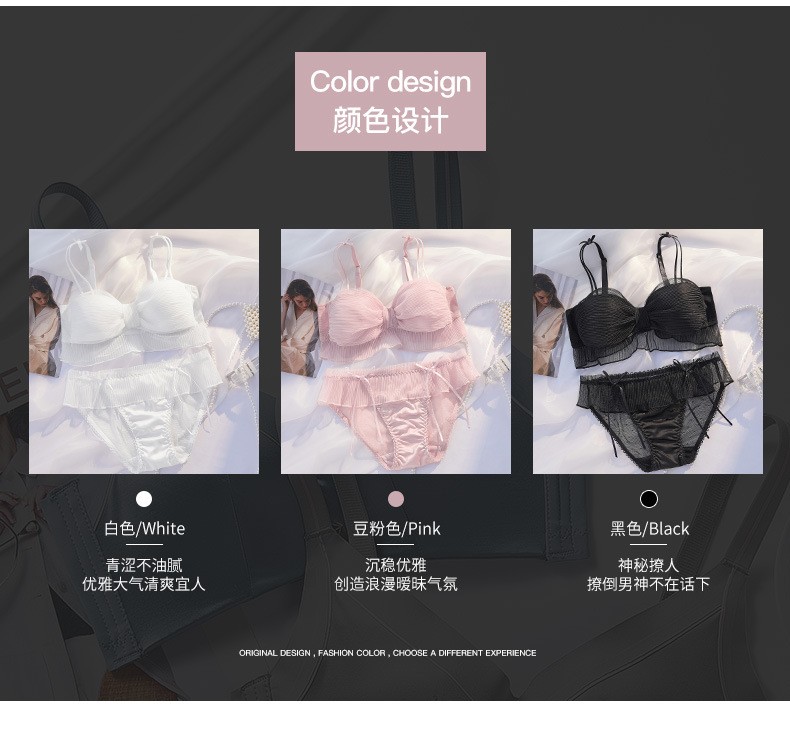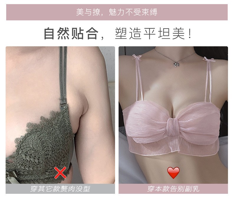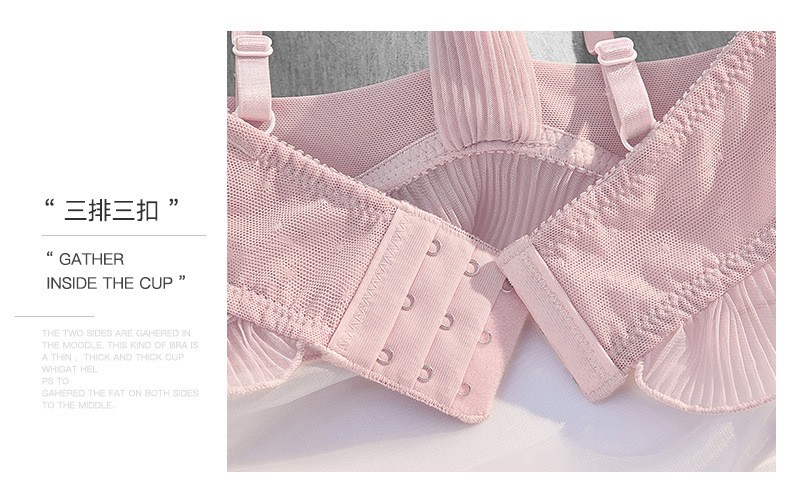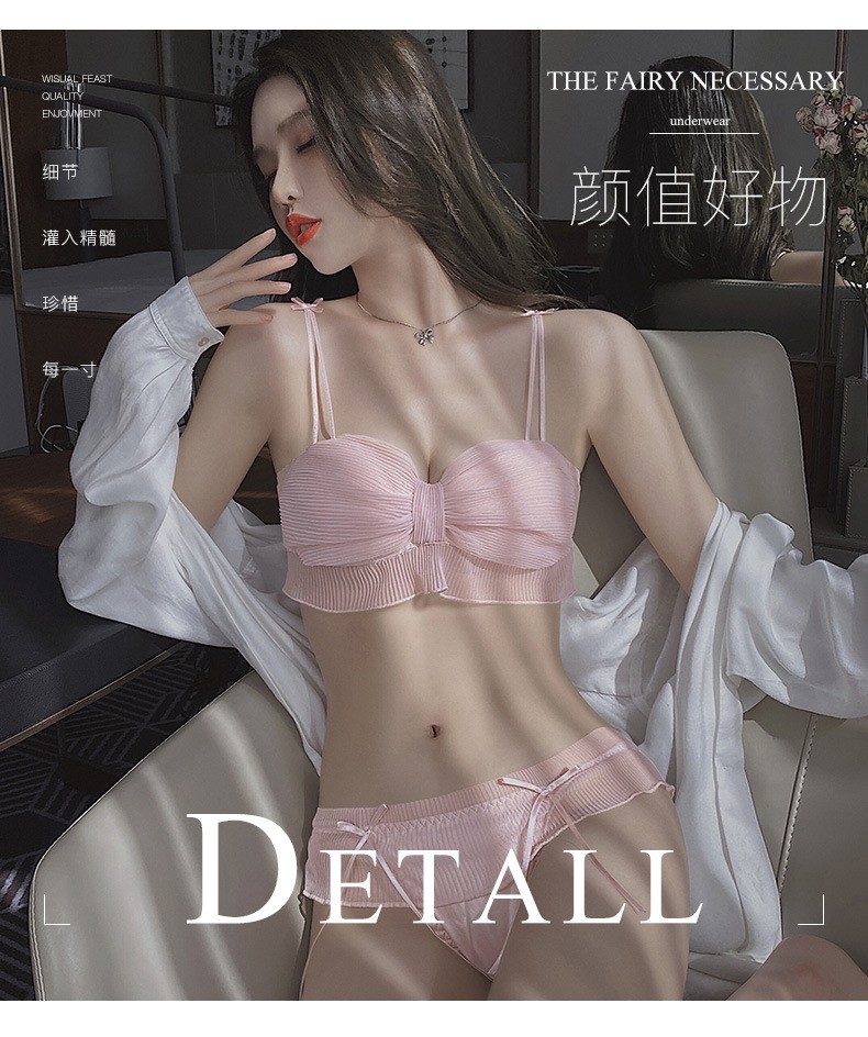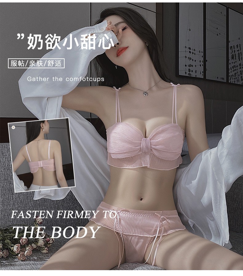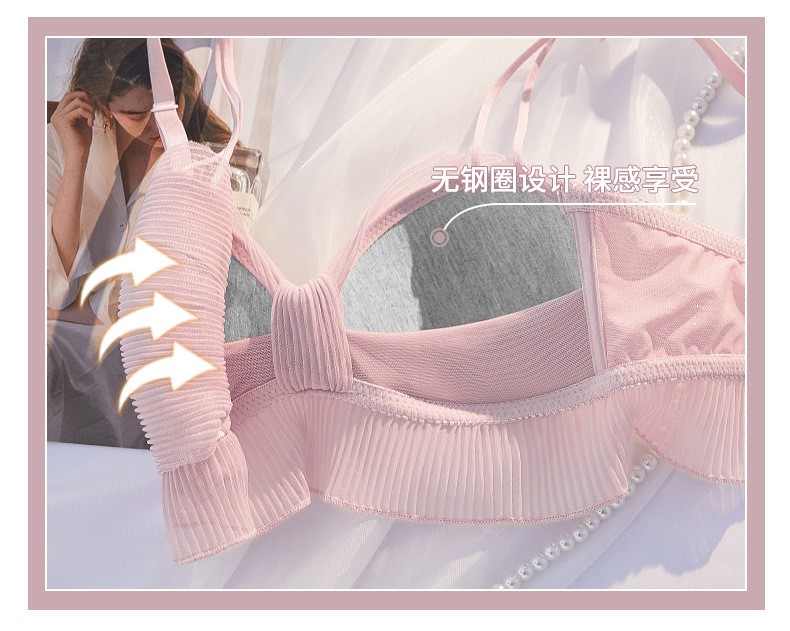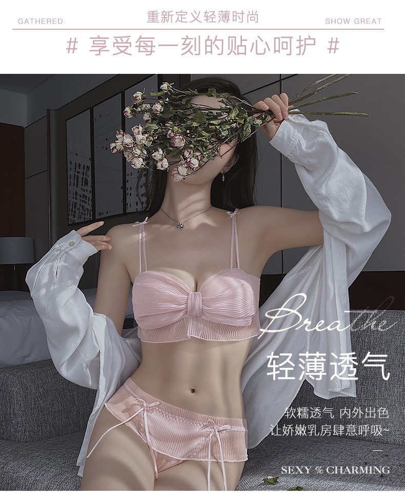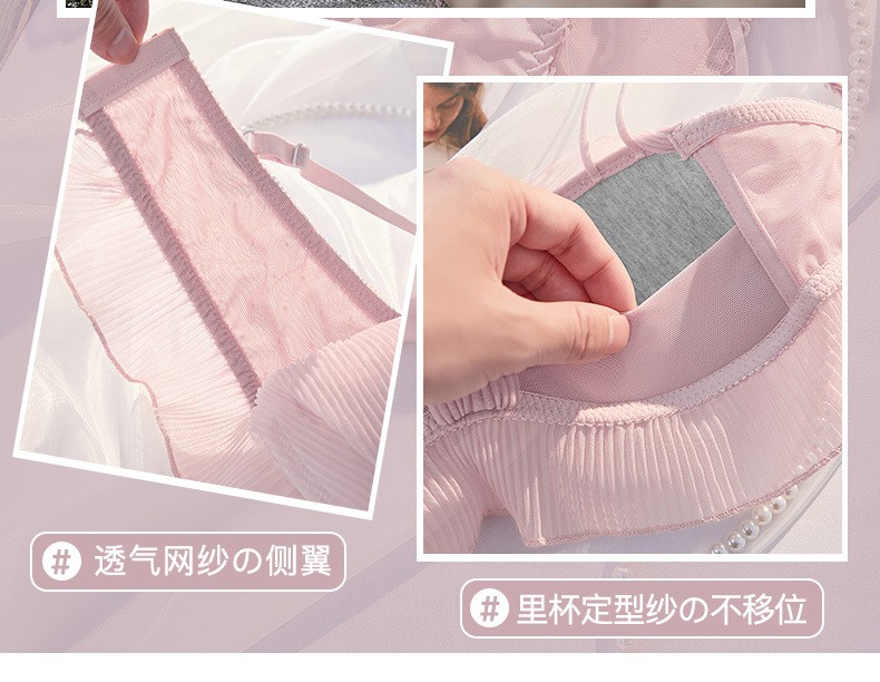 【甜美少女网纱蝴蝶结Bra】无钢圈小胸聚拢调整型内衣收副乳上托性感文胸套装
