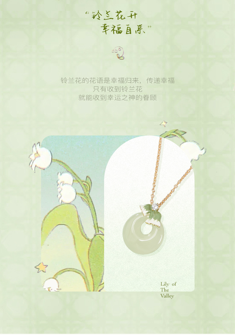 大英博物馆 欧洲文化艺术系列 铃兰花开和田玉 项链