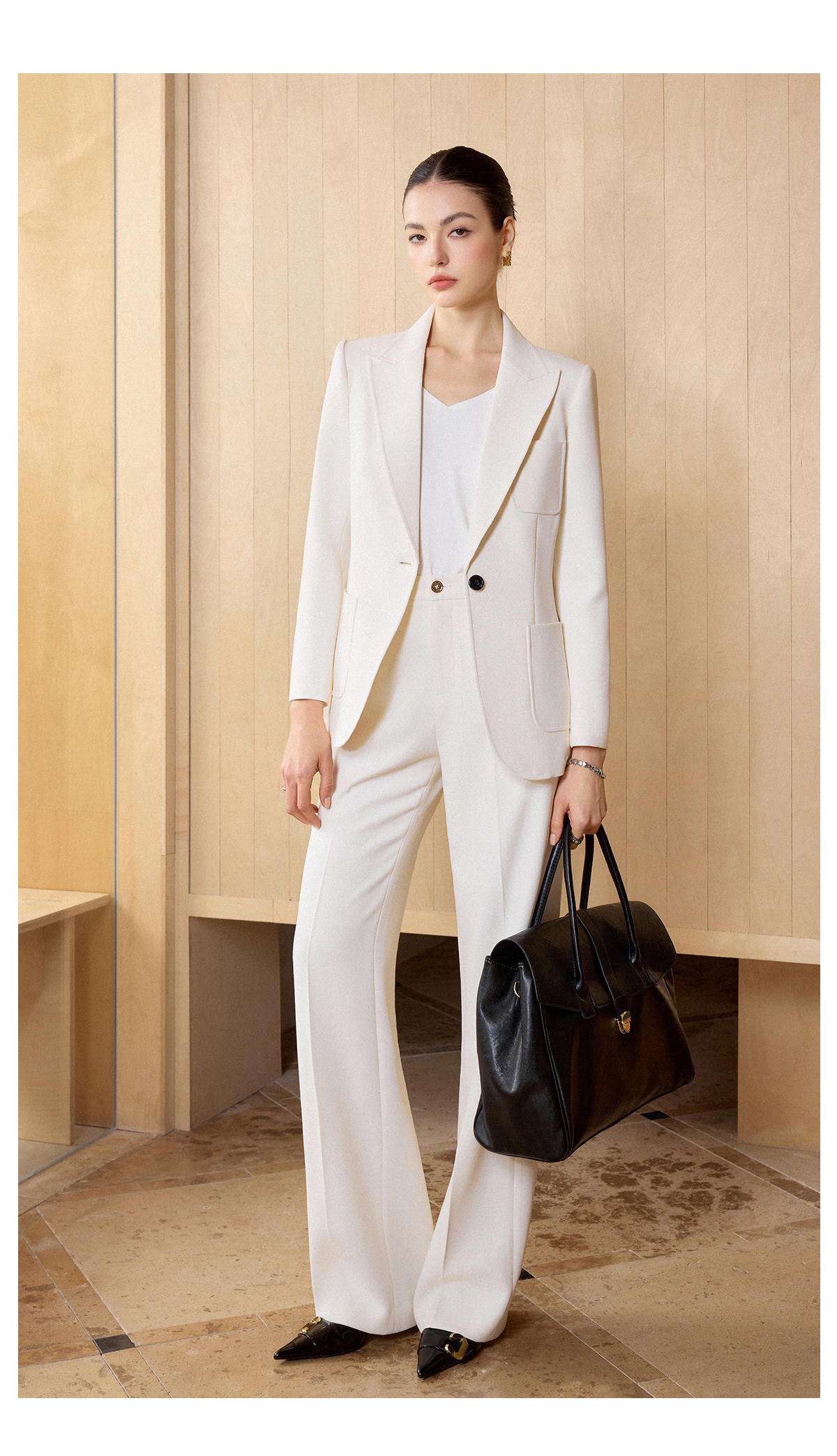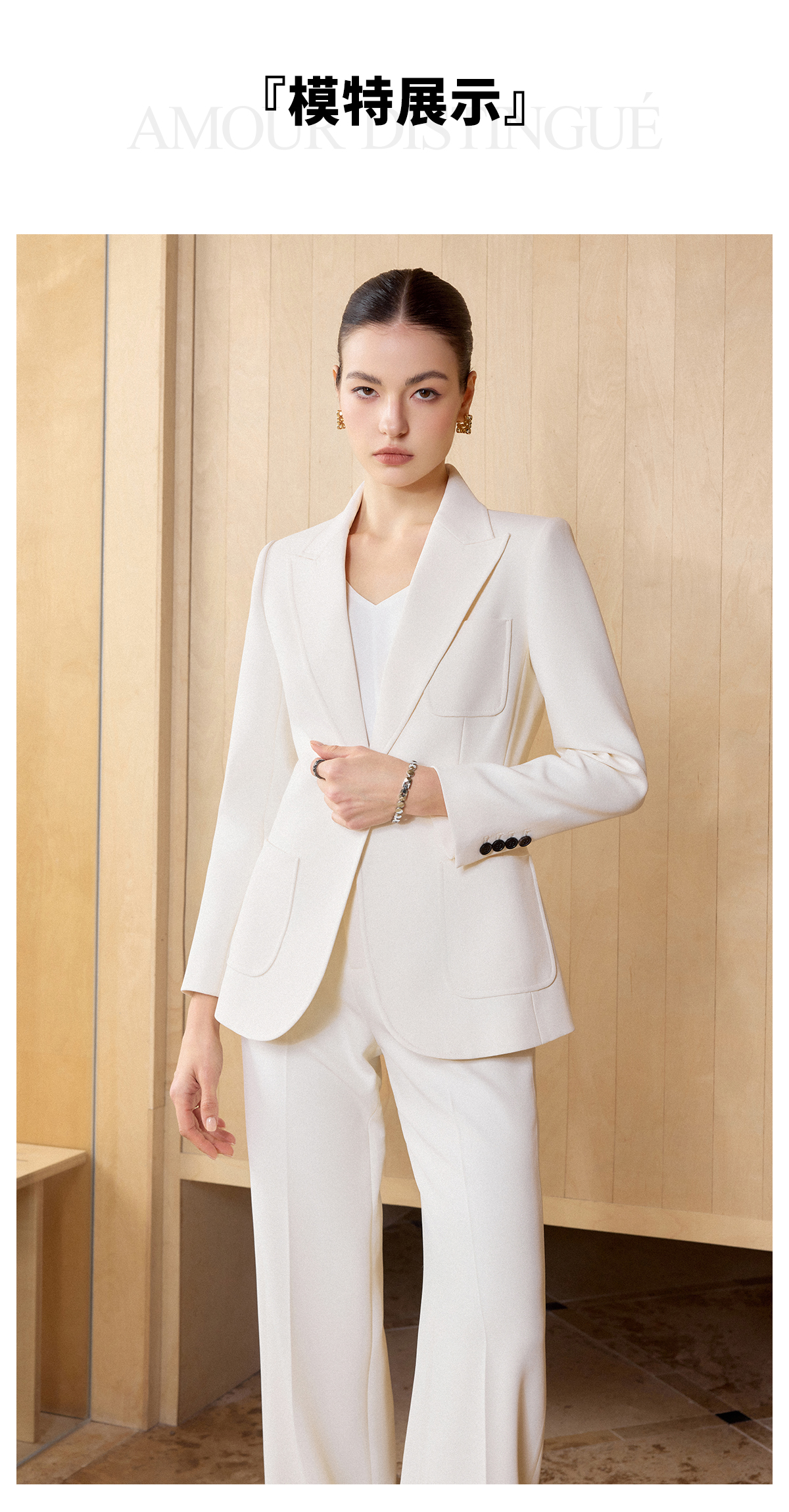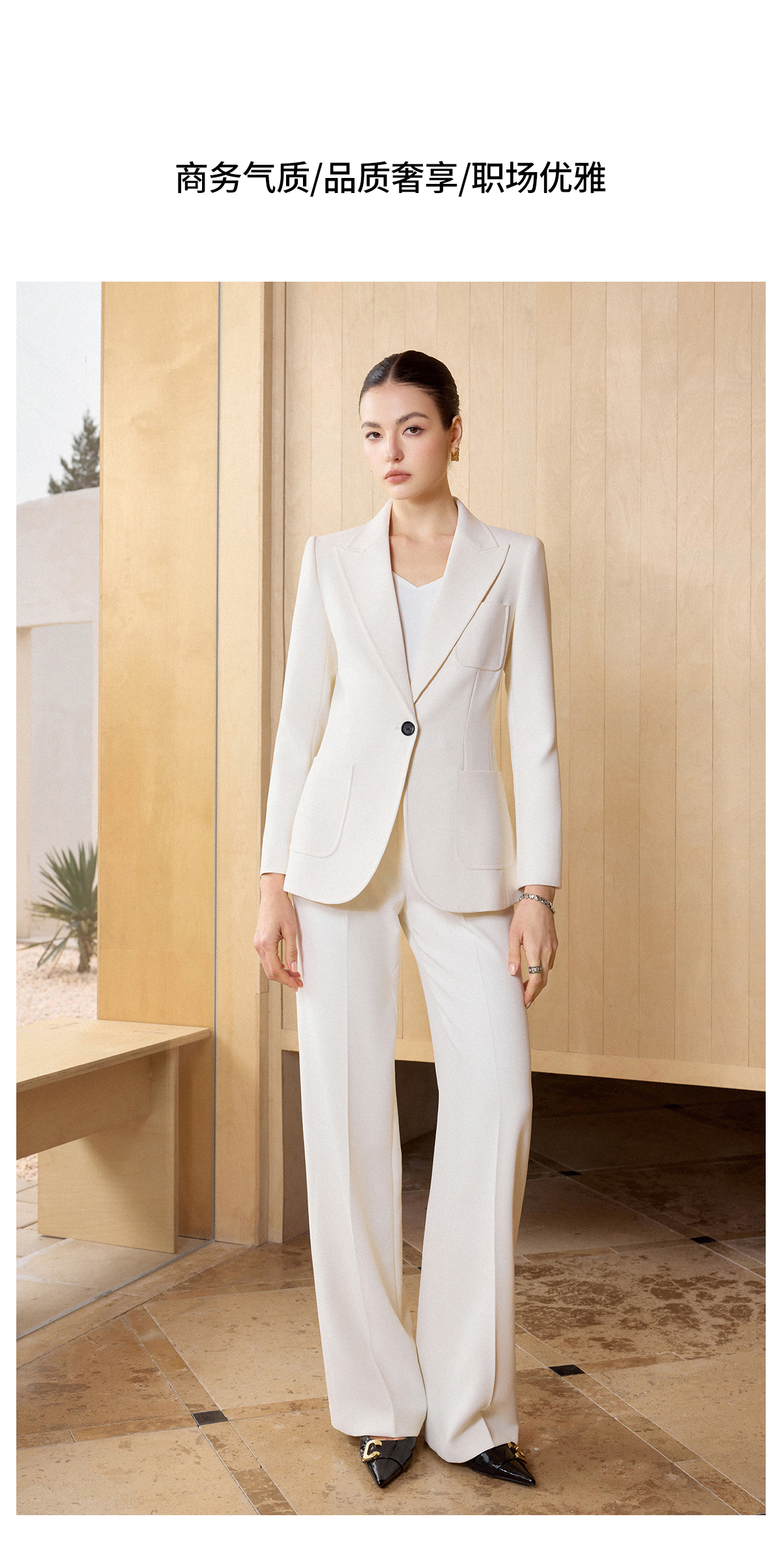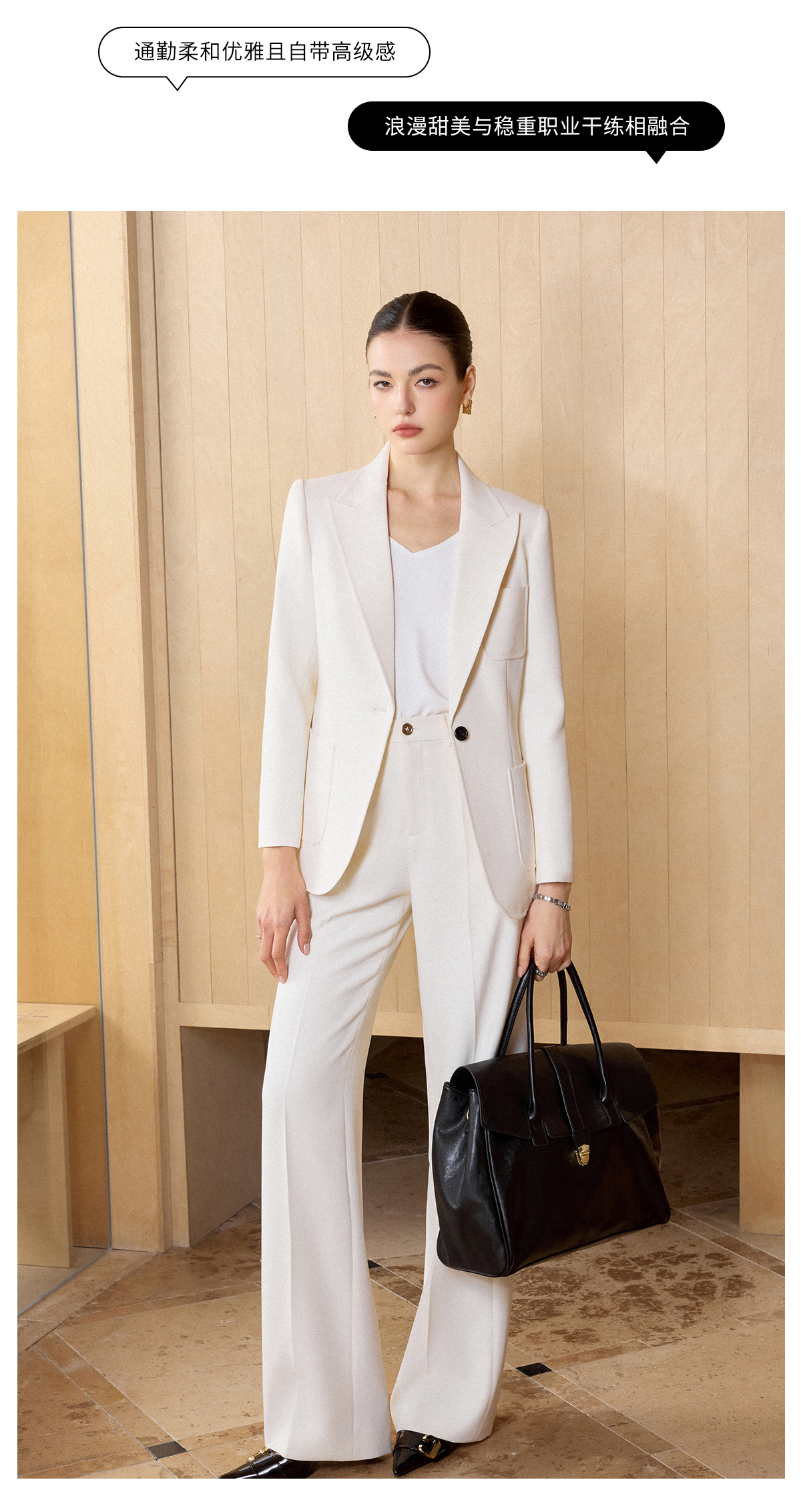 IWY/米白色极简风西装外套女春季新款职业装气质微喇裤两件套CP2728