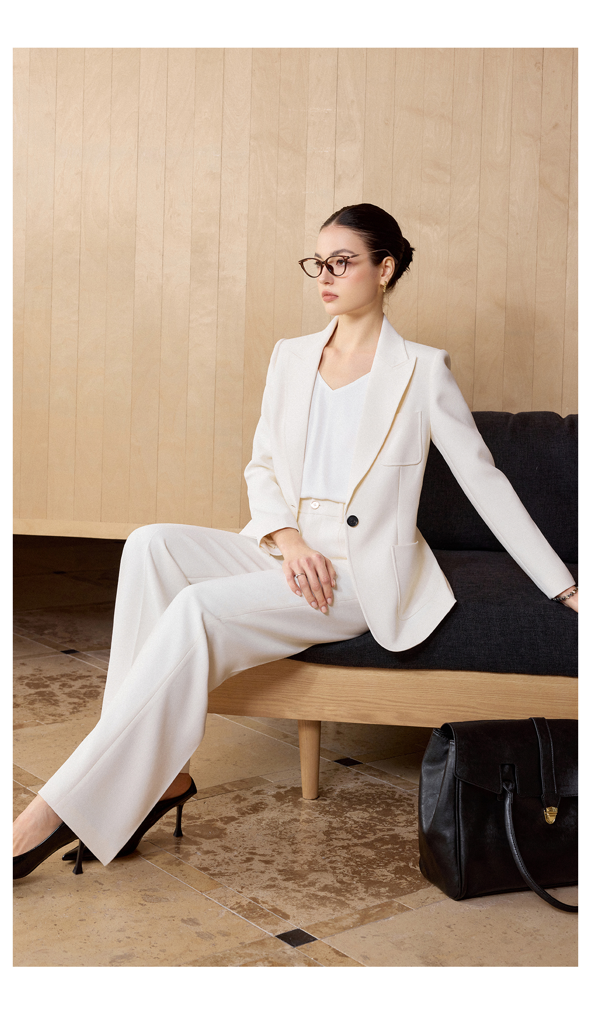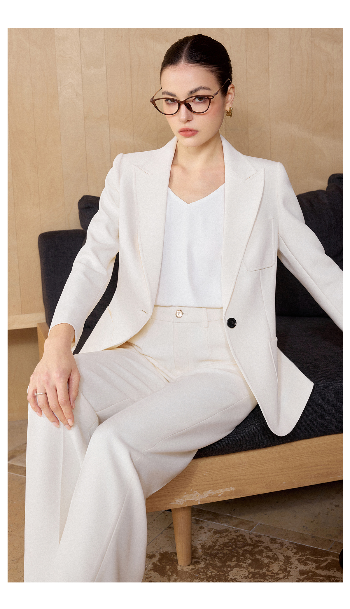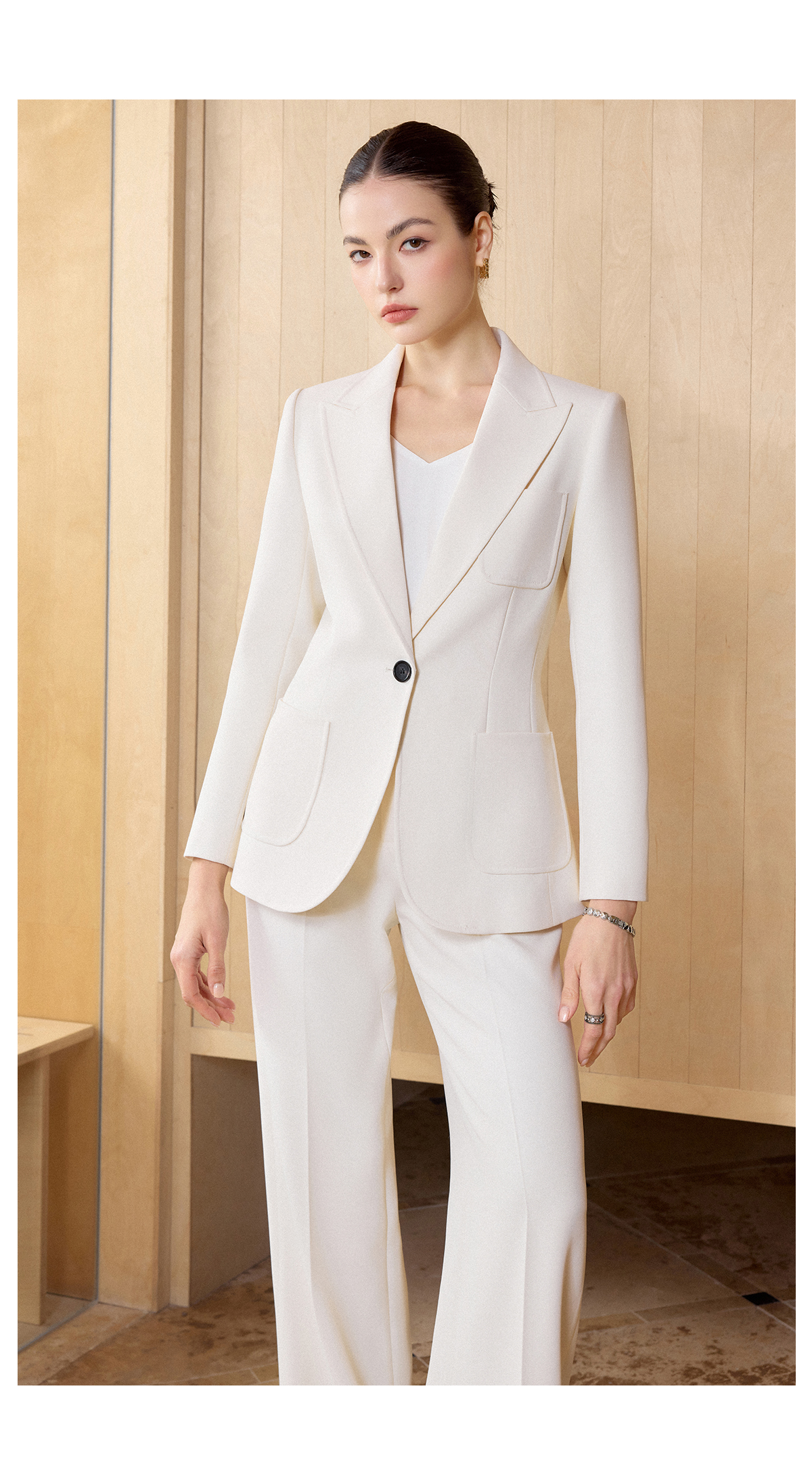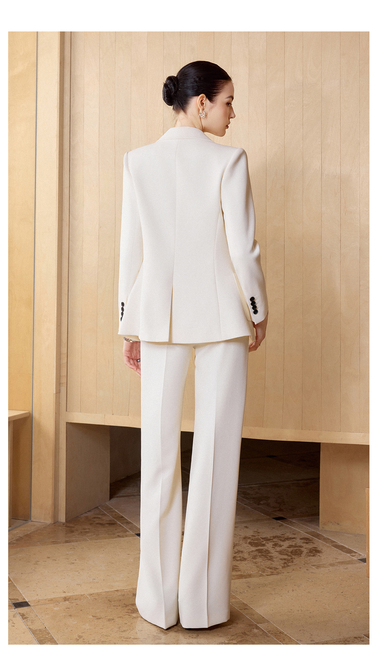 IWY/米白色极简风西装外套女春季新款职业装气质微喇裤两件套CP2728