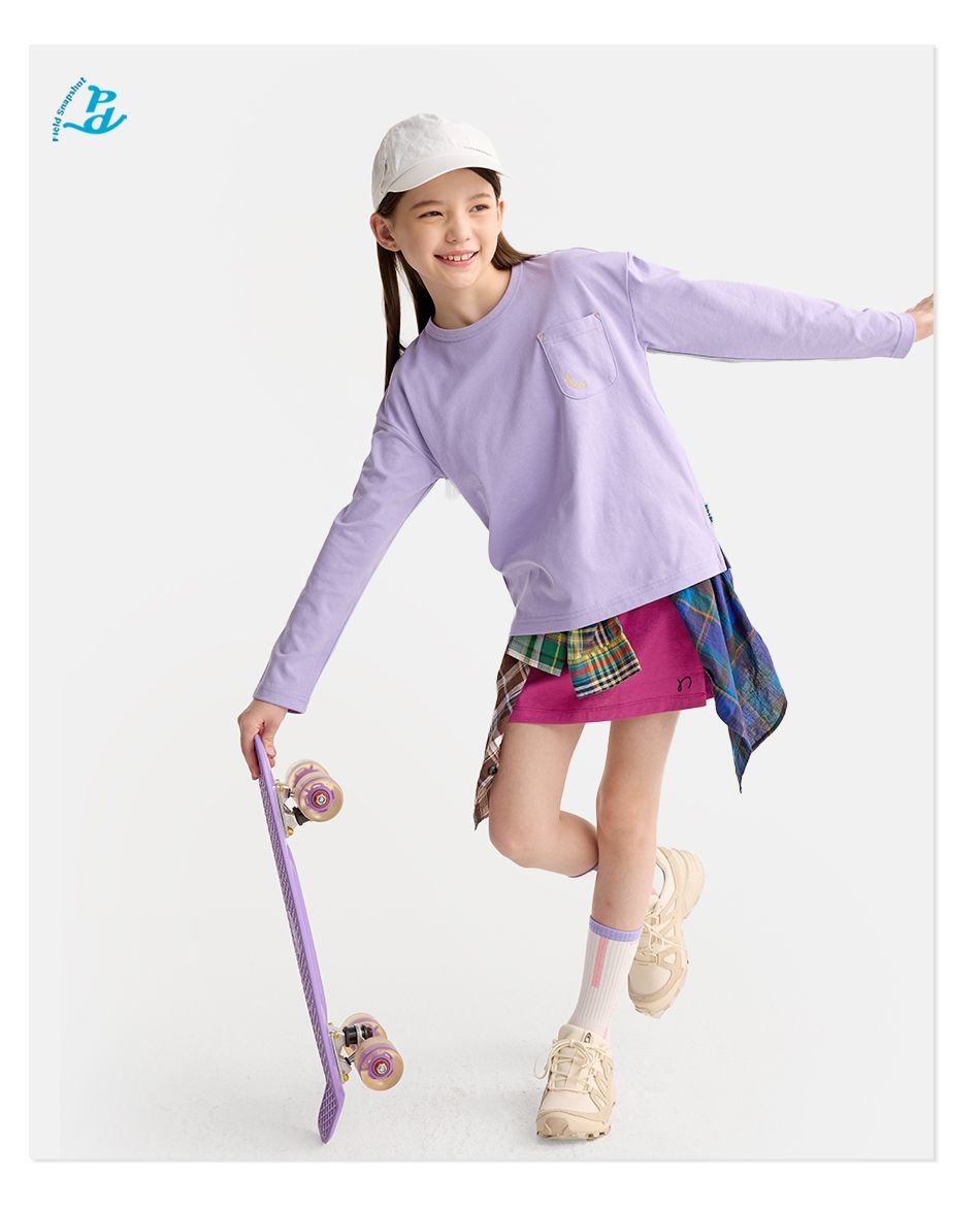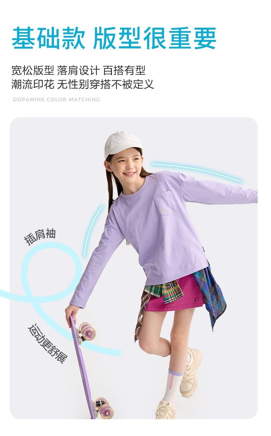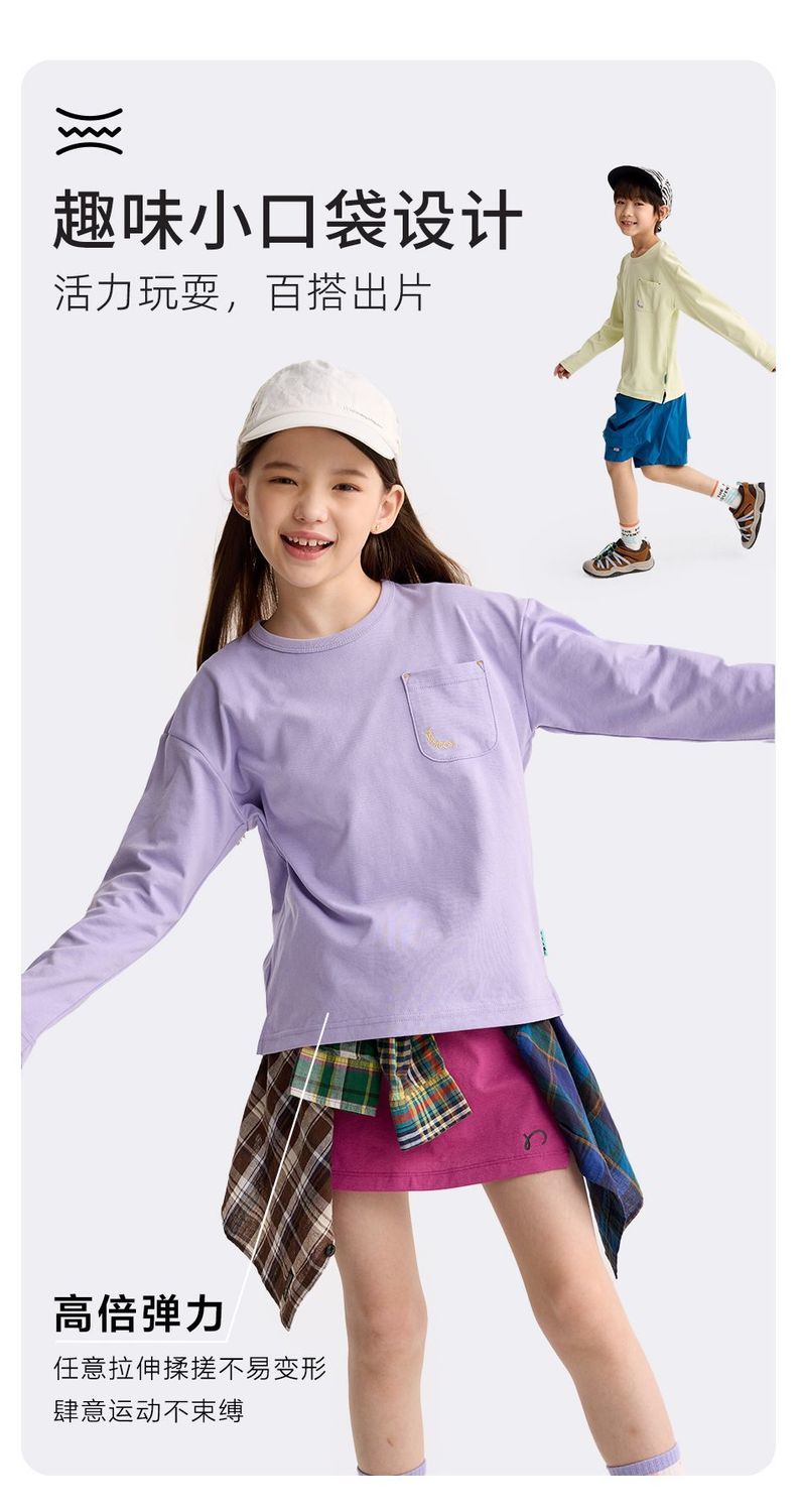 咕噜日记儿童小口袋休闲T恤春季新款女童棉t男童透气防晒打底长袖