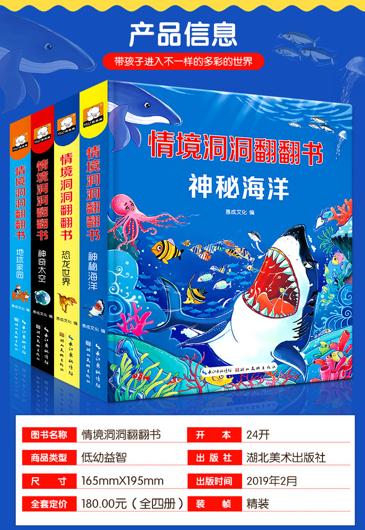情境洞洞翻翻书(全4册) 儿童3d立体科普 地球家园+神奇太空+恐龙世界+神秘海洋