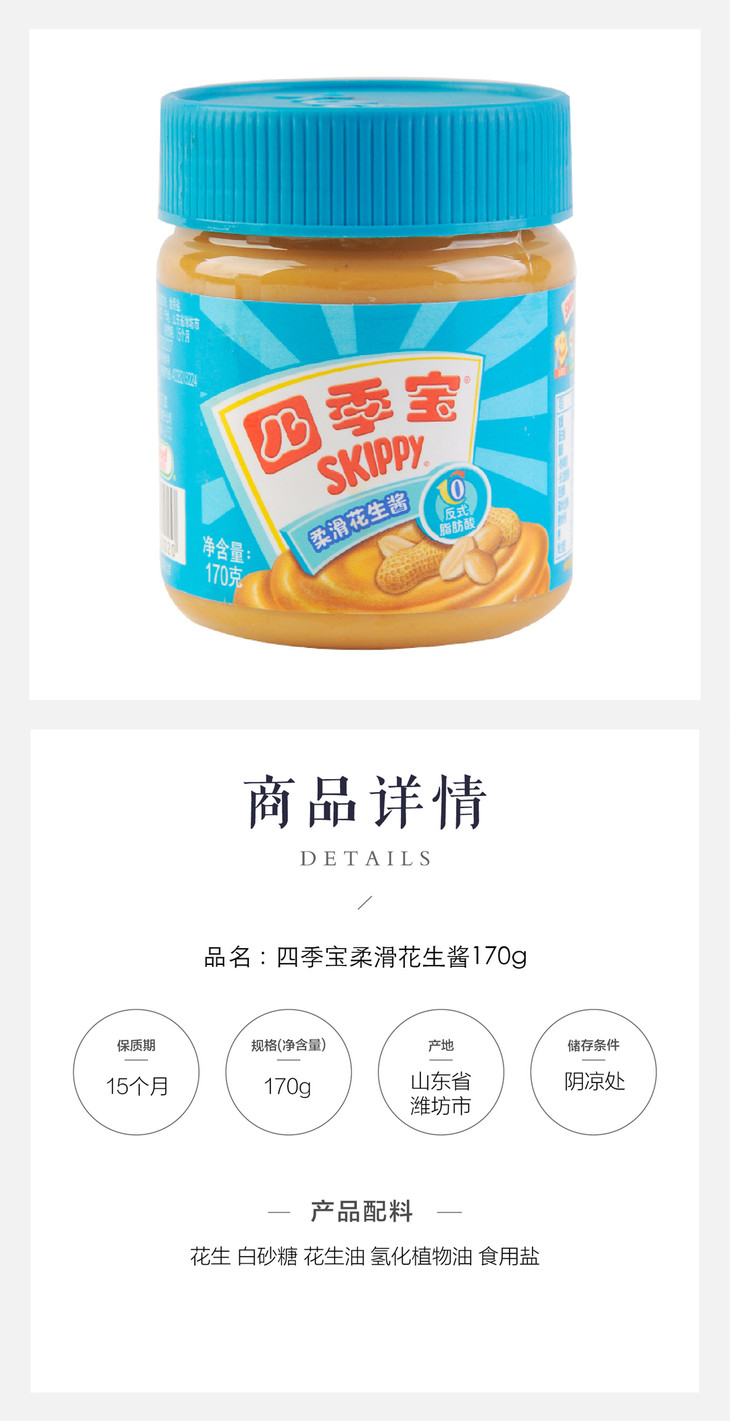 荷美尔四季宝 0反式脂肪酸柔滑花生酱 170g/罐