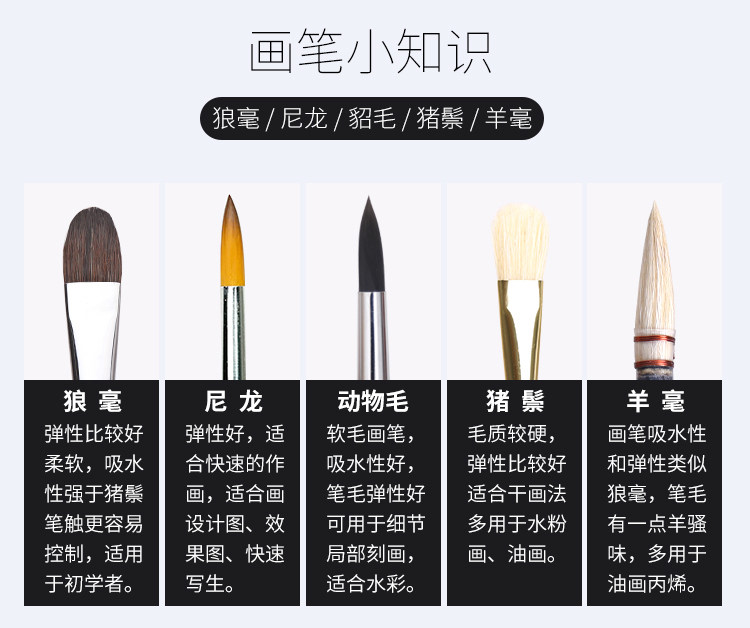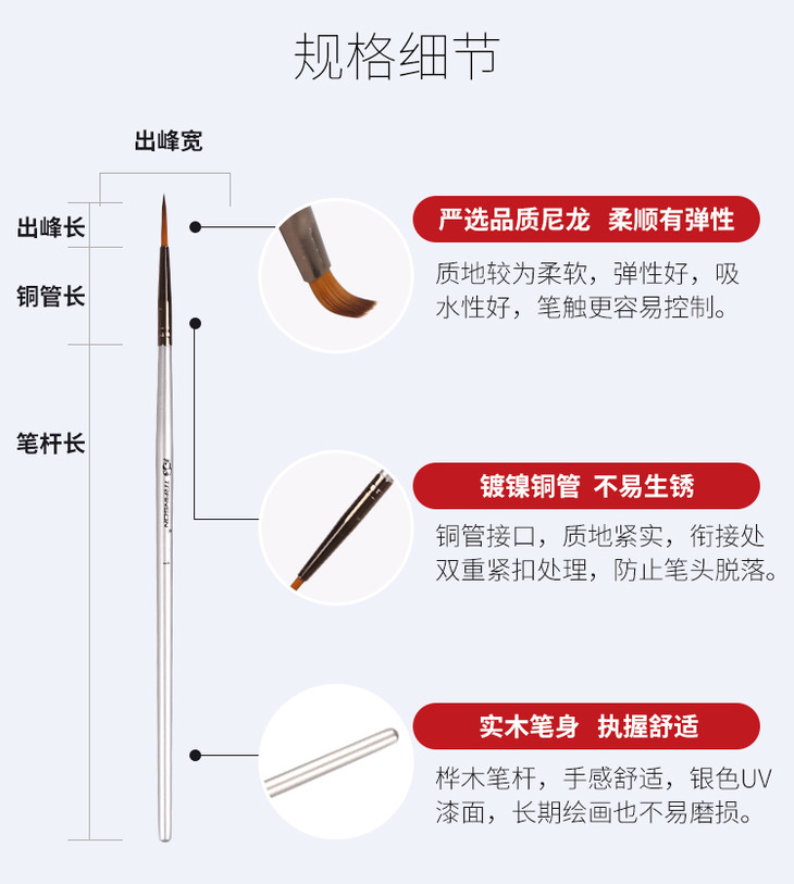 中盛银色短杆尼龙水彩水粉勾线笔数字油画勾边笔手绘描笔12支套装