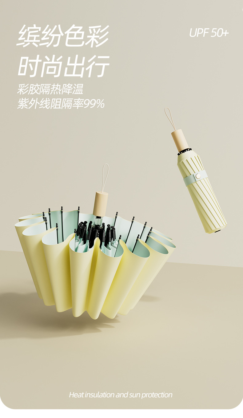 彩胶隔热降温遮阳防晒伞 高倍防紫外线太阳伞折叠晴雨伞