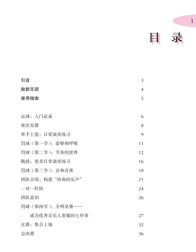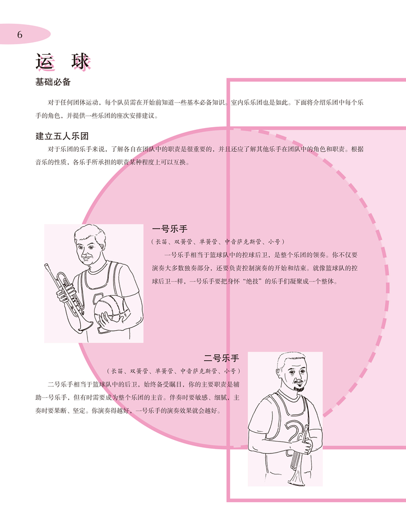 《管乐篮球队——零起步室内乐演奏速成》系列是上海音乐出版社从维也纳环球出版社引进的一套管乐队训练教程,包括《管乐篮球队·C调乐器(高音谱)》《管乐篮球队·降B调乐器》《管乐篮球对·降E调乐器》《管乐篮球队·F调乐器》和《管乐篮球队·C调乐器(低音谱)》五册。作者将五个声部灵活搭配,用轻松有趣的形式,把乐队演奏与篮球运动相类比,启发读者通过篮球运动员之间的分工和配合来体会、领悟室内乐乐手之间的合作。教程从篮球队这一比喻出发,将乐手看作是篮球场上的队员,各种乐理知识和演奏技法则相当于篮球运动中的各种技术、技巧动作,从“运球”“单手上篮”“罚球”“跳投”到最后的“全明星赛”和“总决赛”,循序渐进地向室内乐初学者讲解管乐合奏的基础知识和技巧。除此之外,书中大量练习曲目和合奏乐曲都配有示范音频(可扫描二维码聆听),无论单个演奏者还是乐团,都能通过对比自身演奏和录音示范来磨练技巧、获得进步。