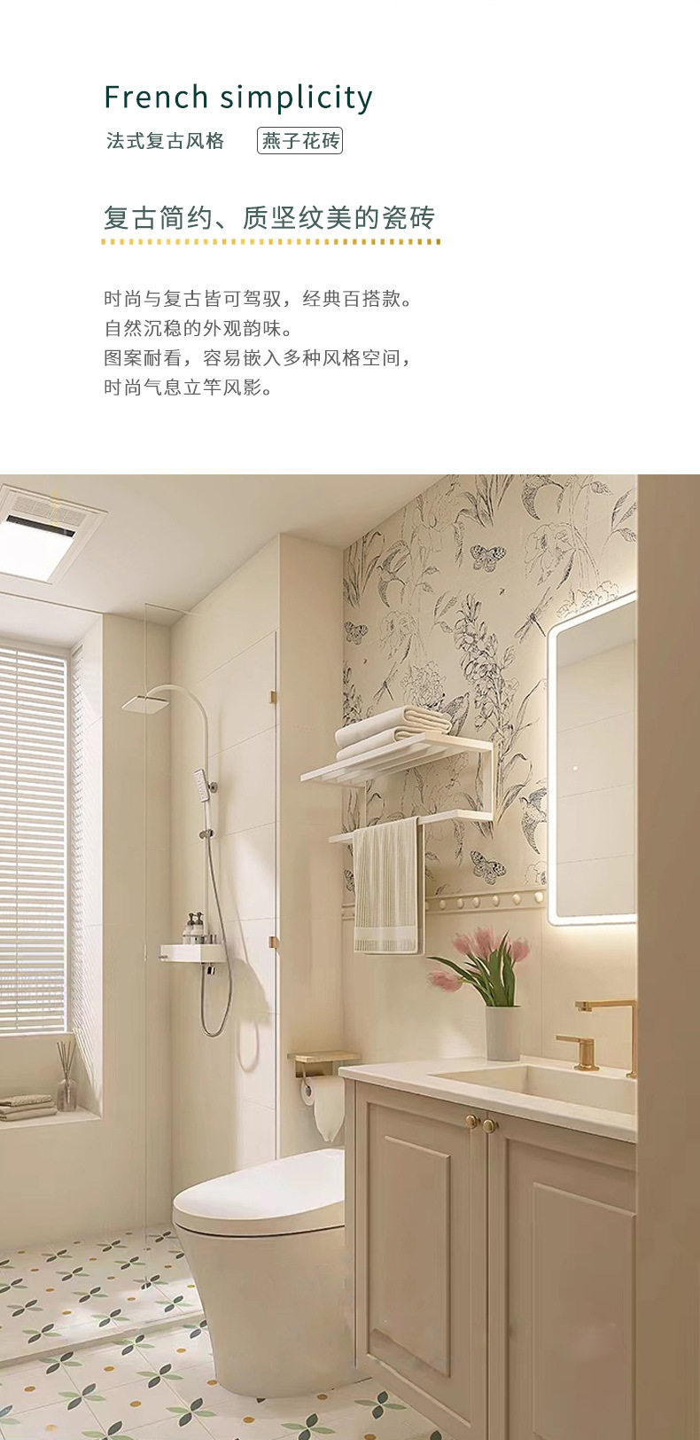 厕所浴室法式瓷砖微复古地砖300x800燕子奶油墙砖洗手间水泥花砖 商品图4