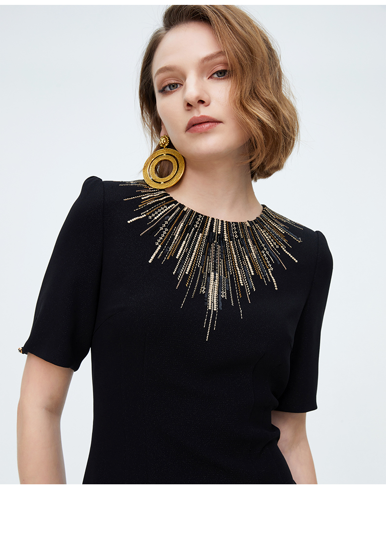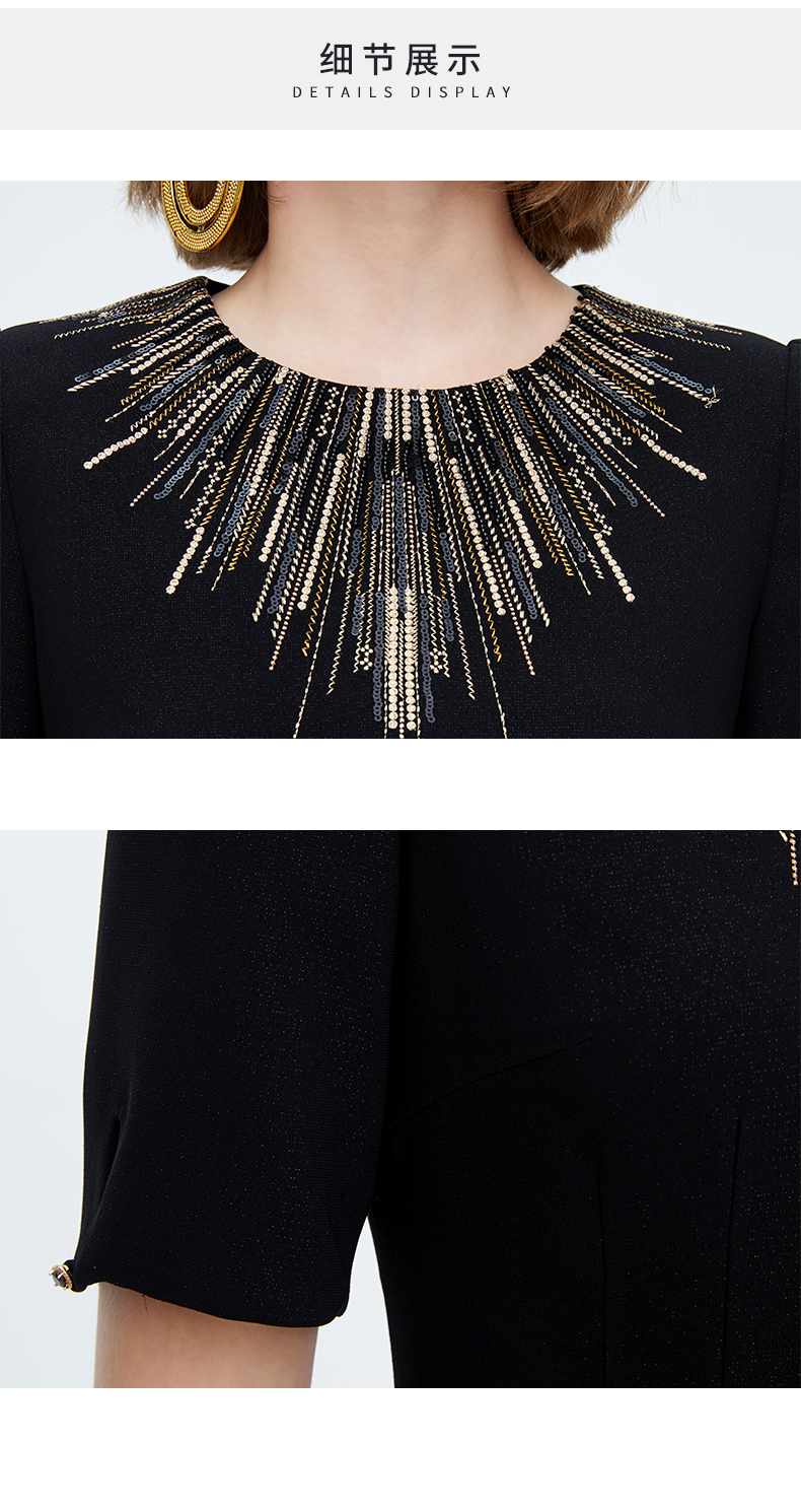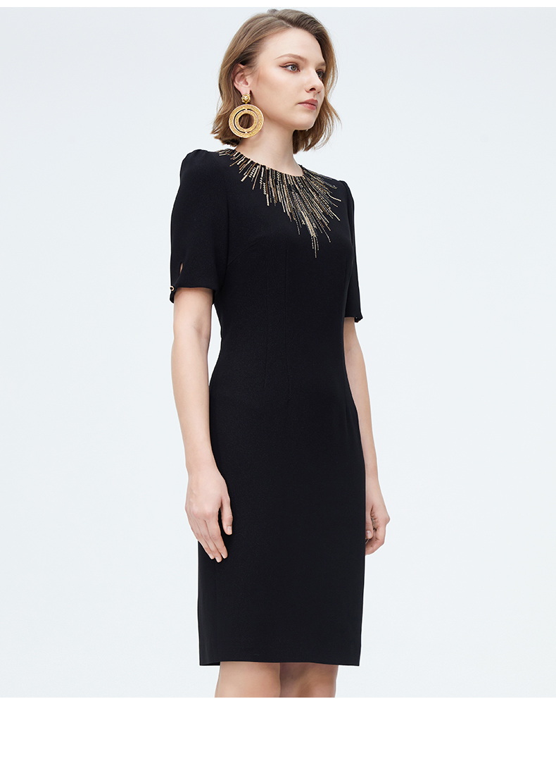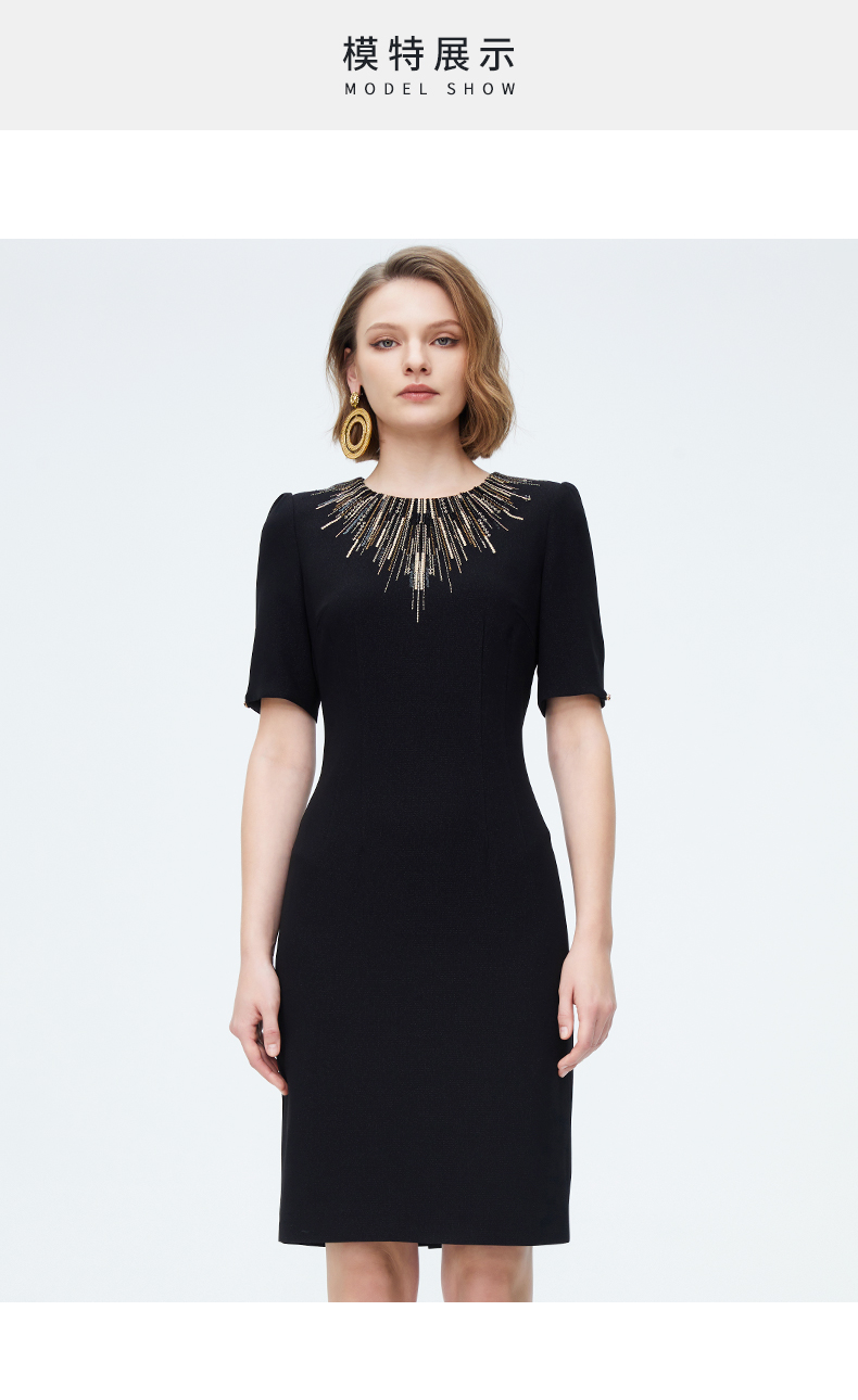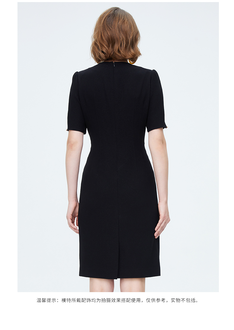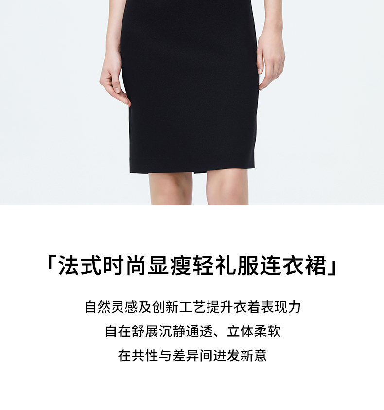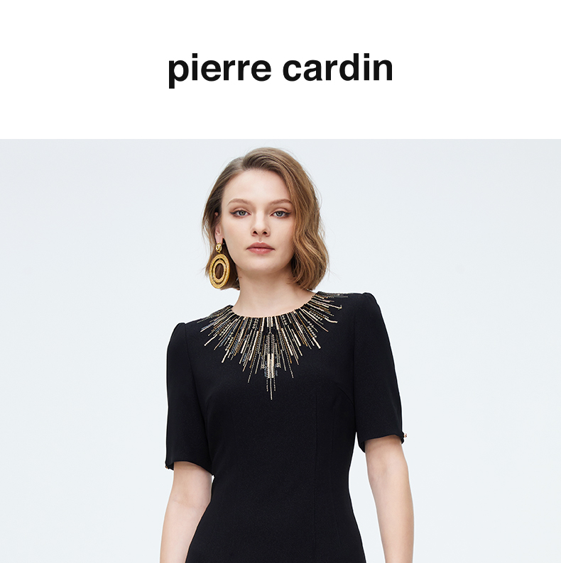 皮尔卡丹女装夏季时尚轻奢收腰礼服小黑裙P4222D4102B0