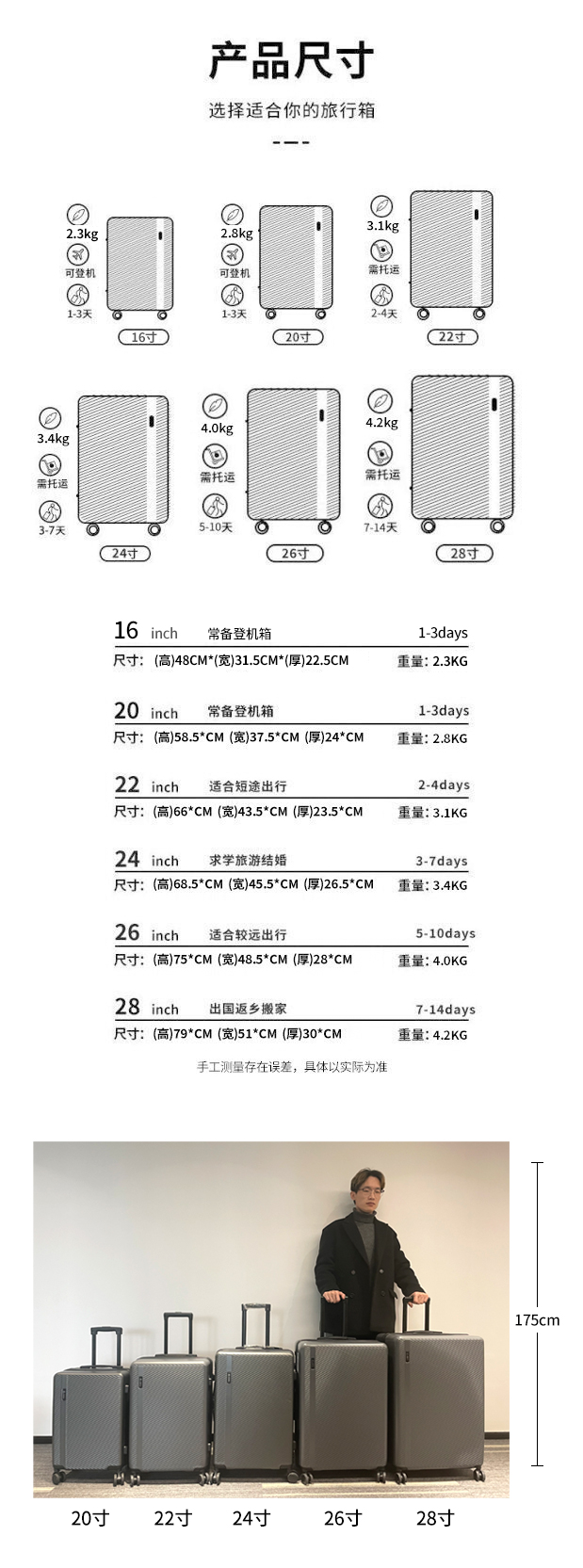 银座GINZATRAVEL耐磨防撞PP拉杆箱可扩展大容量拉链行李箱20寸24寸28寸万向轮结婚箱P-7012