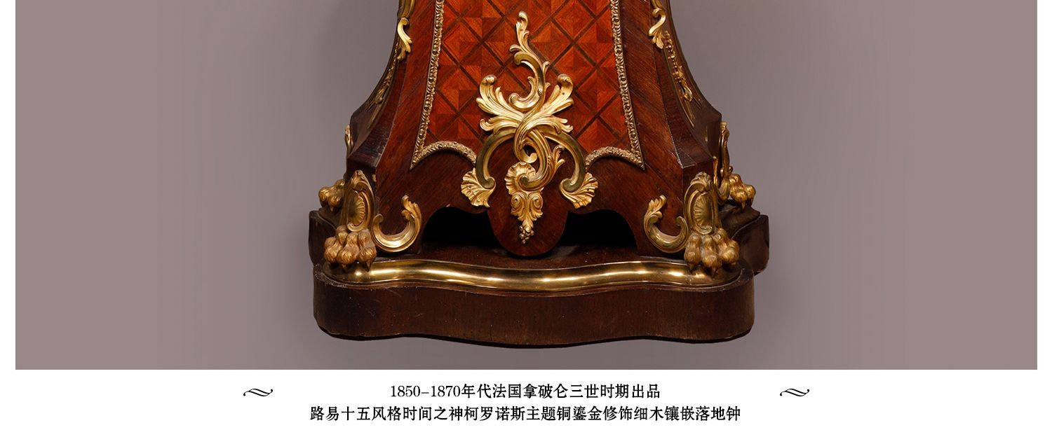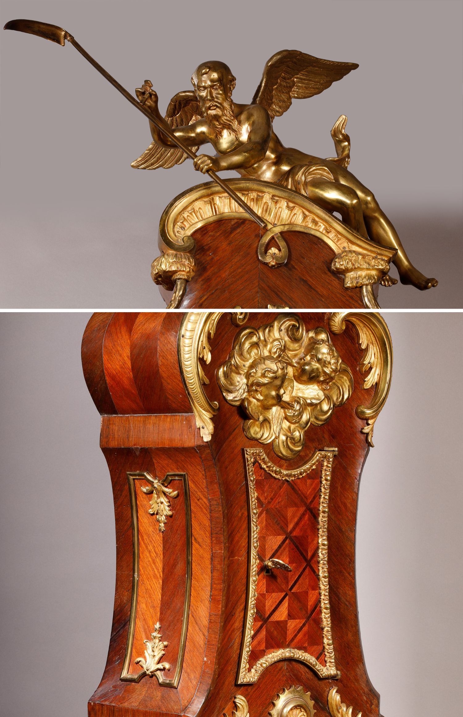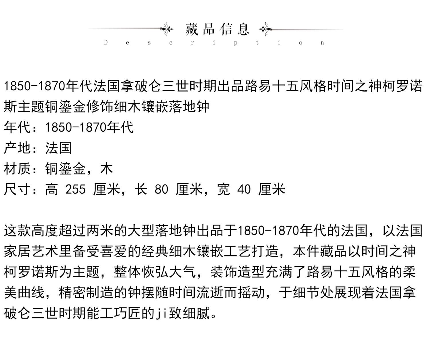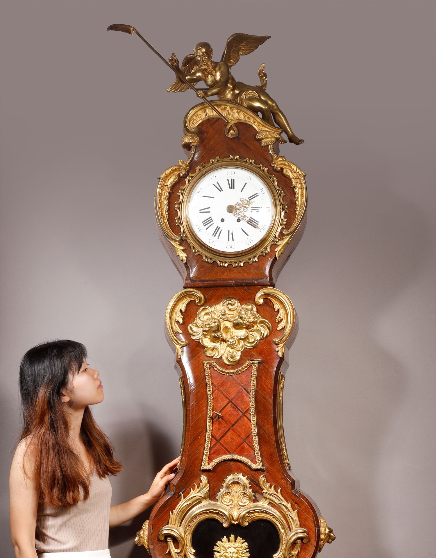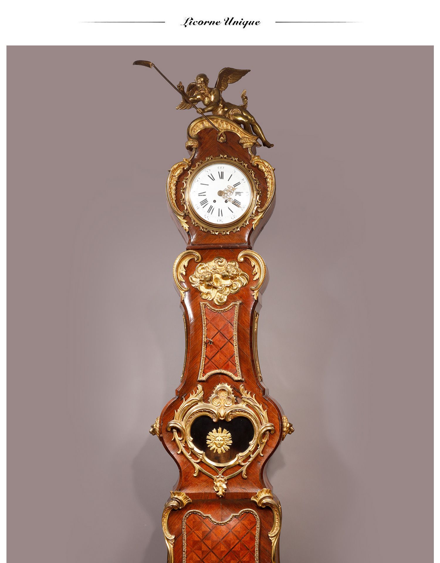 独角鹿西洋古董路易十五风时间之神柯罗诺斯铜鎏金细木镶嵌落地钟