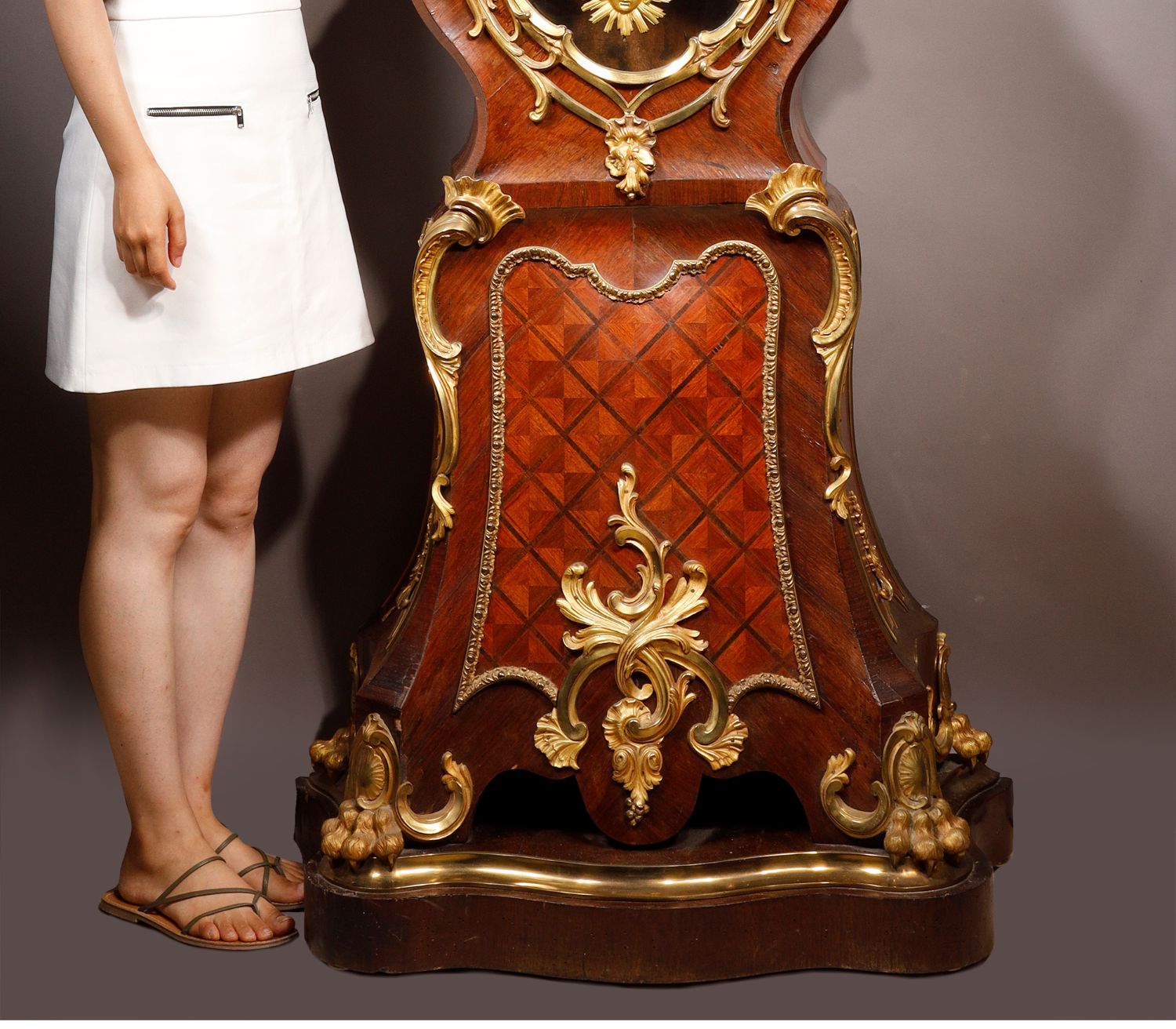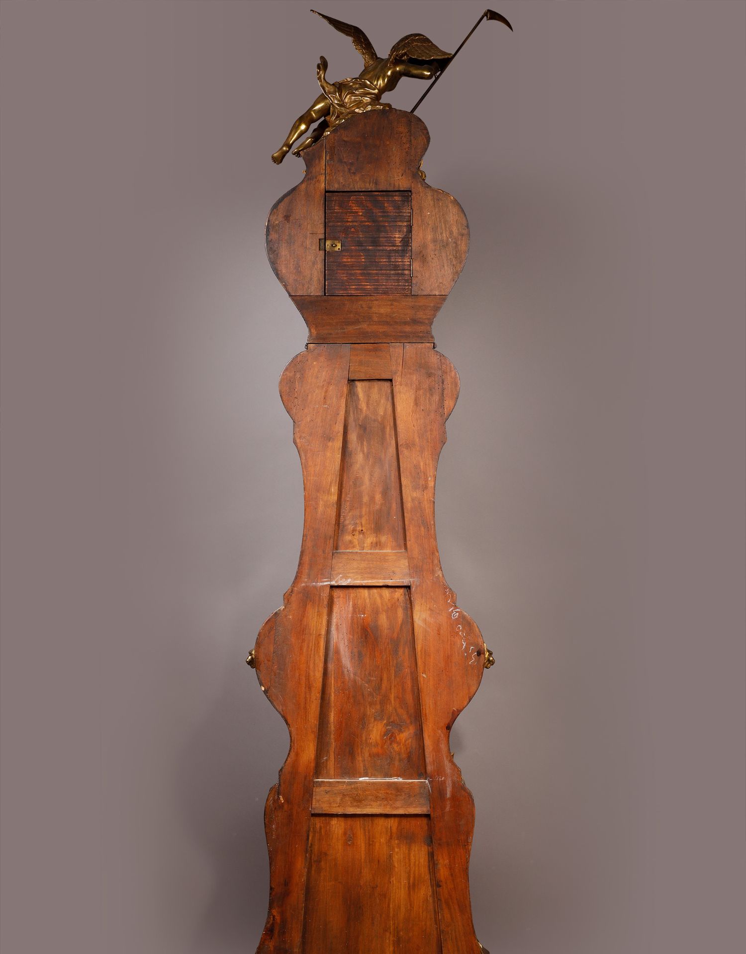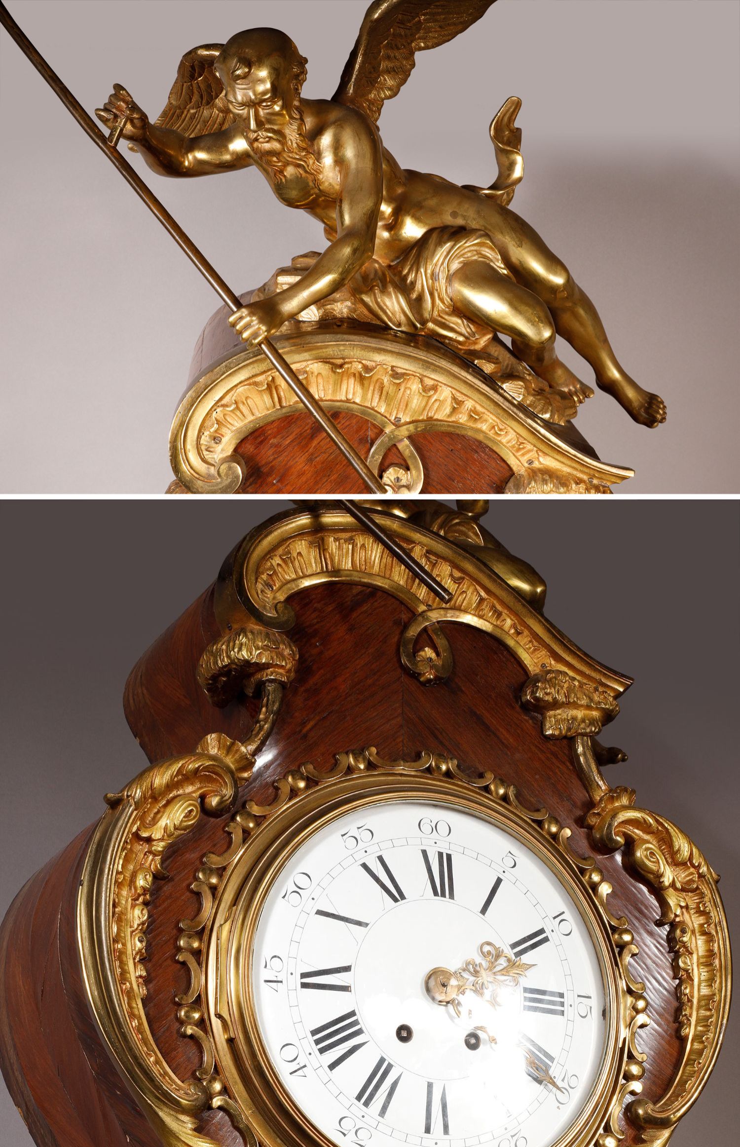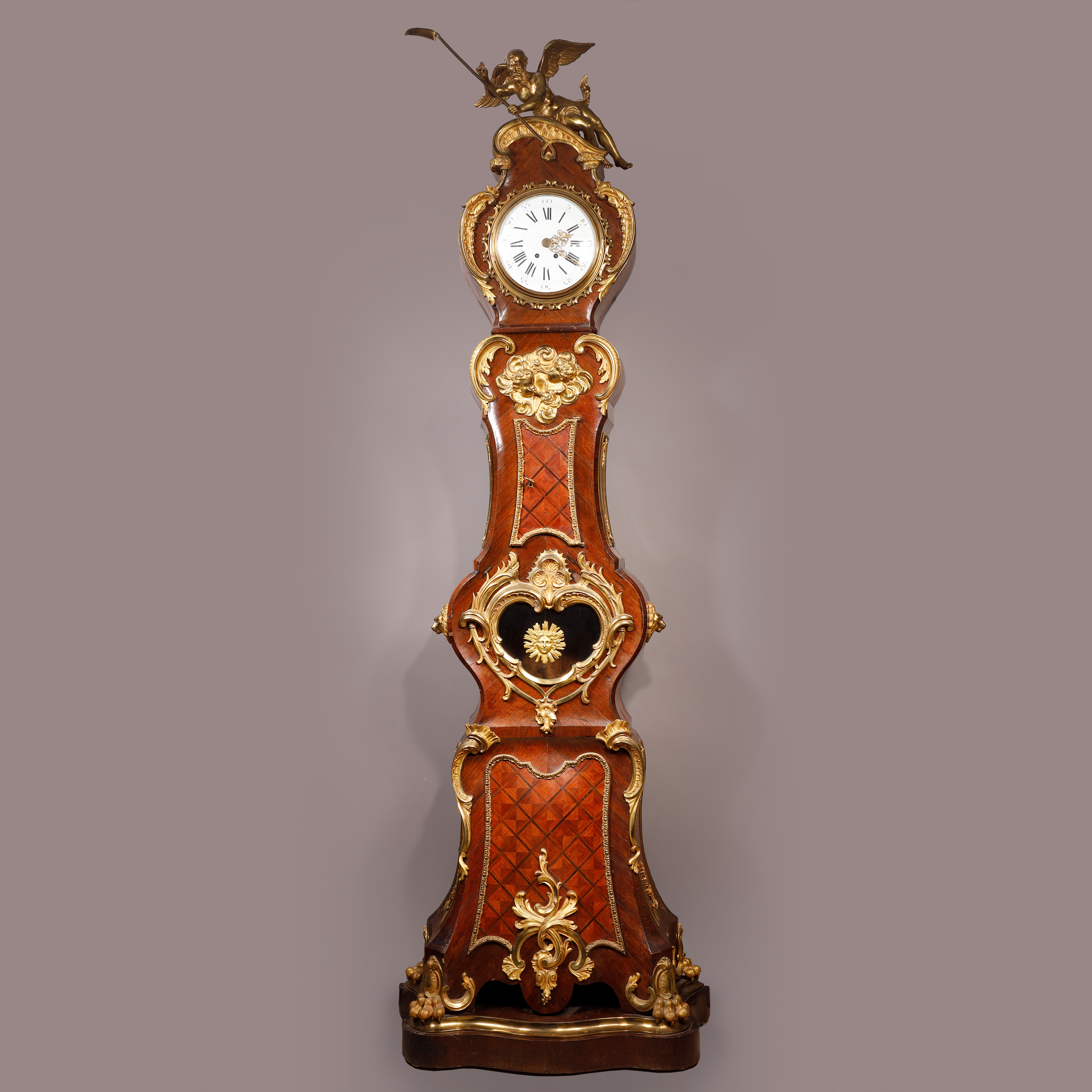 独角鹿西洋古董路易十五风时间之神柯罗诺斯铜鎏金细木镶嵌落地钟