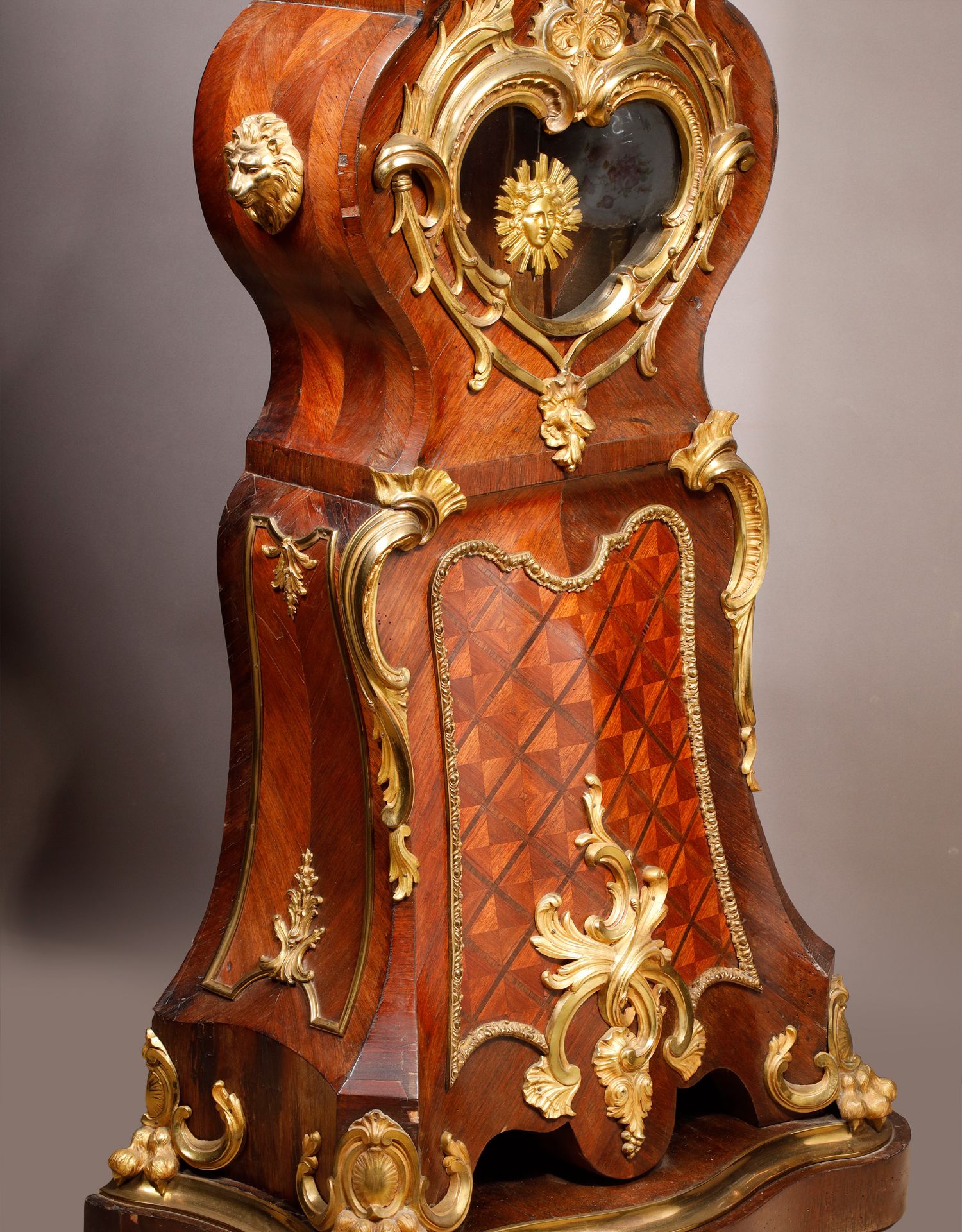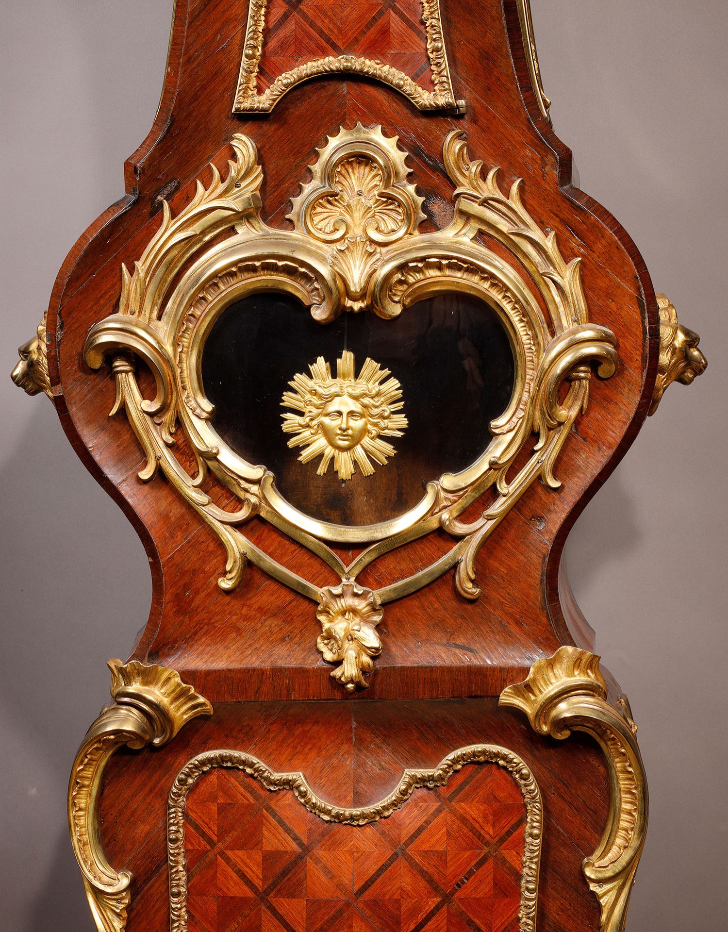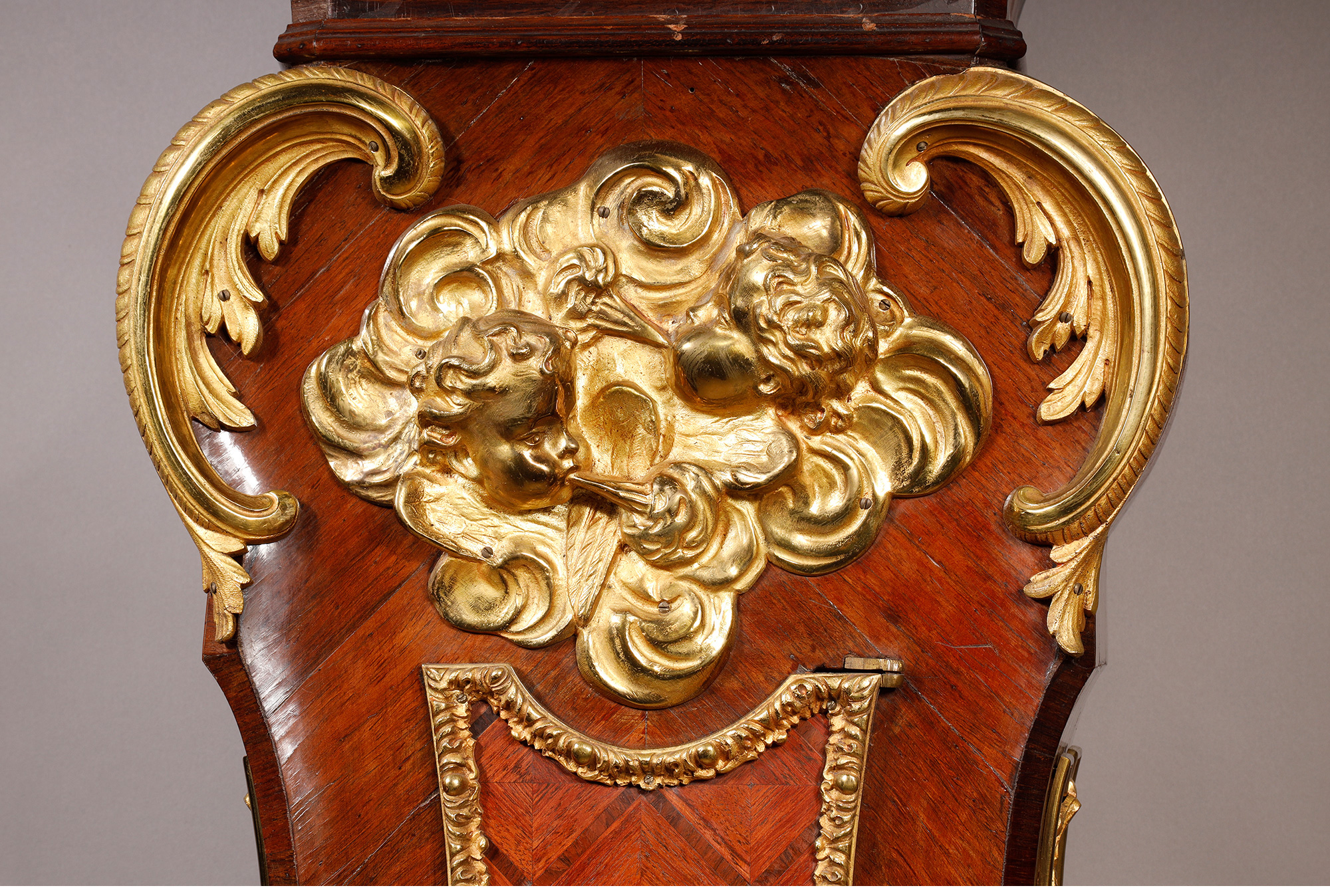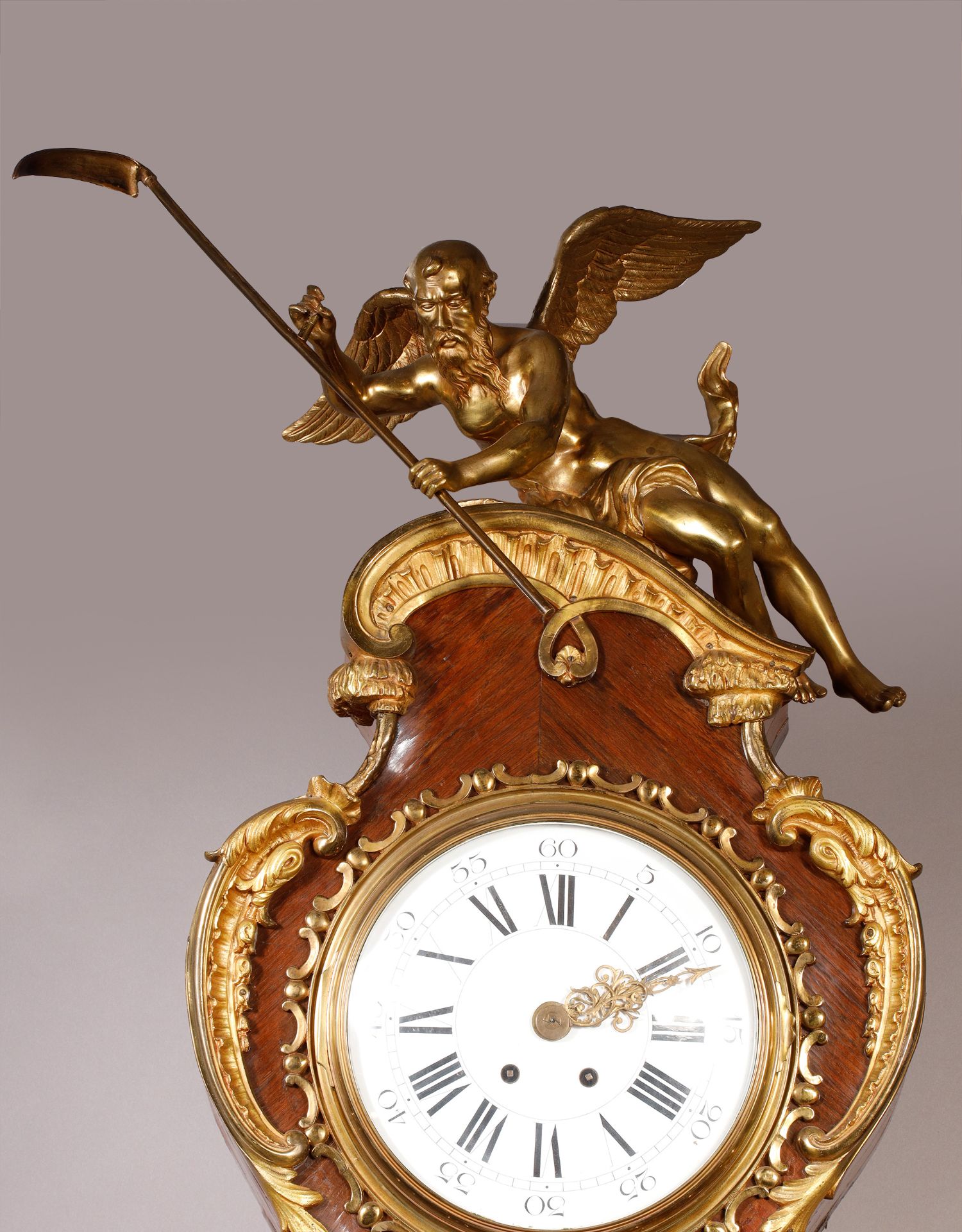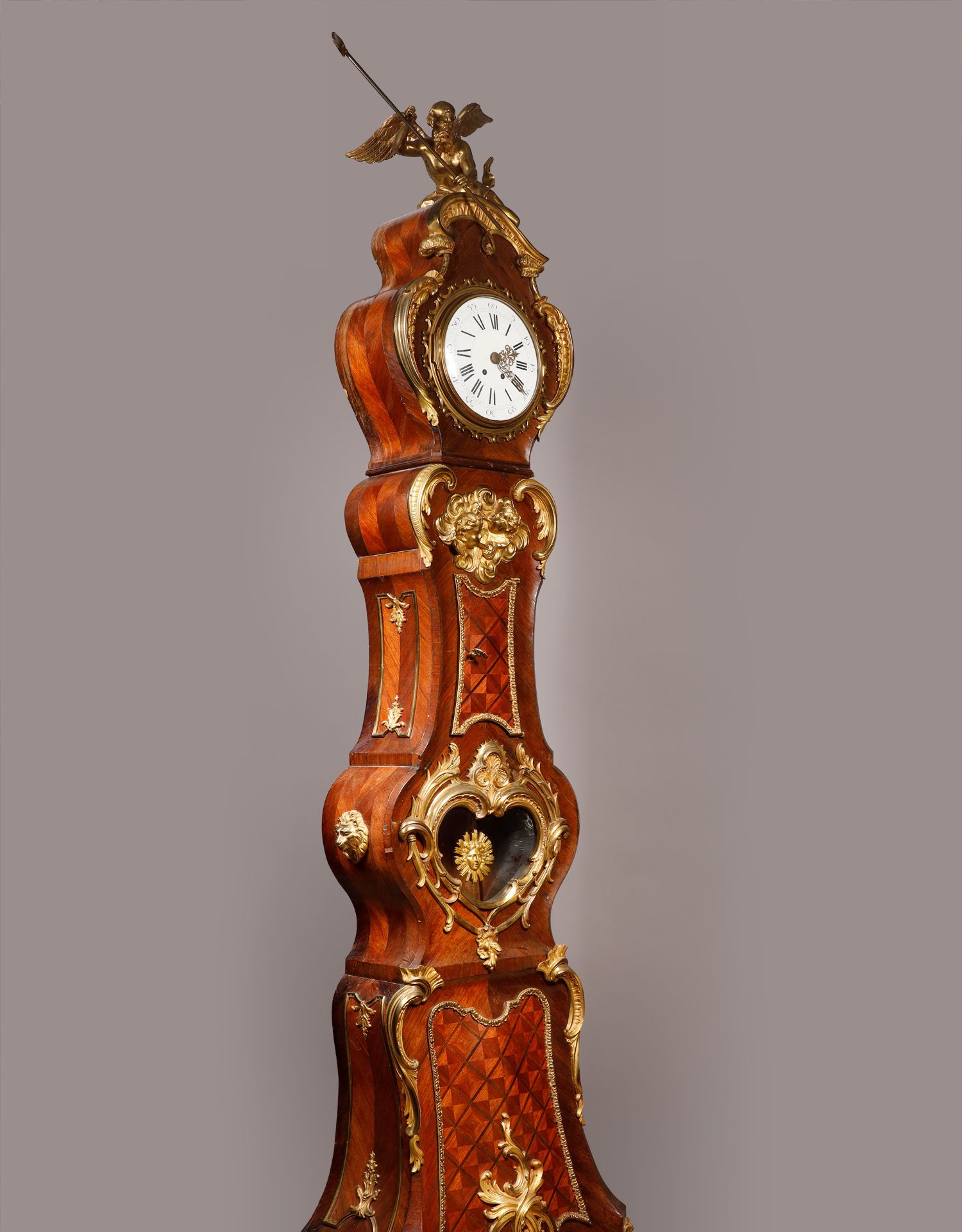 独角鹿西洋古董路易十五风时间之神柯罗诺斯铜鎏金细木镶嵌落地钟