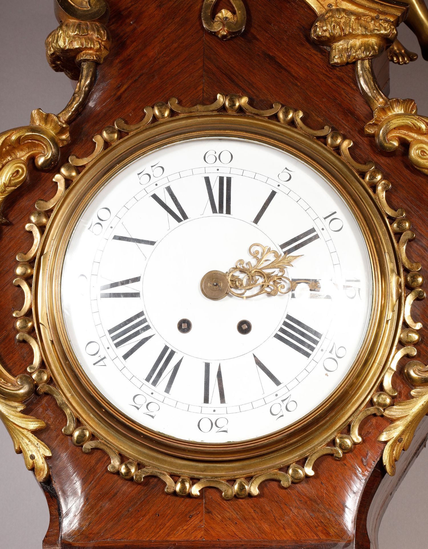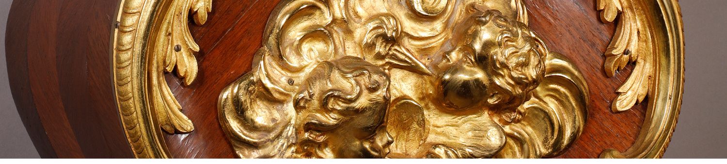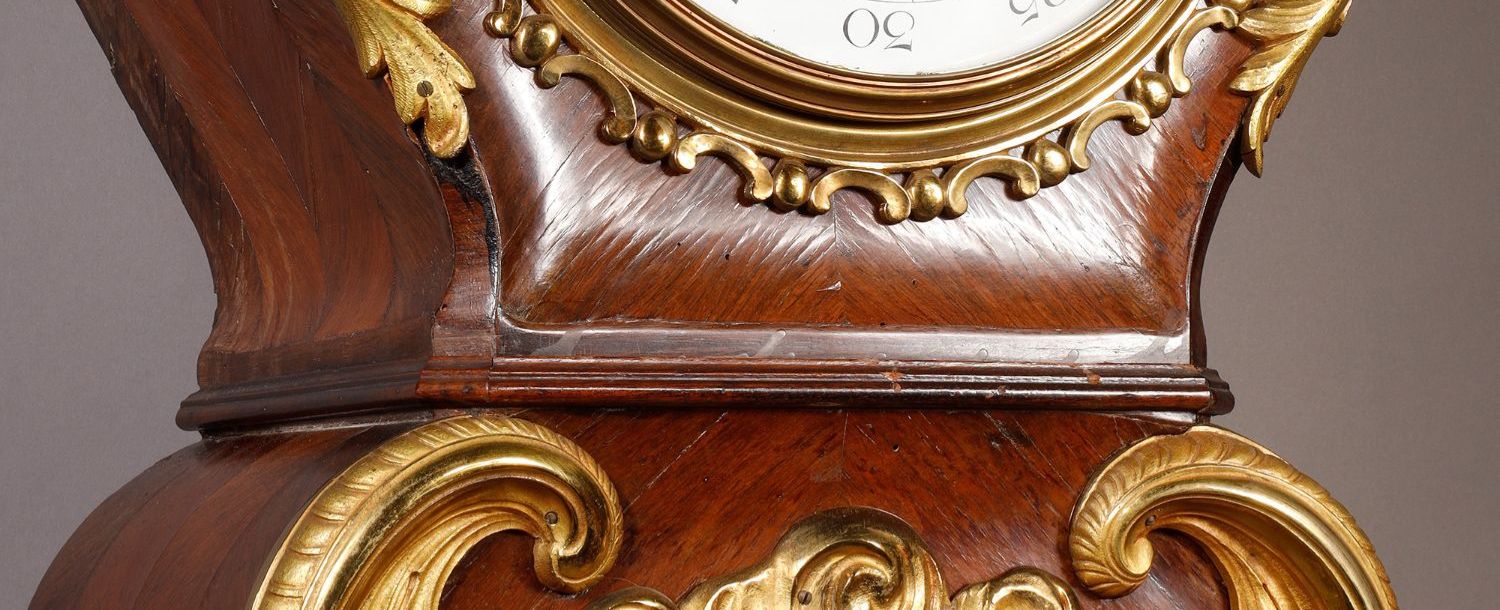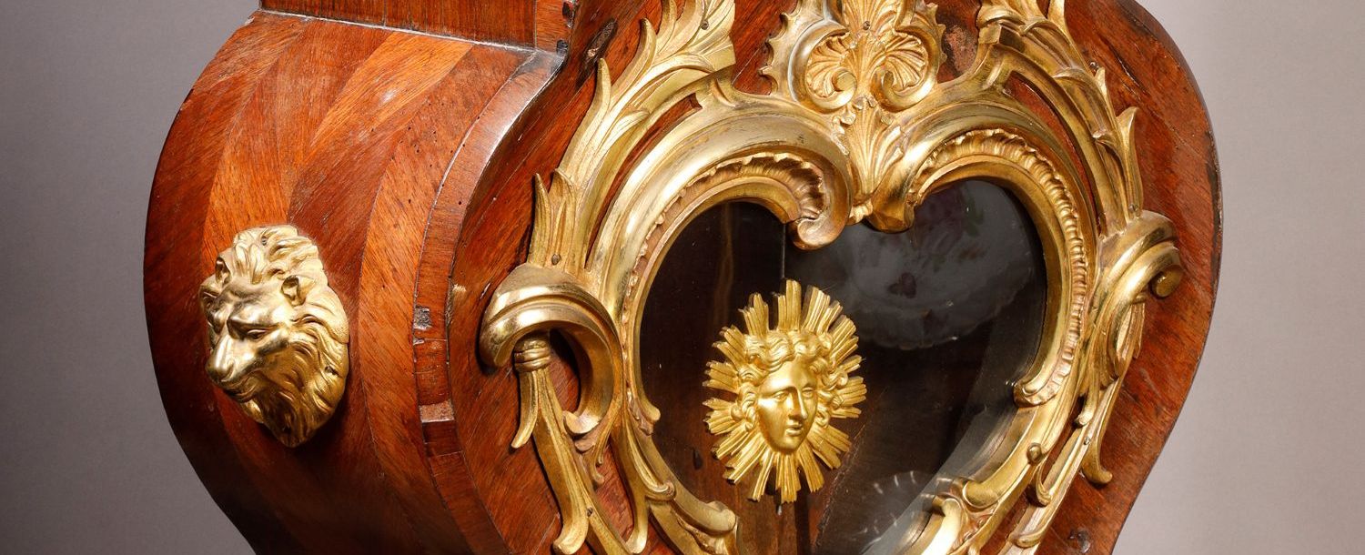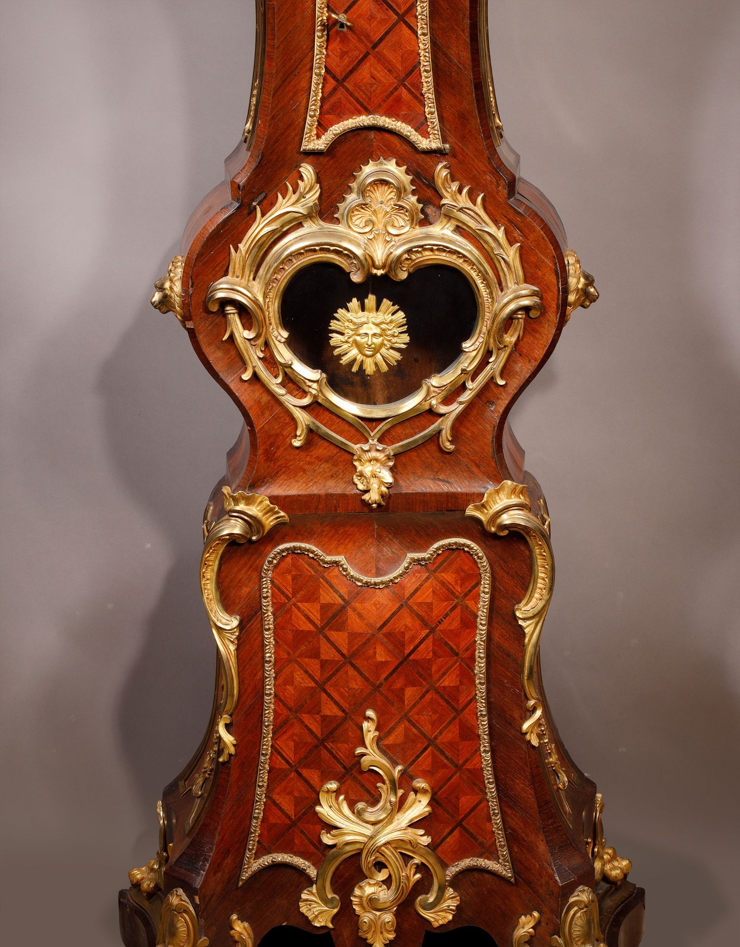 独角鹿西洋古董路易十五风时间之神柯罗诺斯铜鎏金细木镶嵌落地钟