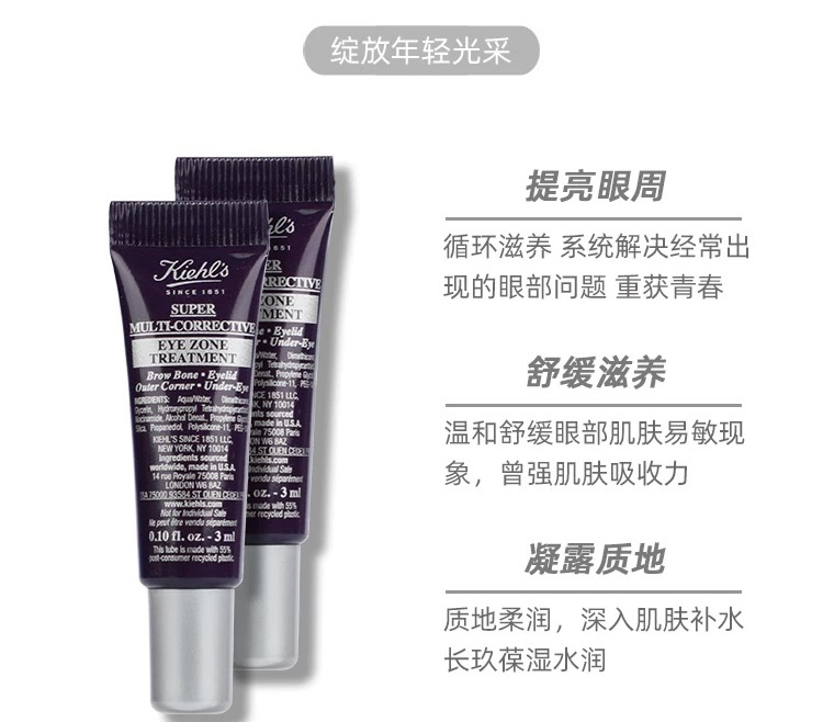 【专柜小样】美国 Kiehl's科颜氏 紫玻A紧致淡纹眼精华 眼霜 3ml