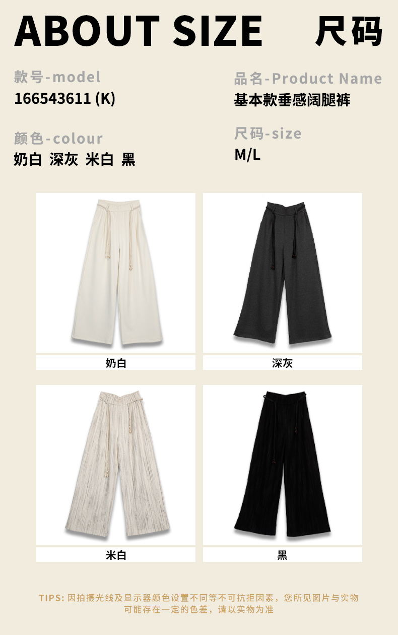 舒适宽松抽绳垂感阔腿裤纪念日百货门店同款166543611