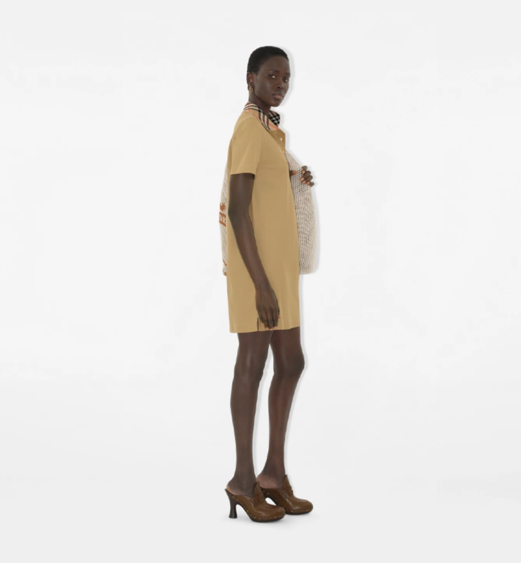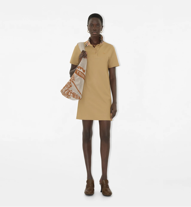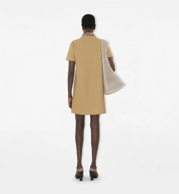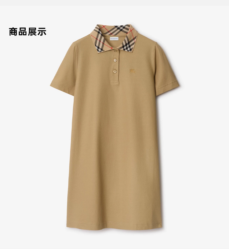 BURBERRY 巴宝莉 女士马术骑士徽标刺绣格纹领棉质Polo衫短袖连衣裙 驼色 8110342 B8626