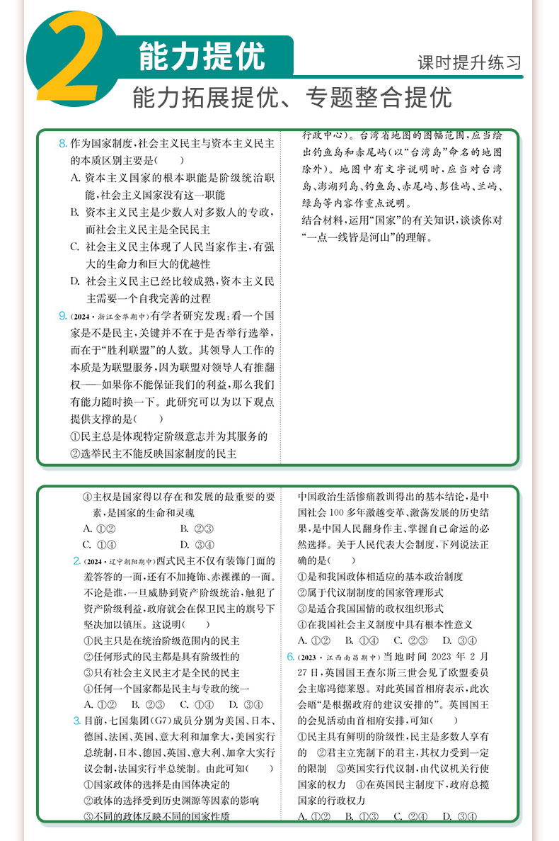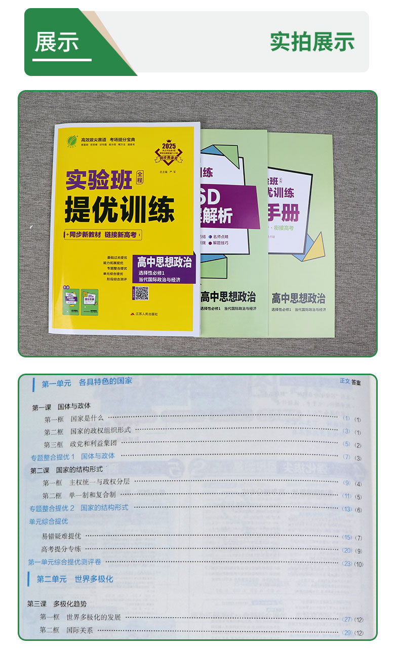 实验班全程提优训练 高中思想政治选择性必修(1)&当代国际政治与经济 人教版