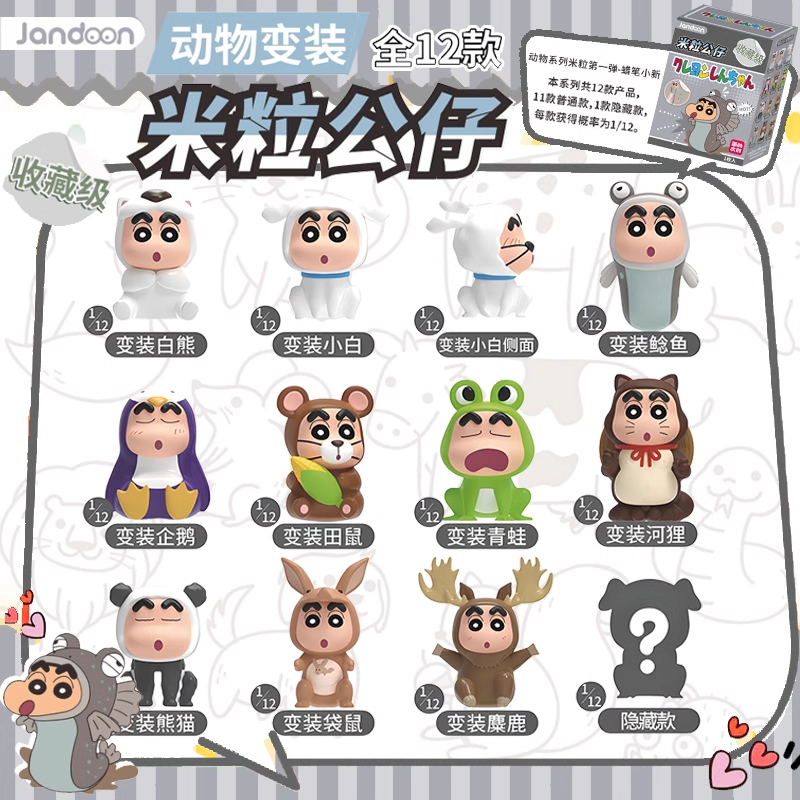 简动文创 蜡笔小新 动物变装系列 米粒公仔 12只/盒 盲盒