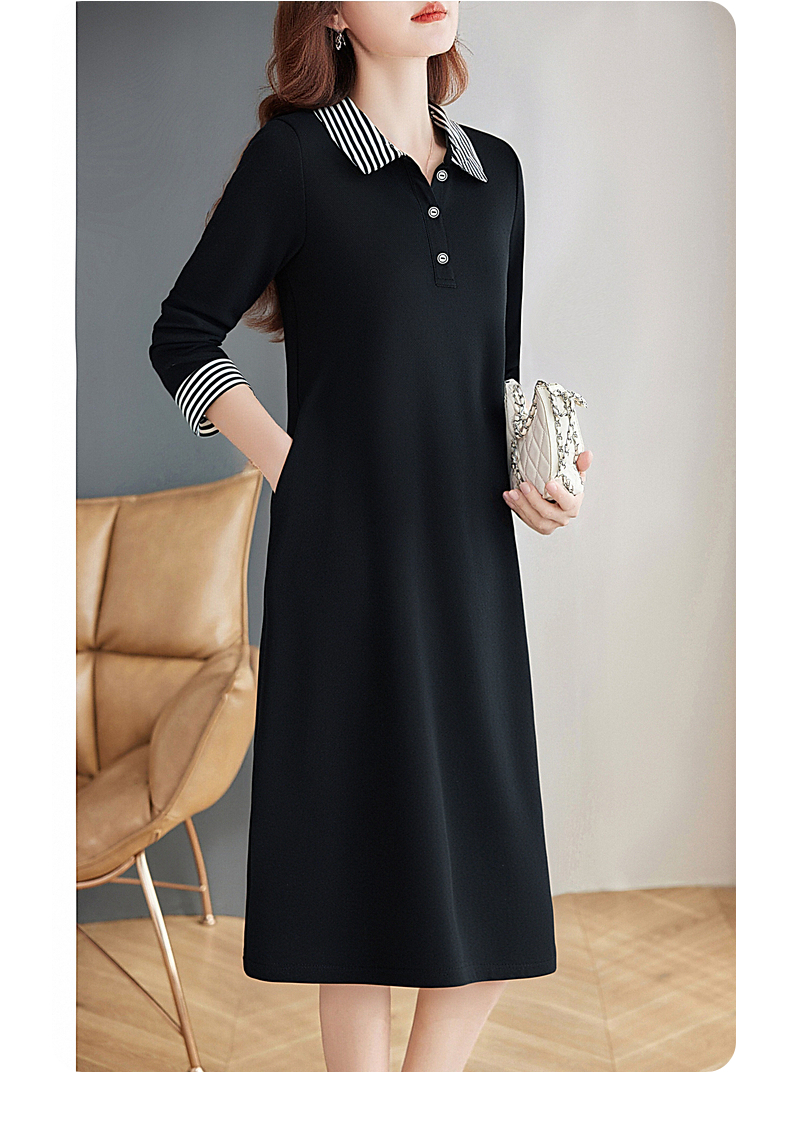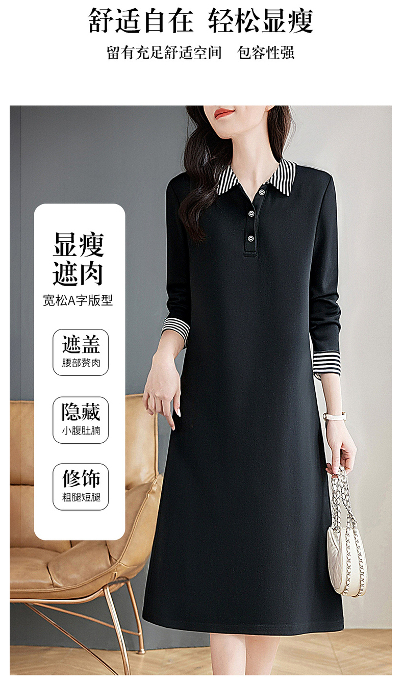 小个子黑色连衣裙女长袖2026春秋季新款大码胖mm高级大码翻领裙子