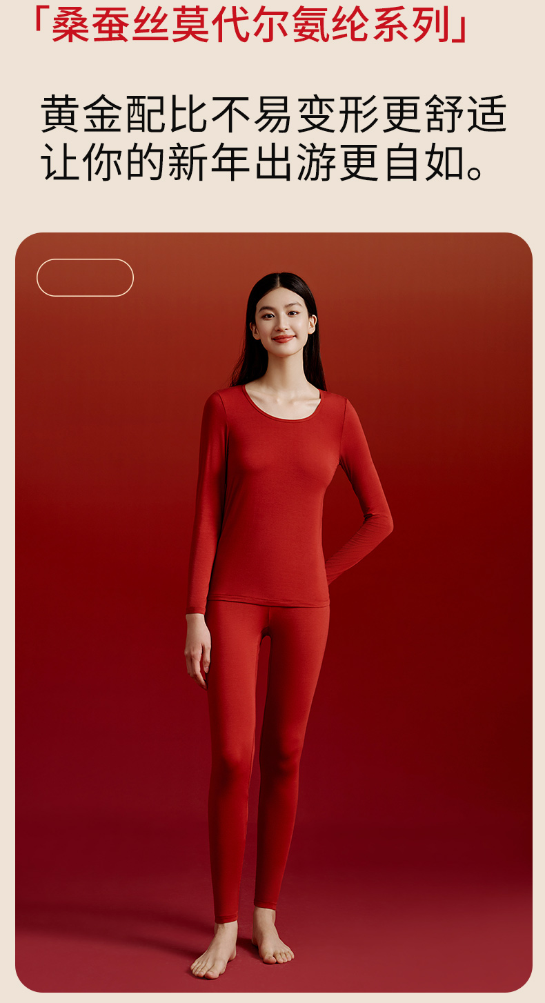 金三塔 女绢丝莫代尔氨纶内衣套新年本命年红色礼盒装