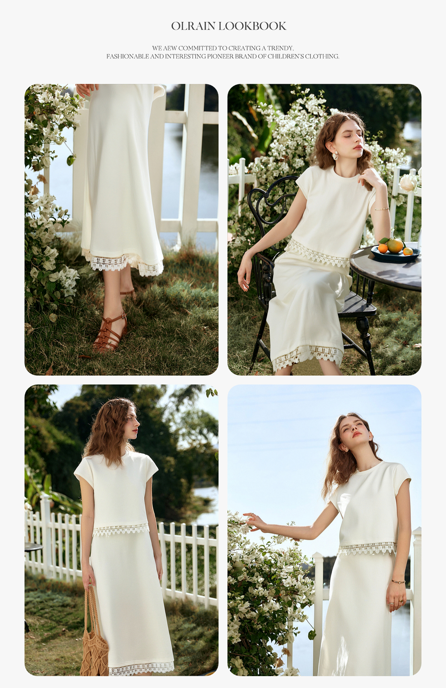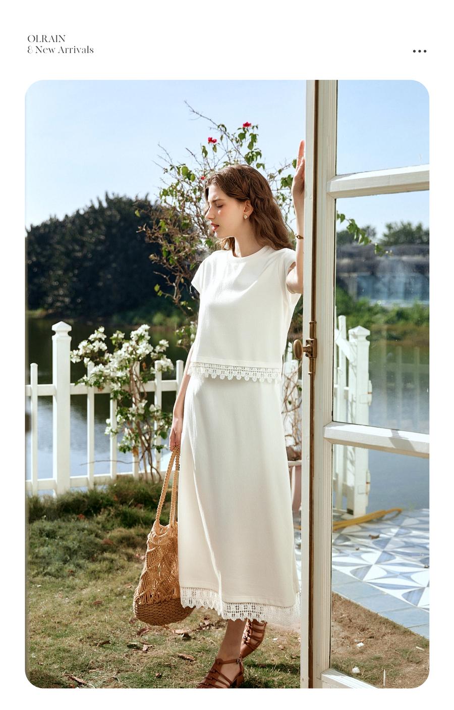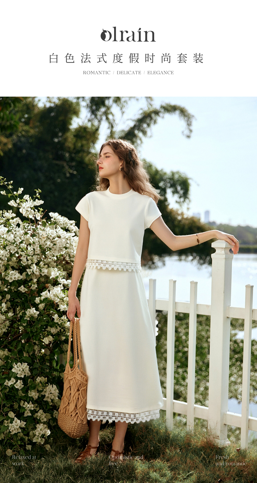OLrain欧芮儿白色法式度假时尚套装女夏季2025新款修身显瘦两件套