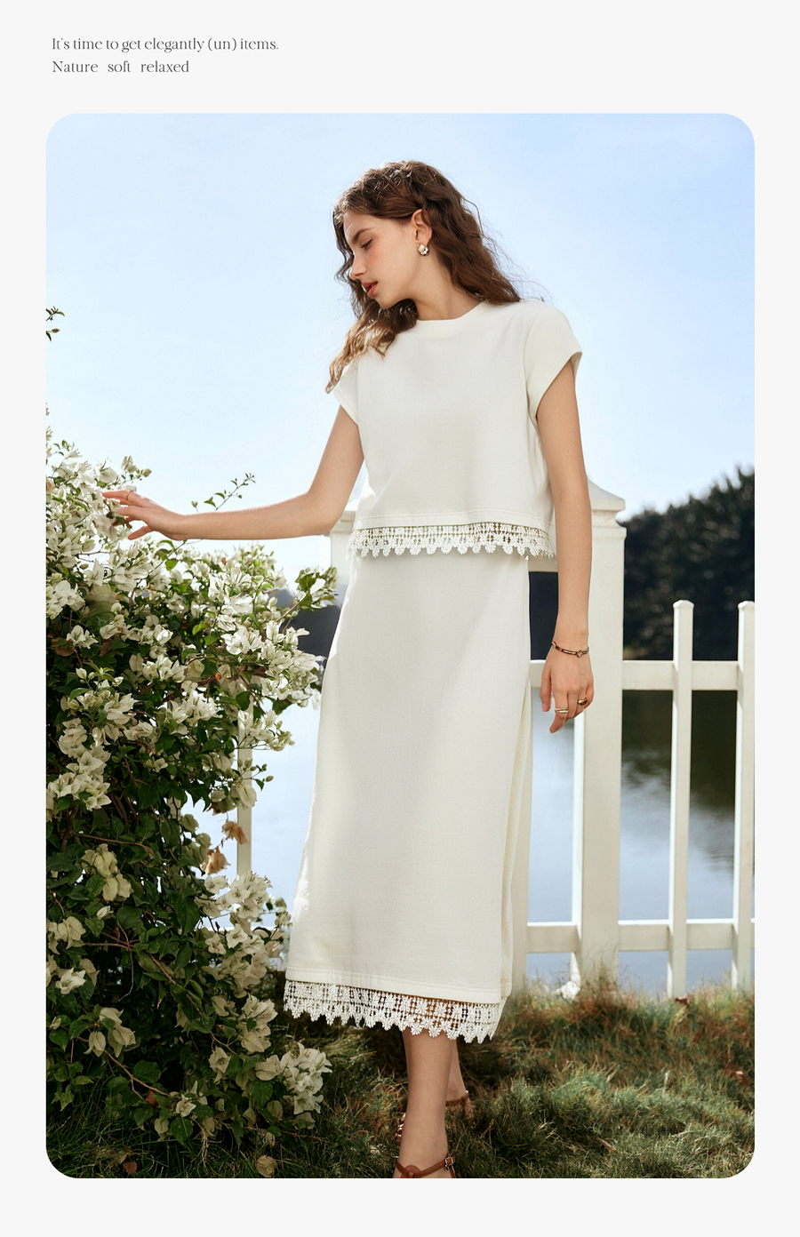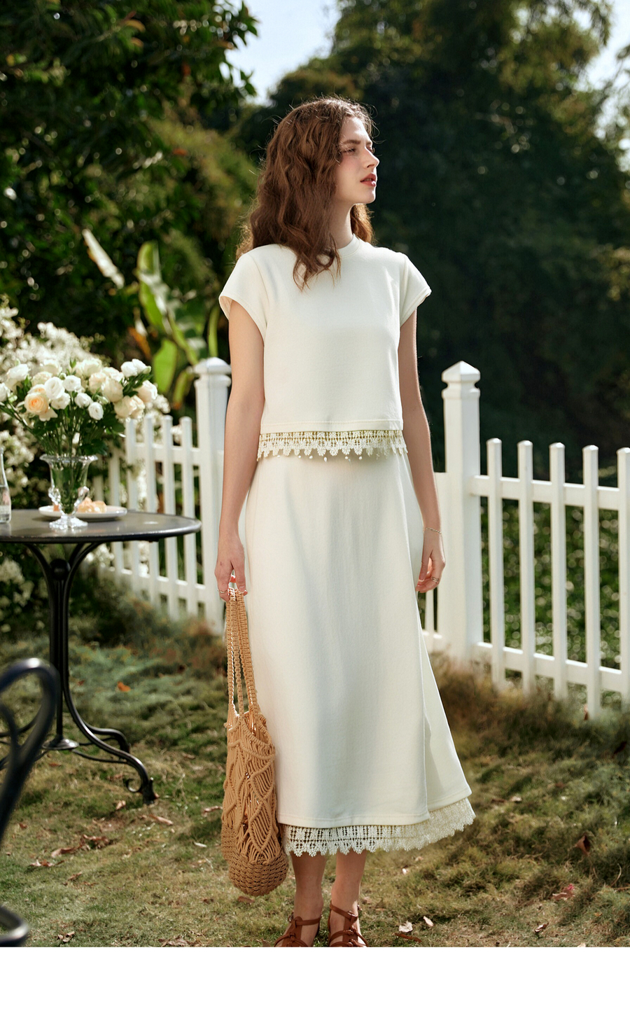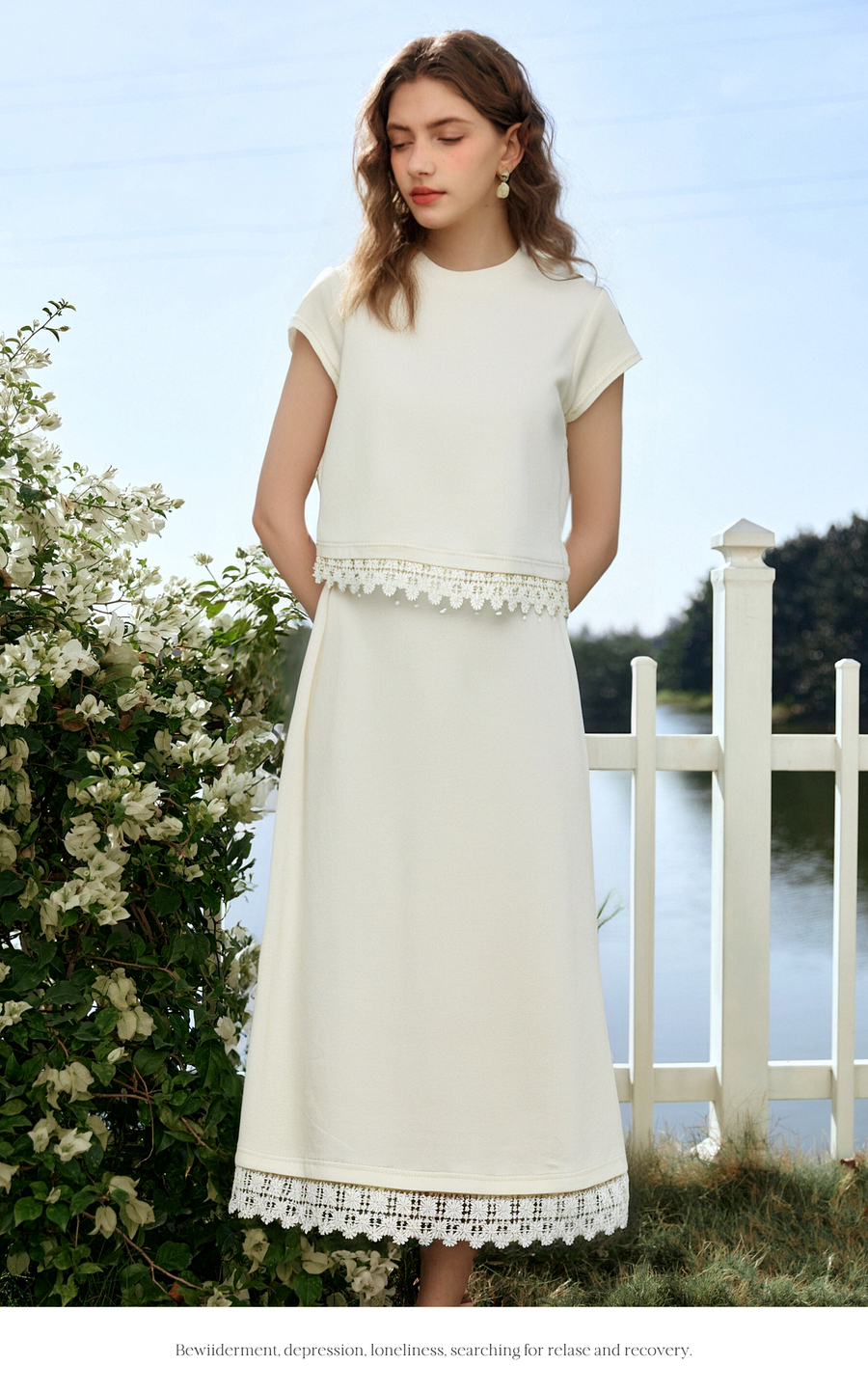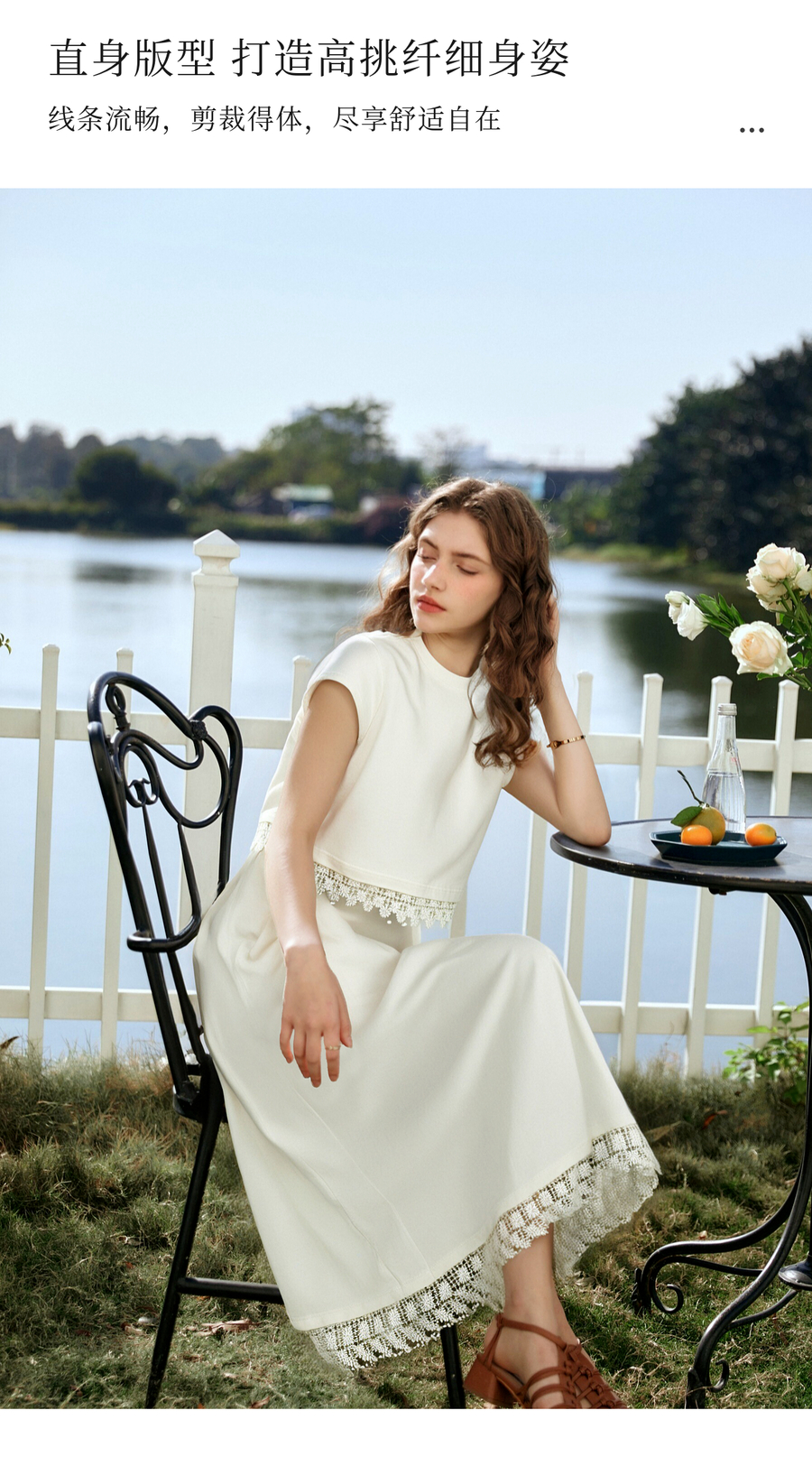 OLrain欧芮儿白色法式度假时尚套装女夏季2025新款修身显瘦两件套