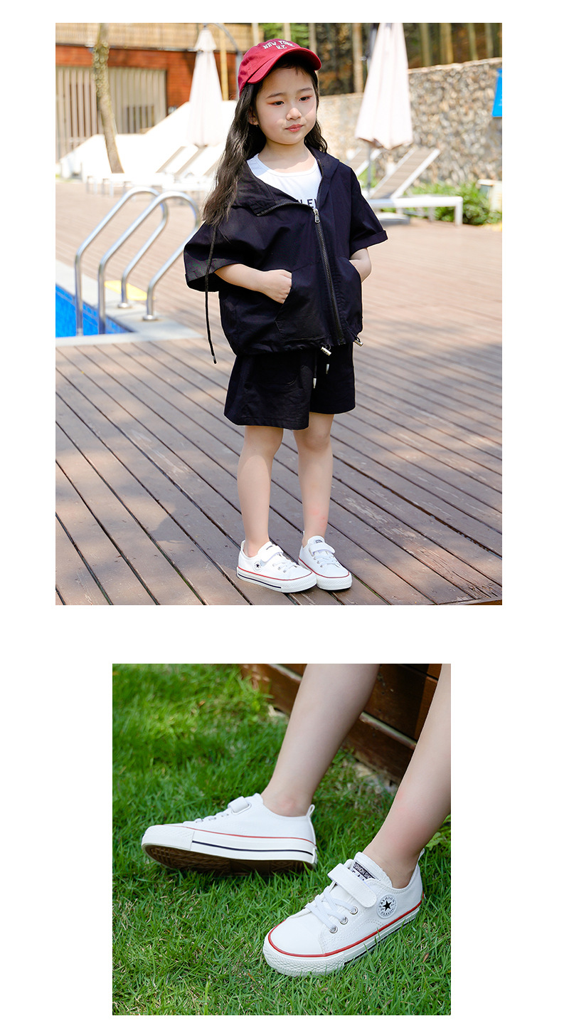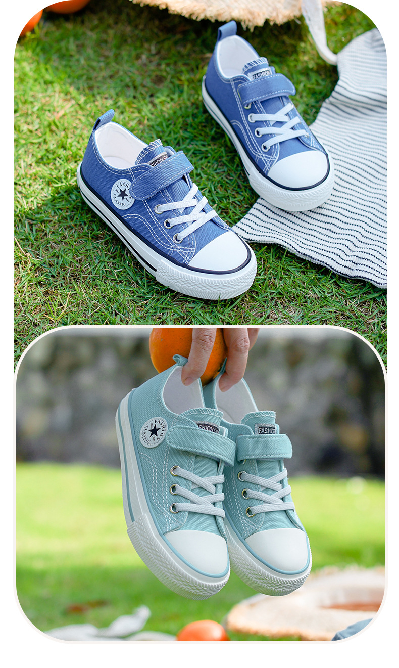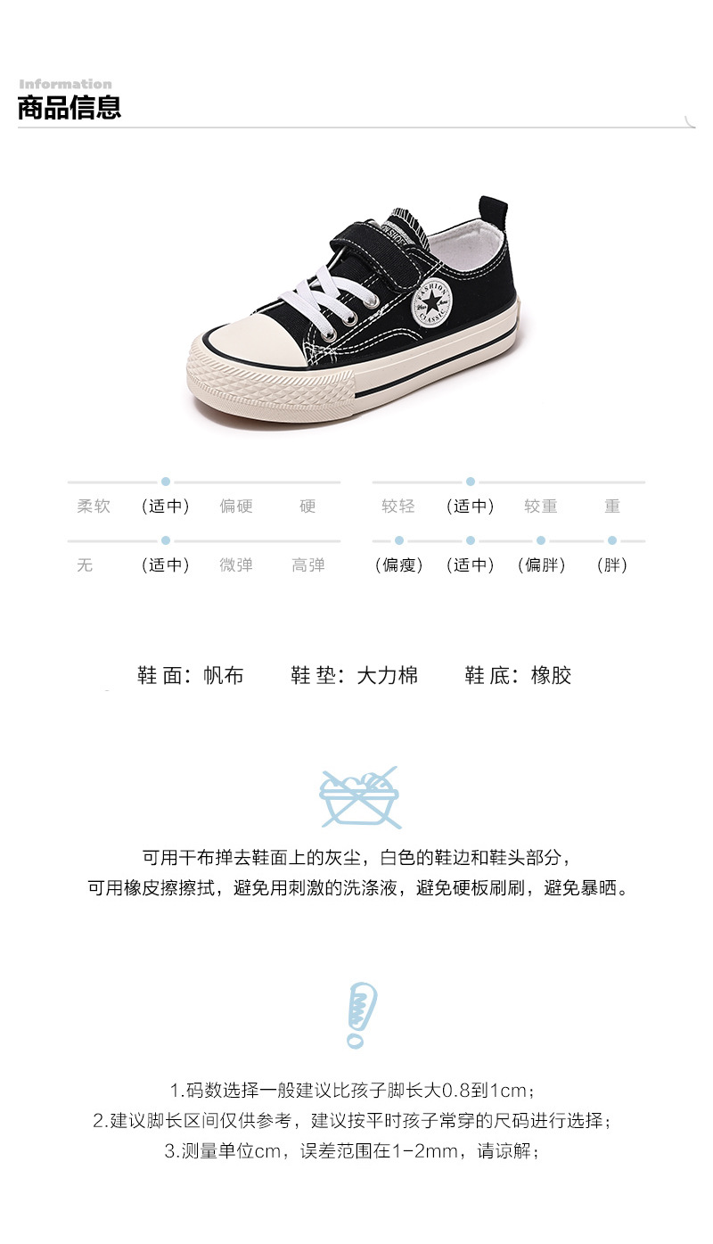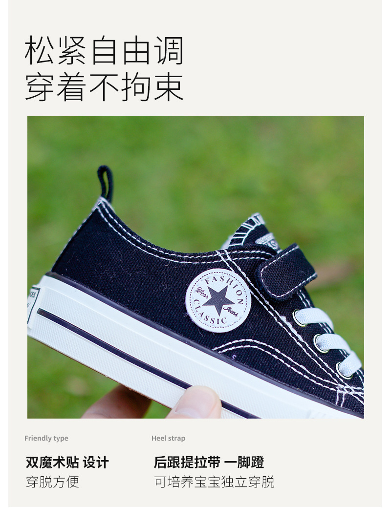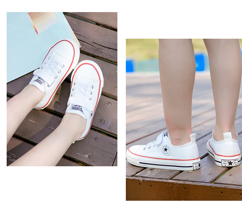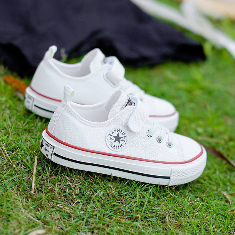 新款儿童帆布鞋小白鞋男女童低帮松紧kids小中大童