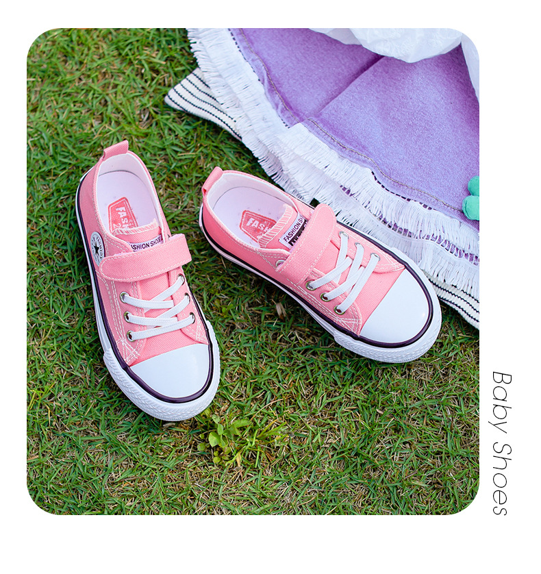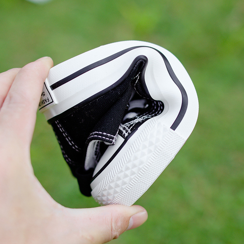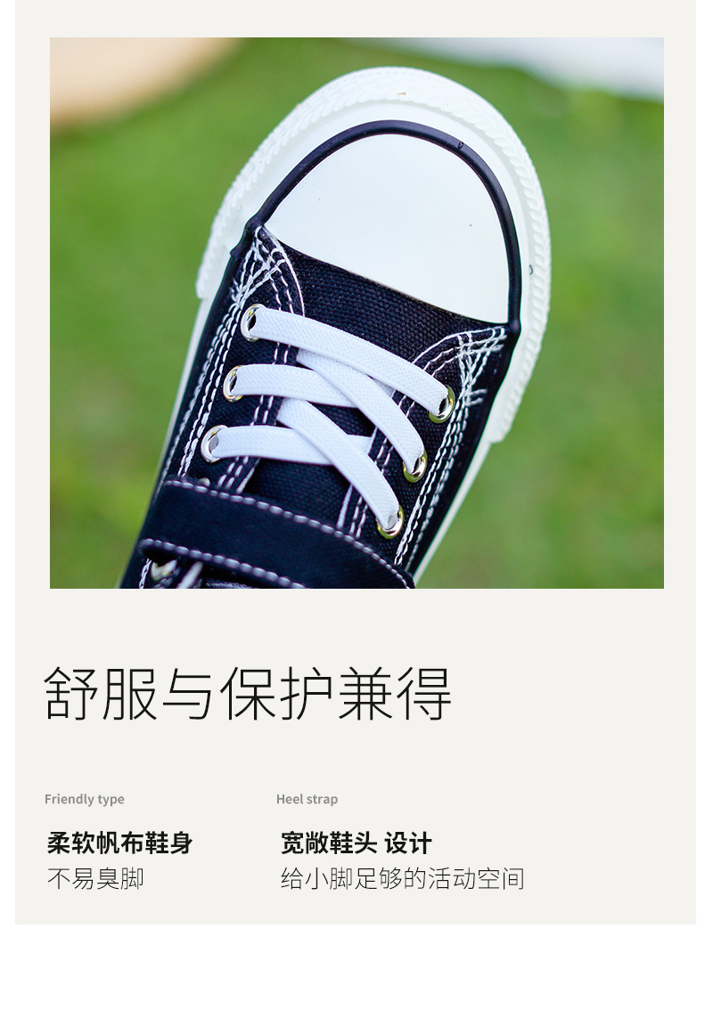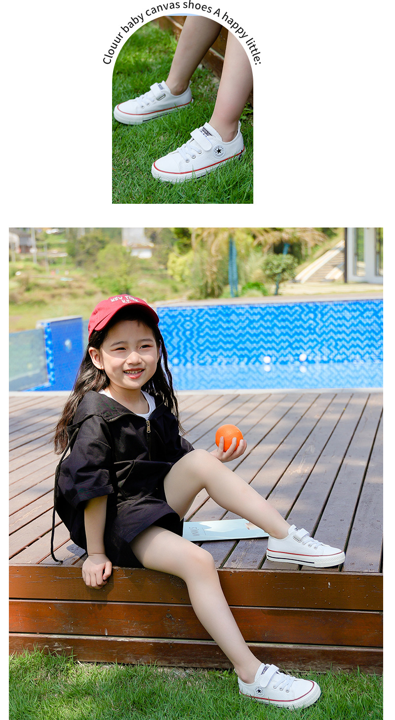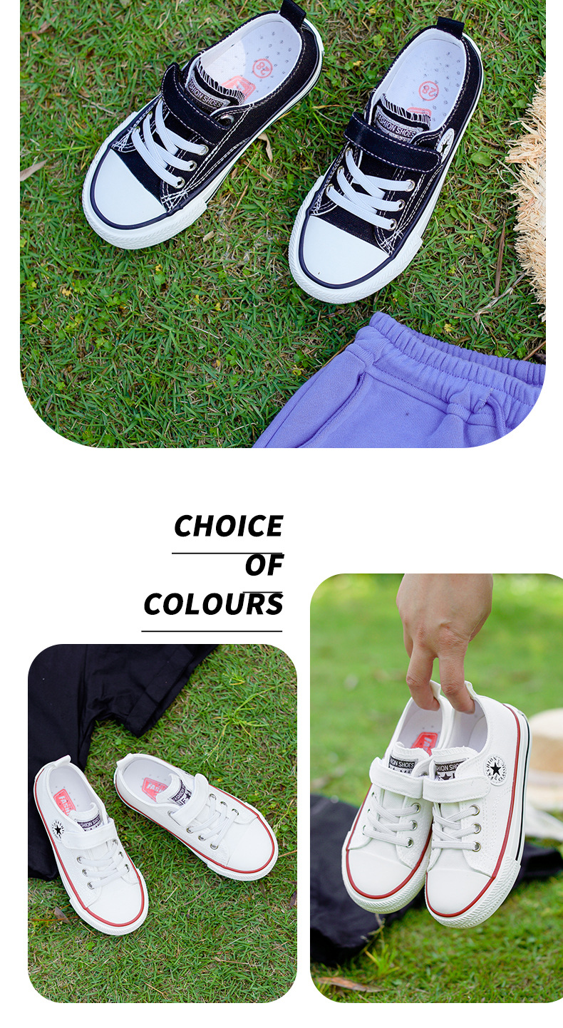 新款儿童帆布鞋小白鞋男女童低帮松紧kids小中大童