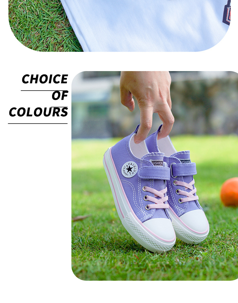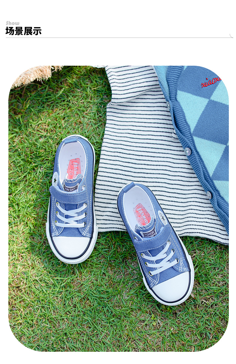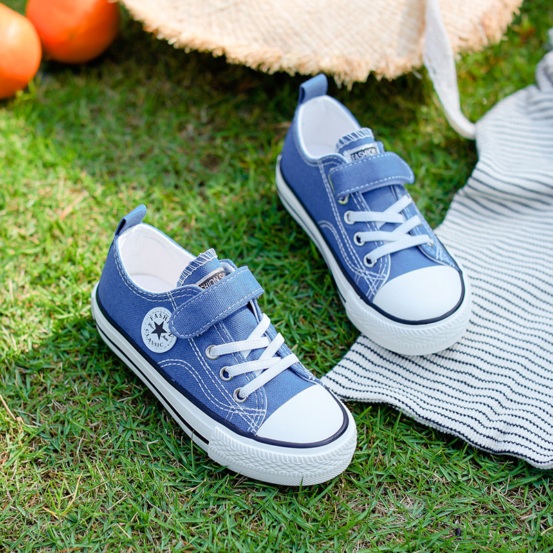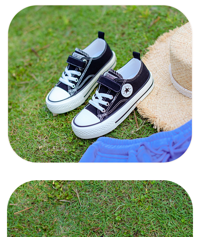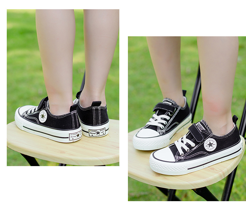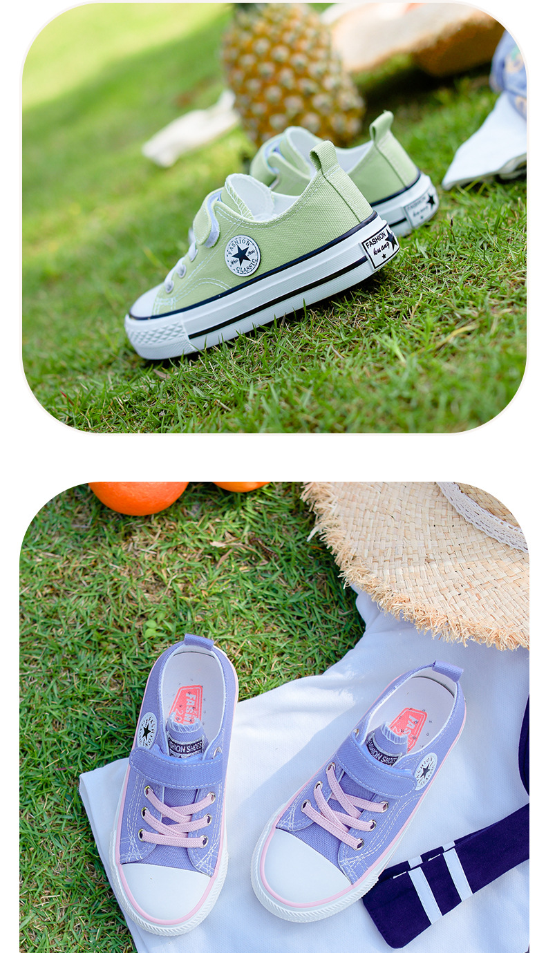 新款儿童帆布鞋小白鞋男女童低帮松紧kids小中大童