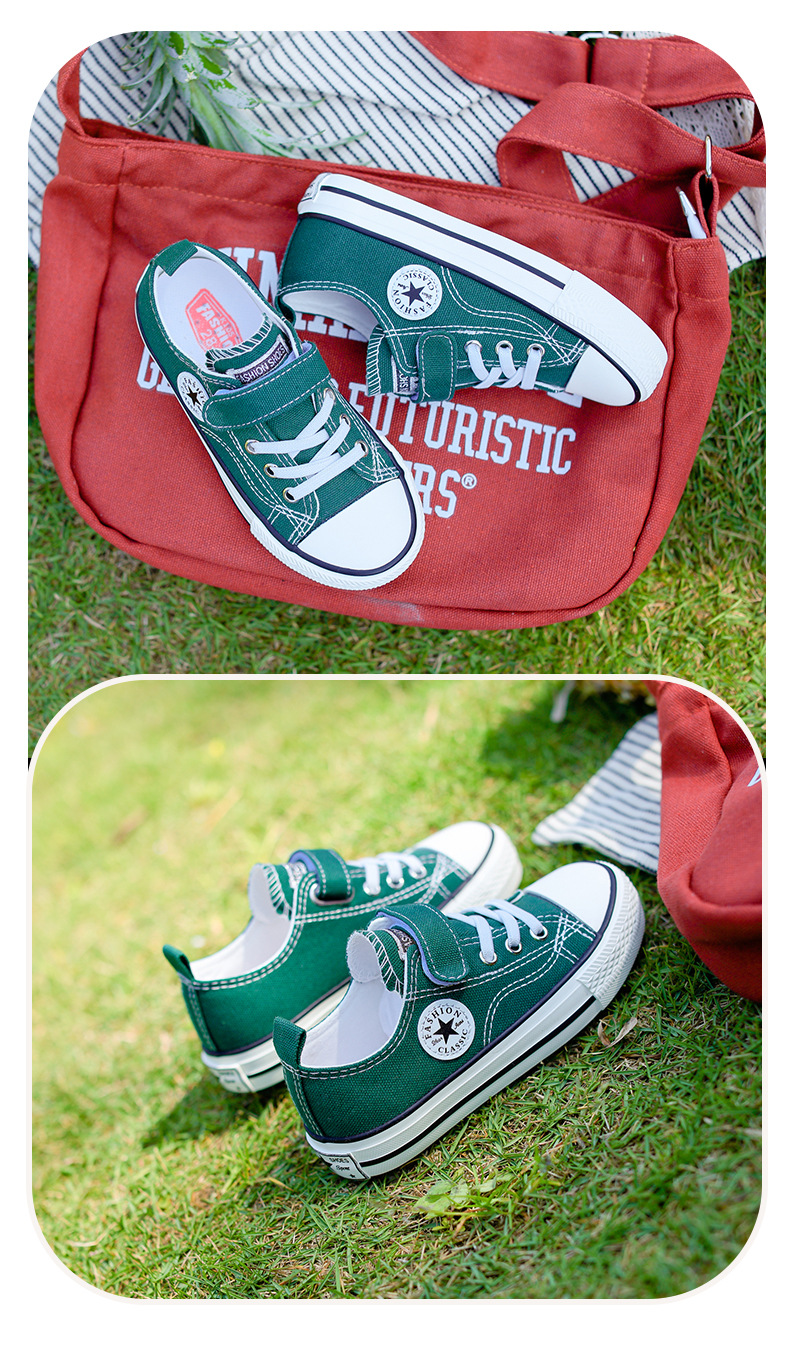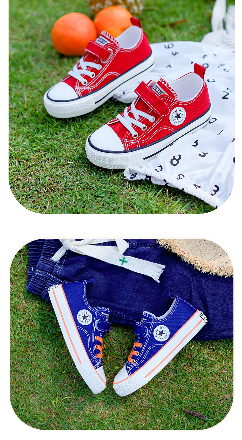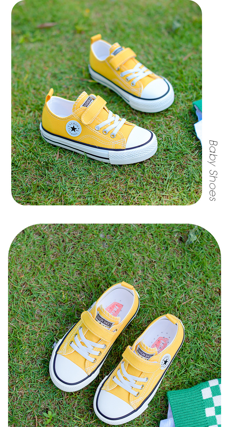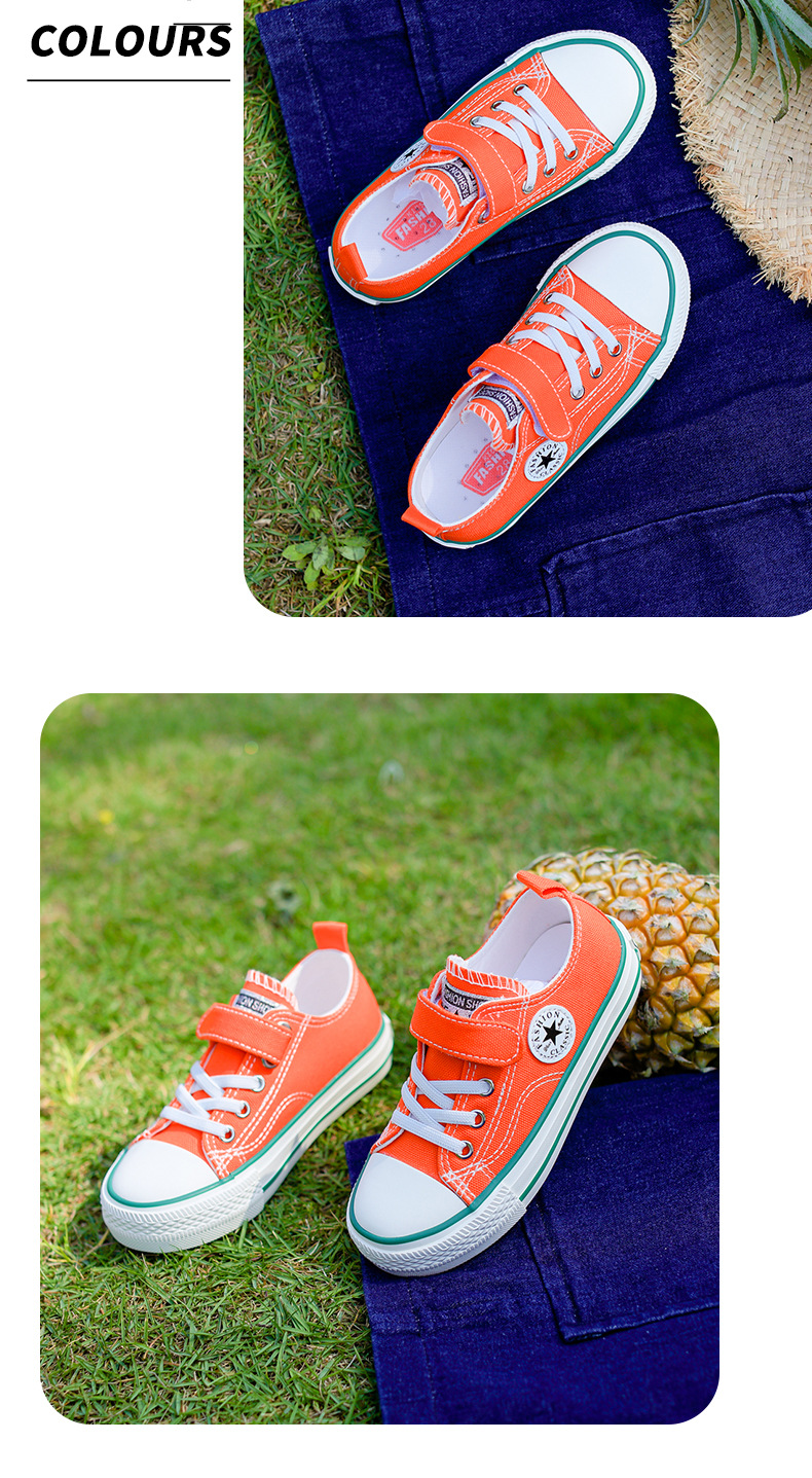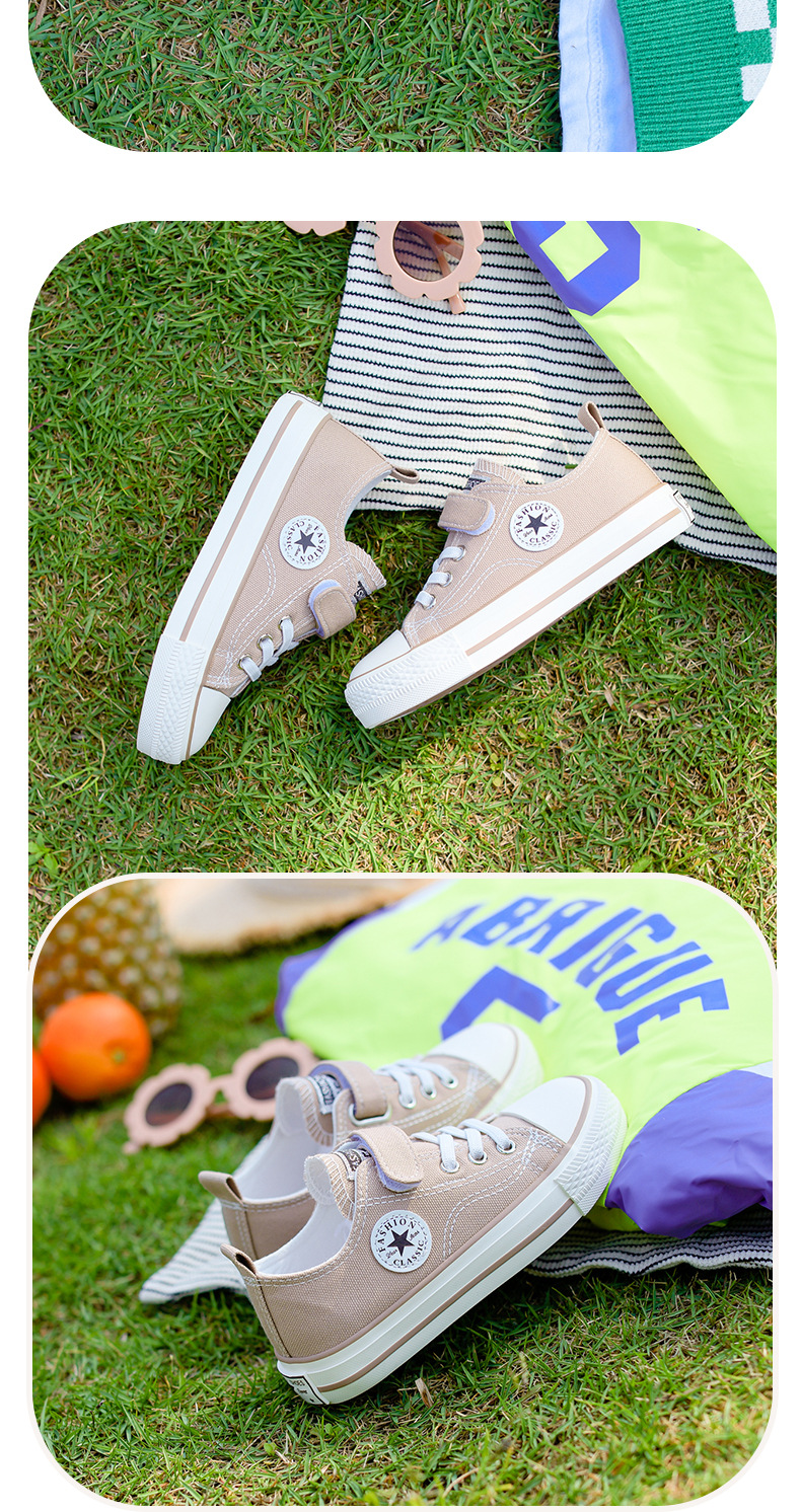 新款儿童帆布鞋小白鞋男女童低帮松紧kids小中大童