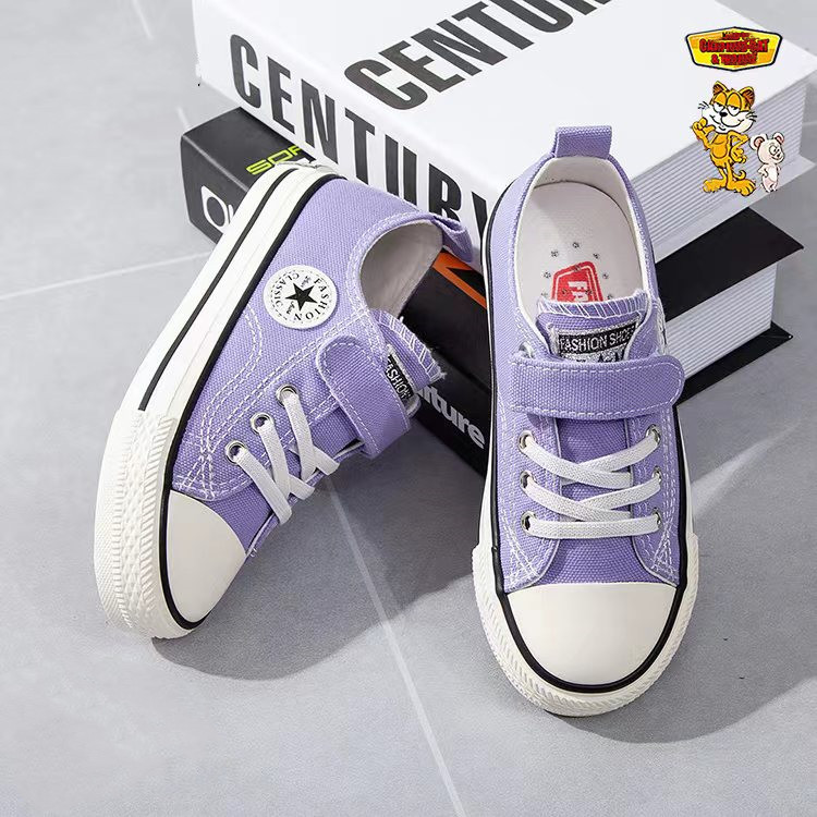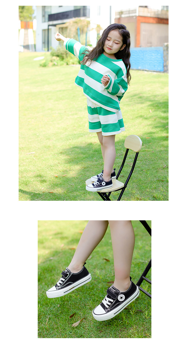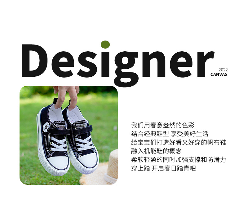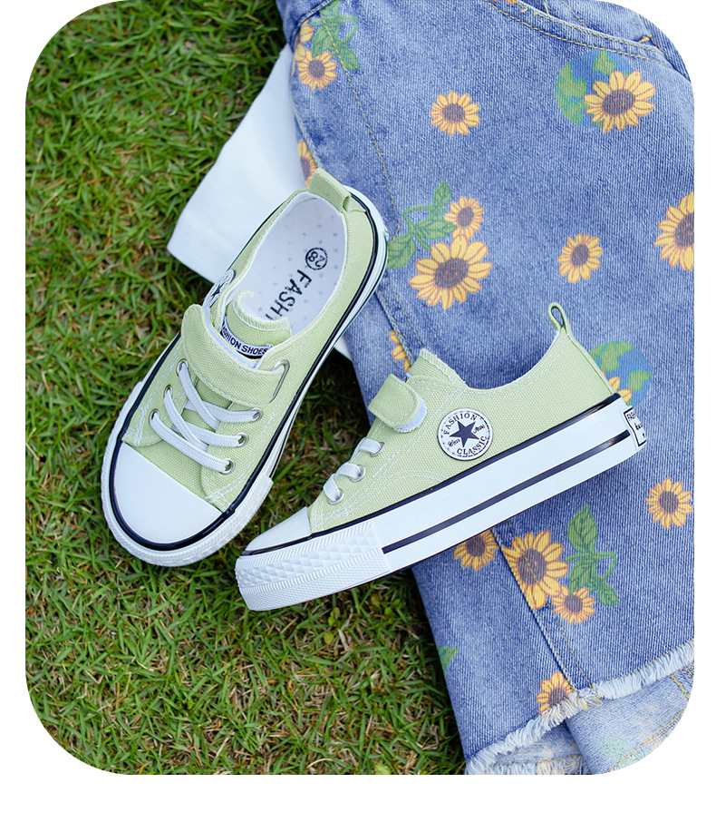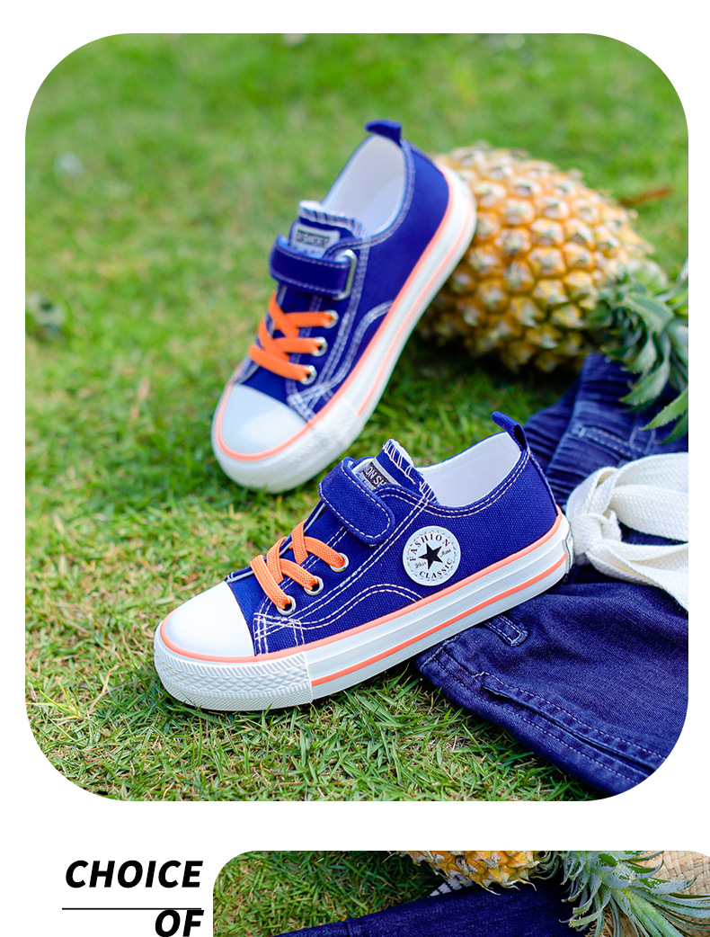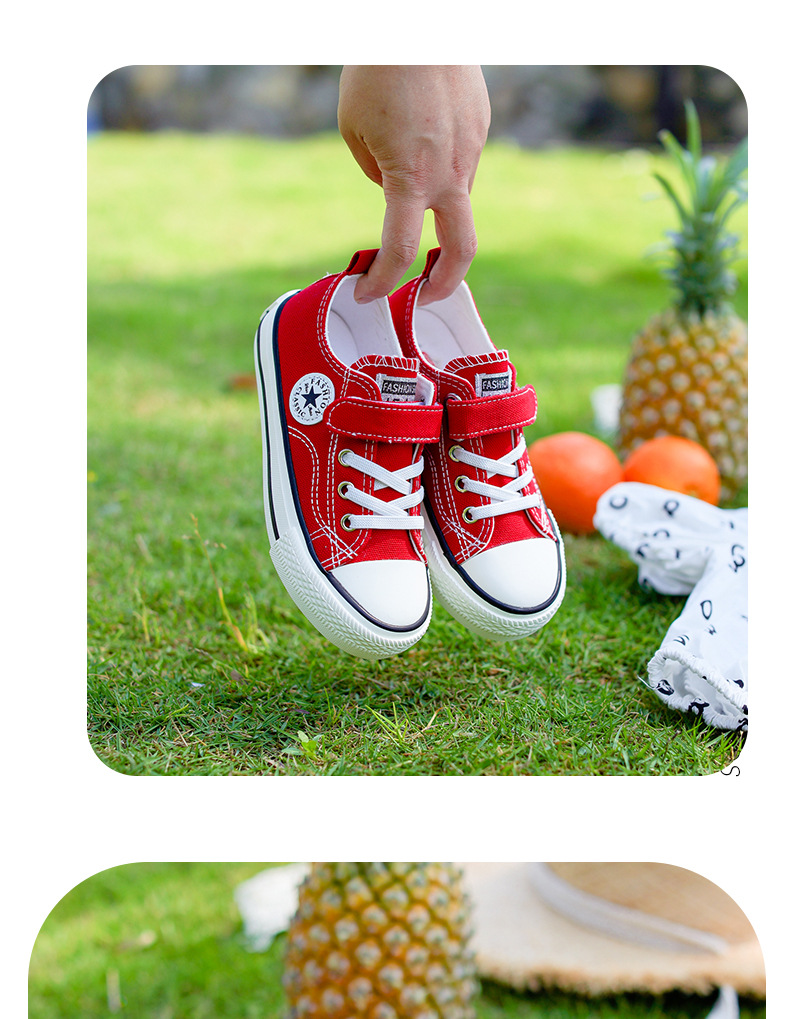 新款儿童帆布鞋小白鞋男女童低帮松紧kids小中大童